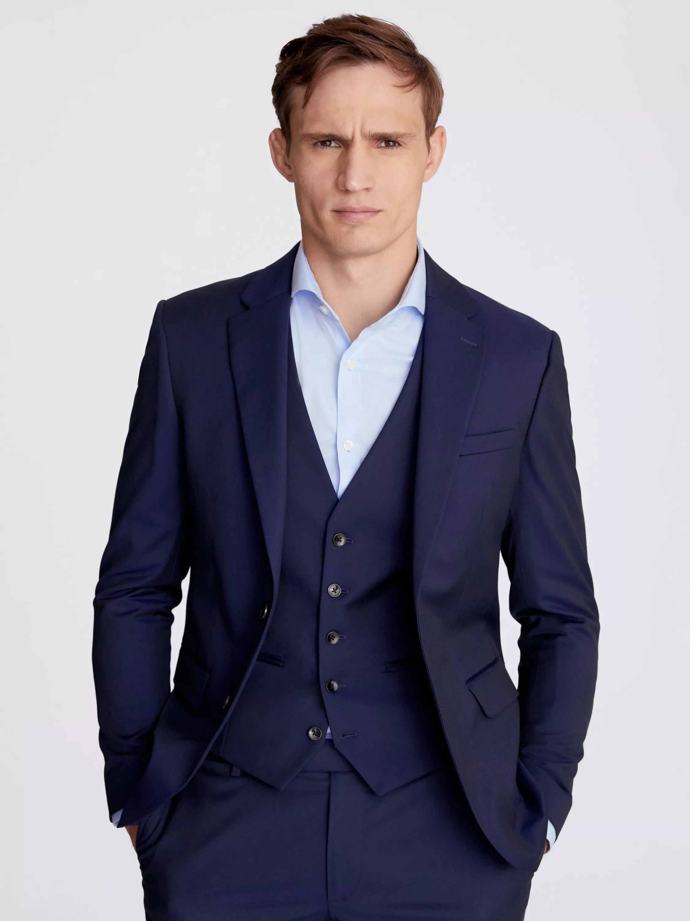 A classic 3-piece with an on-trend update, you can't go wrong with a Moss. suit for smart events, and this one is cut in a skinny fit for extra sharpness.