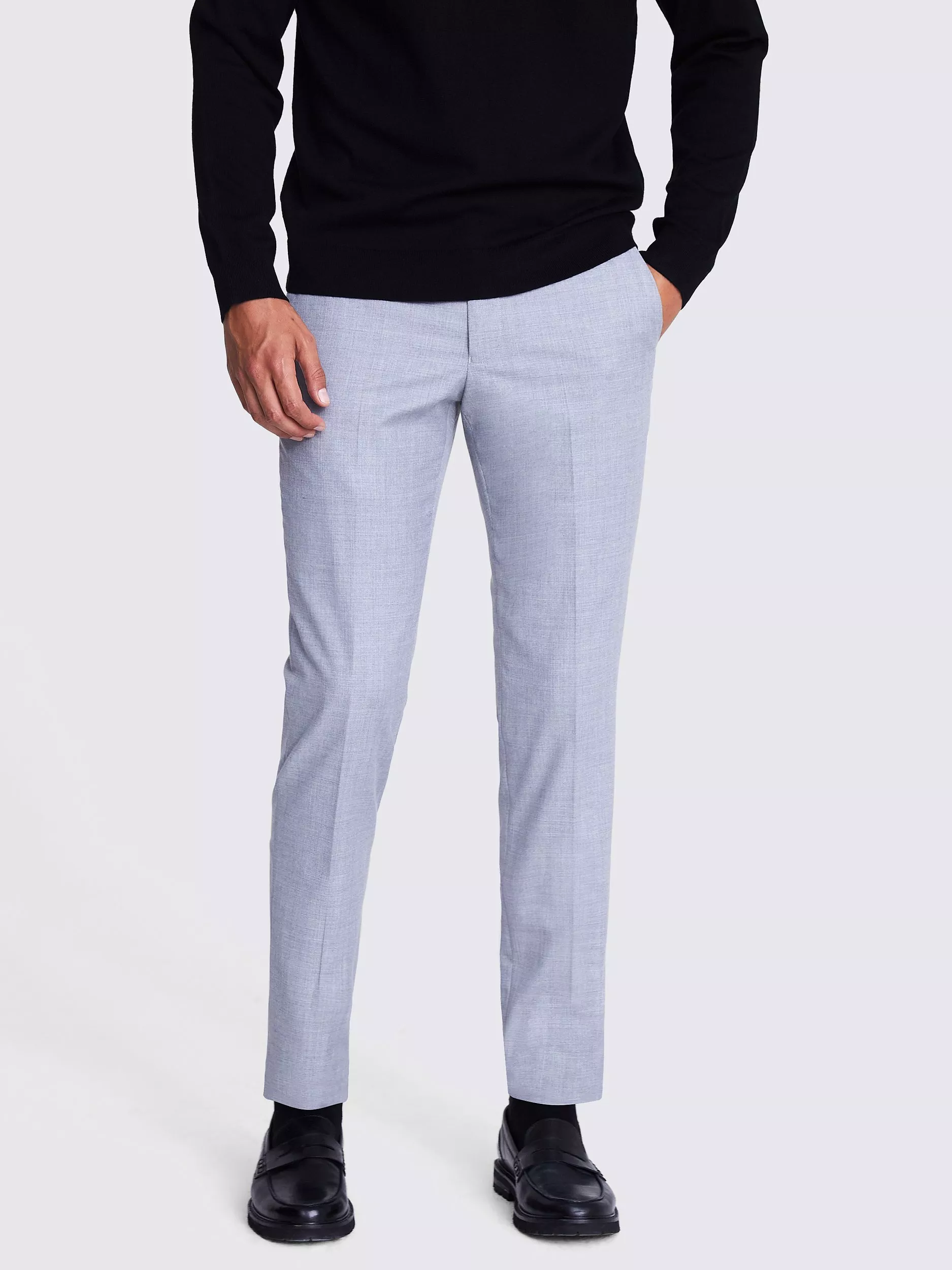 These Moss skinny fit trousers are cut to sit close from waist to ankle, which is enhanced by the stretch in the material. They cut in just slightly above the ankle, giving them a sleek, modern profile. Add a white slim fit shirt and black brogues to complete the look.
