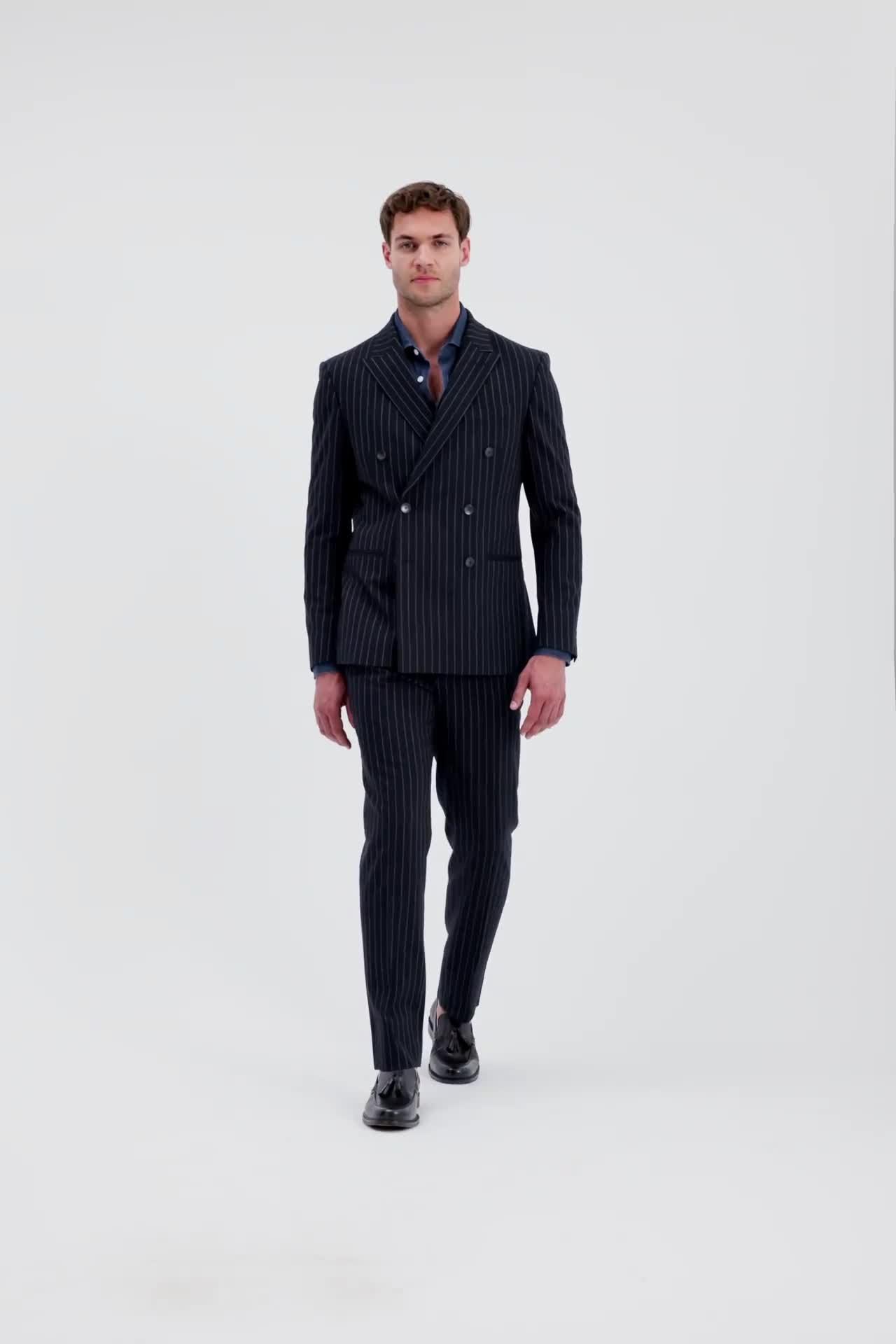 Freshen your tailoring with the slim cut and double-breasted styling of this striped suit jacket from Moss.