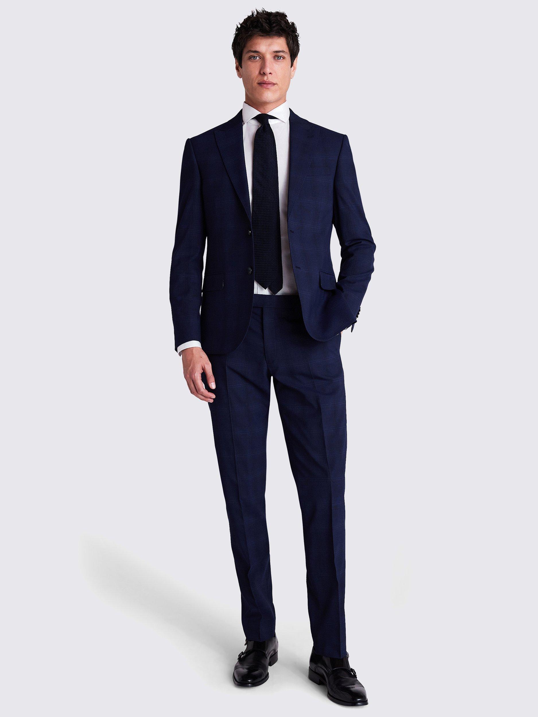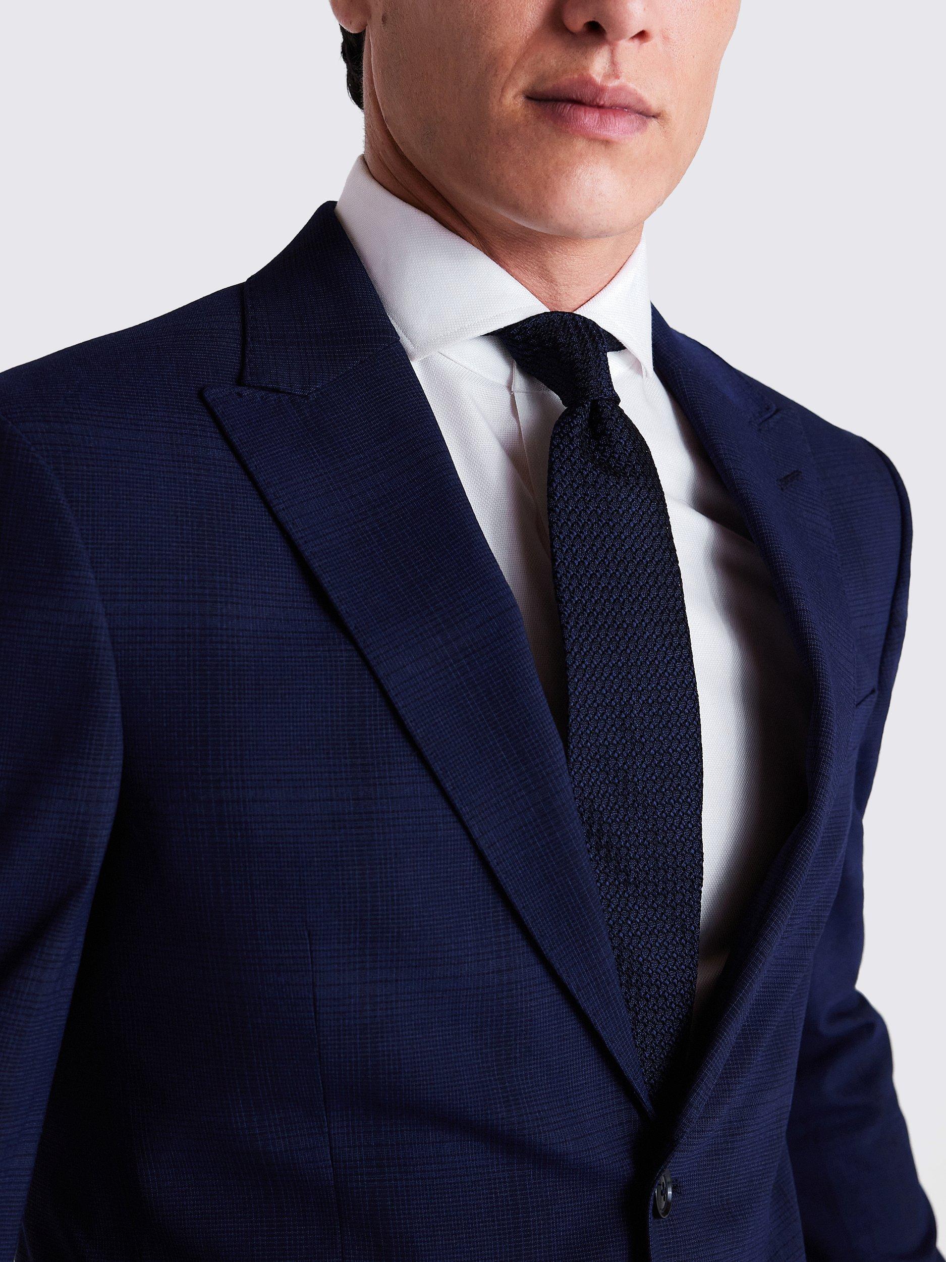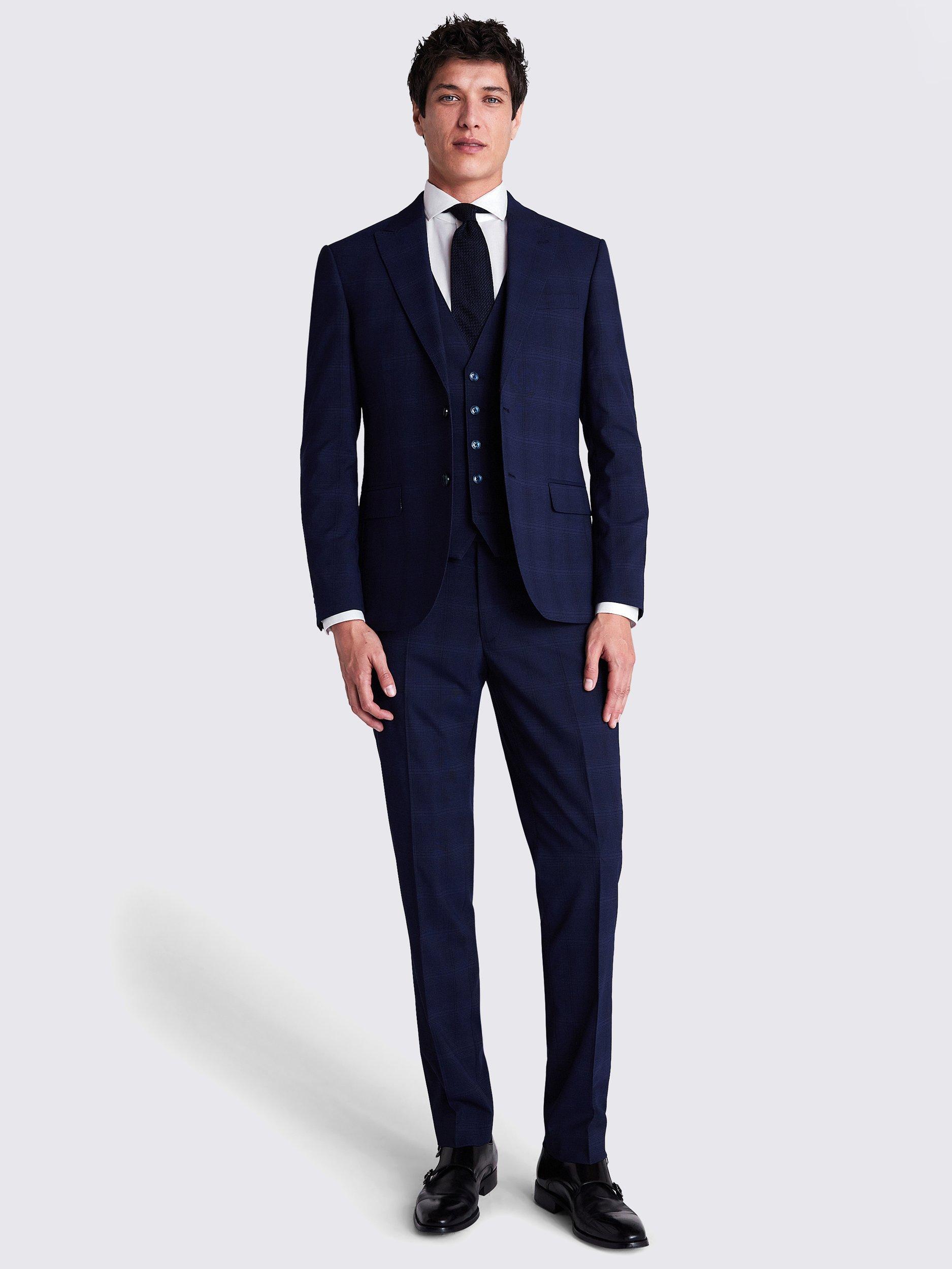 Made in stretch fabric for everyday comfort, our navy suit is a true all-rounder with its subtle, tonal check. Complete the look with the slim-cut trousers and waistcoat.
