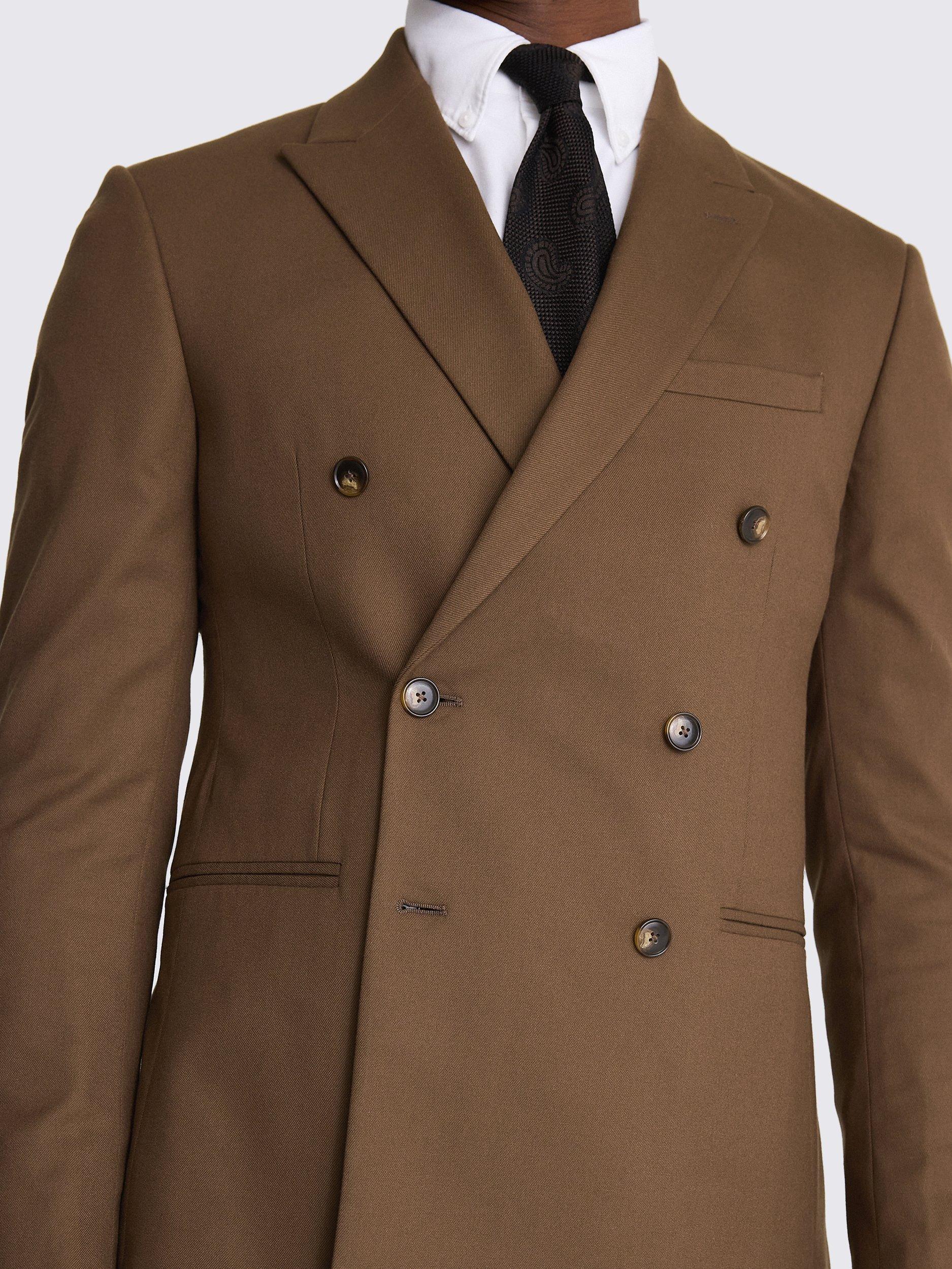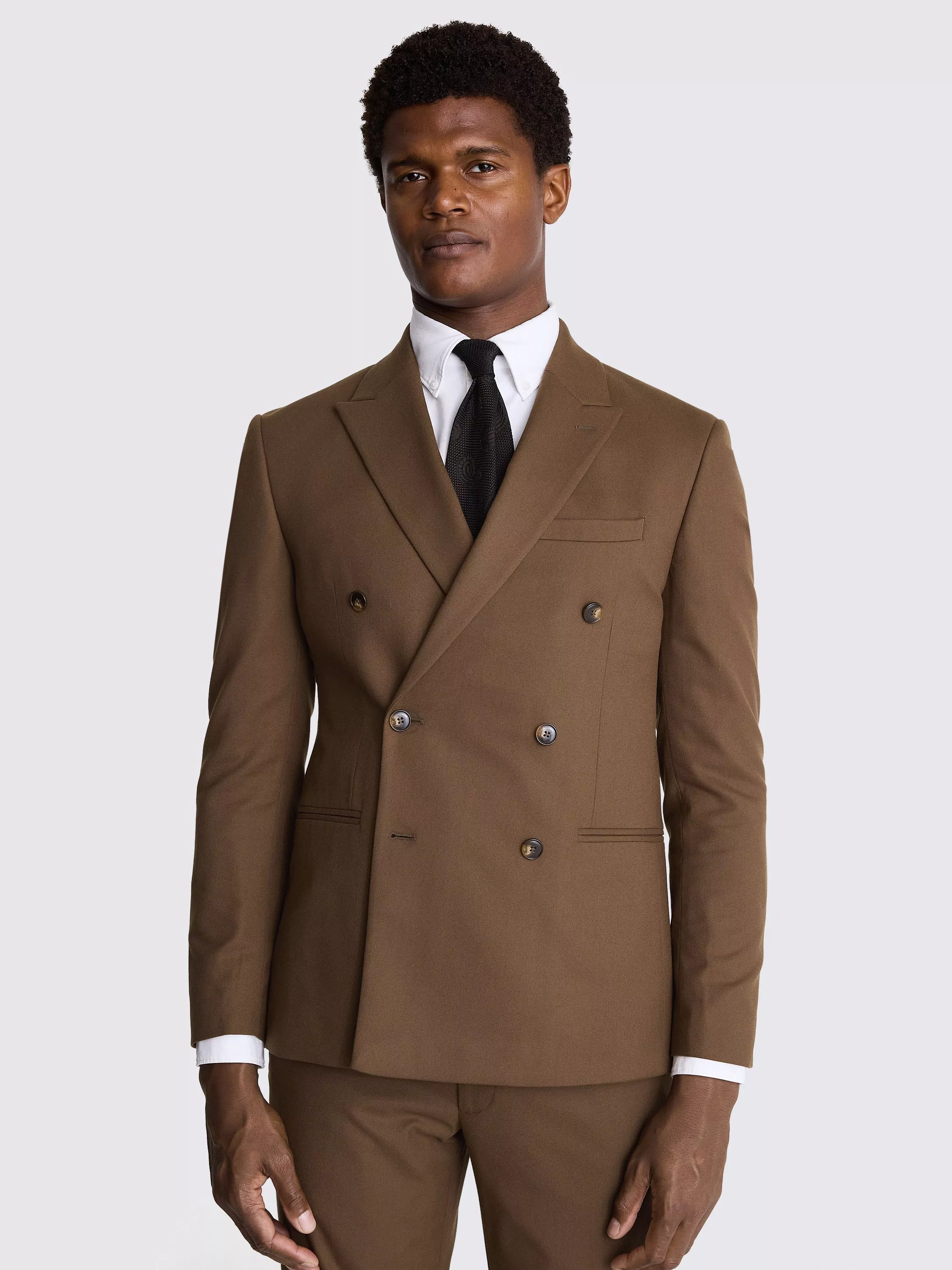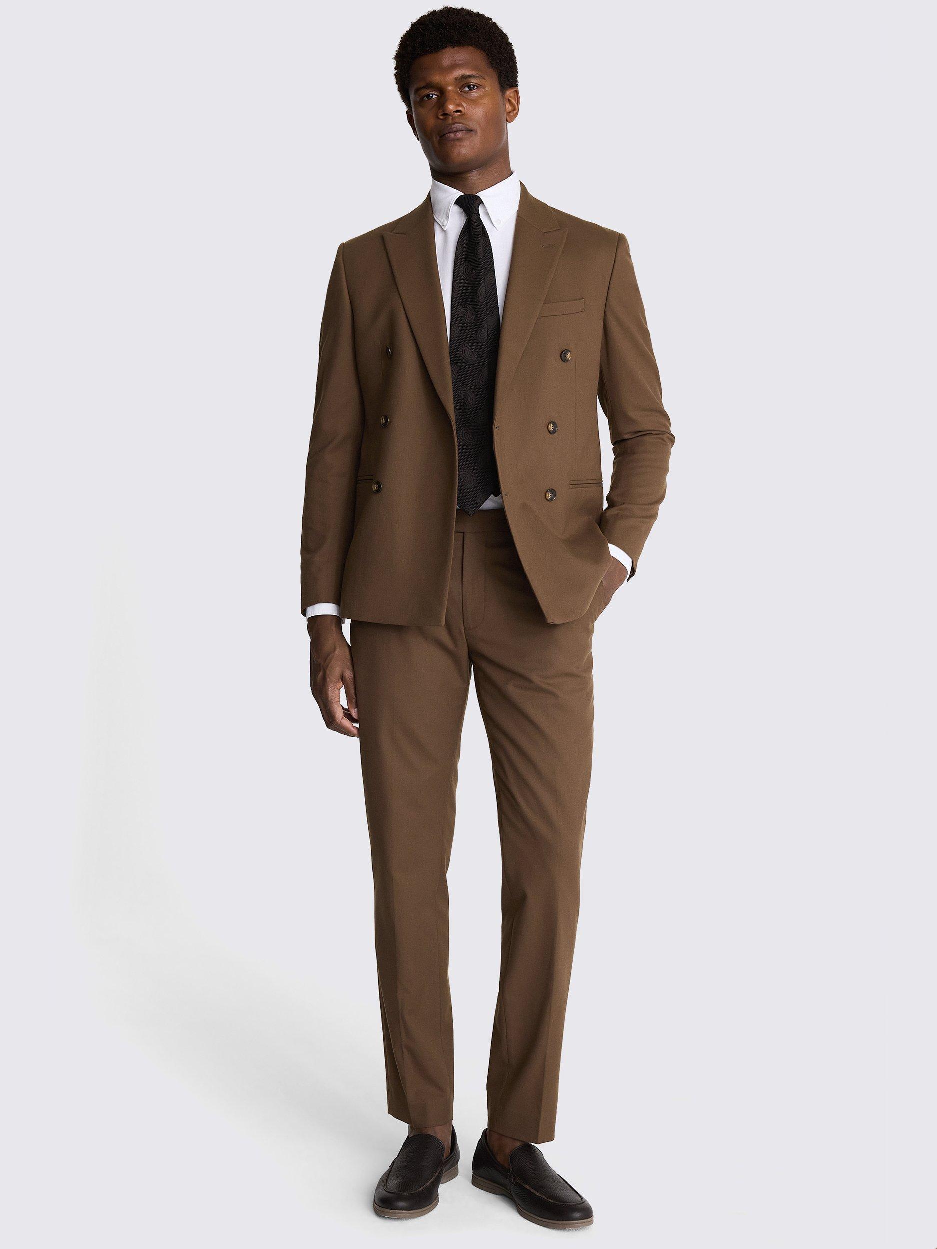Tailored to a slim fit with a double-breasted closure, Moss' suit has a key copper tone that'll liven up your formal options. The stretch flannel is made with recycled fibres to dial back the environmental impact of its production.