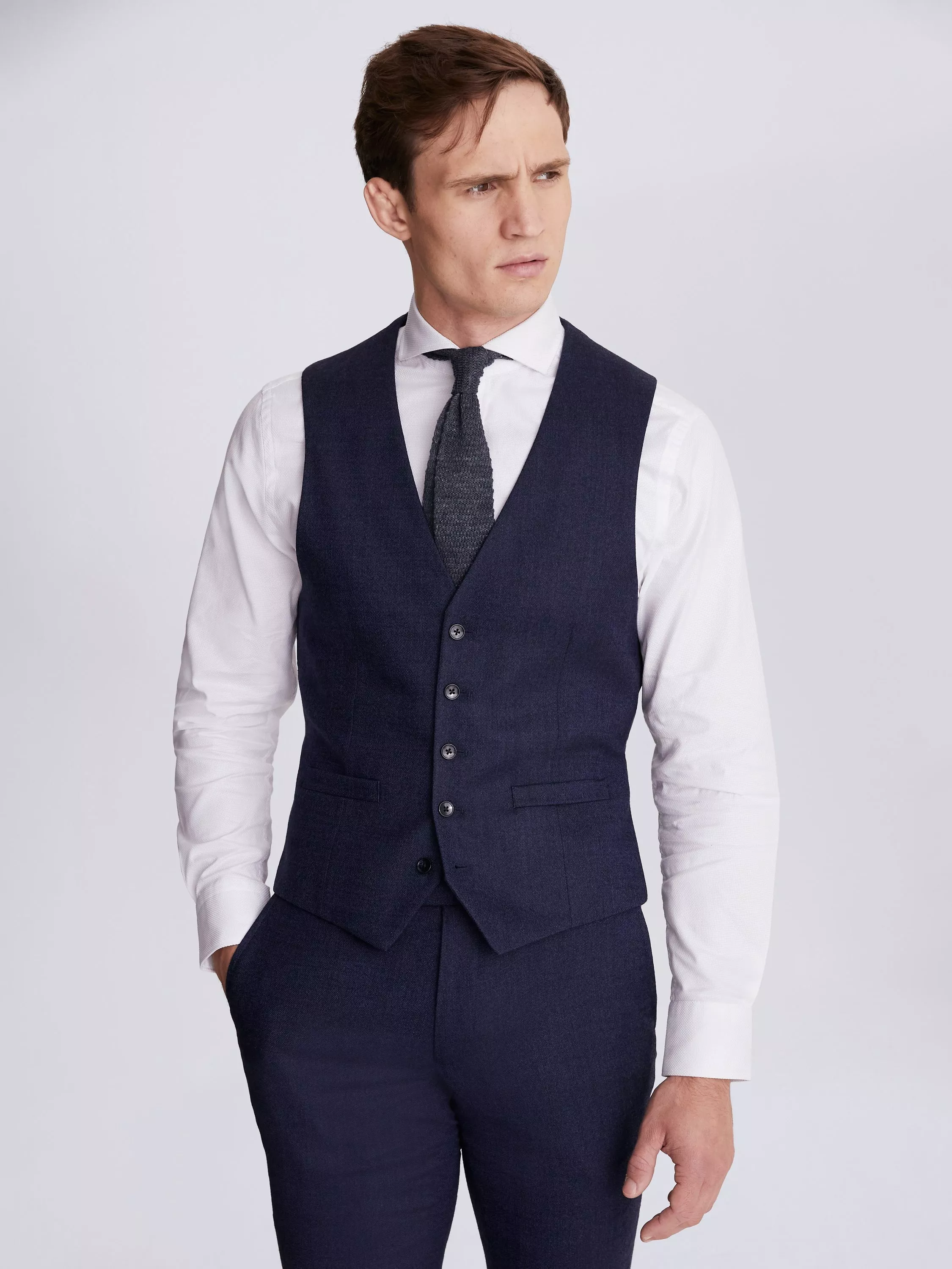 With its slim cut, this waistcoat has slim lapels and a close fit through your torso. A twisted fabric adds texture for on-trend appeal, and it has inbuilt stretch to move with you so you'll feel on top form all day.