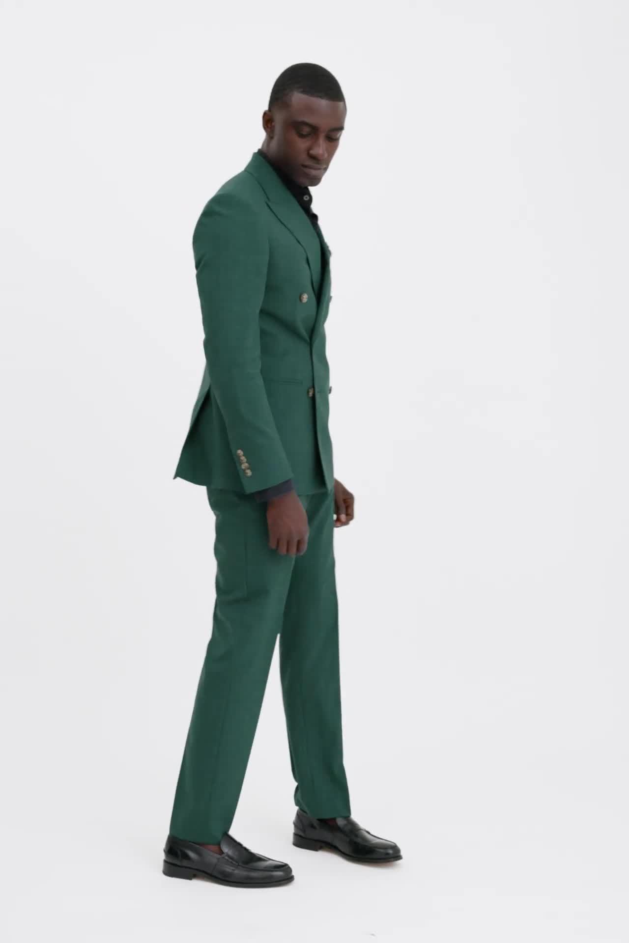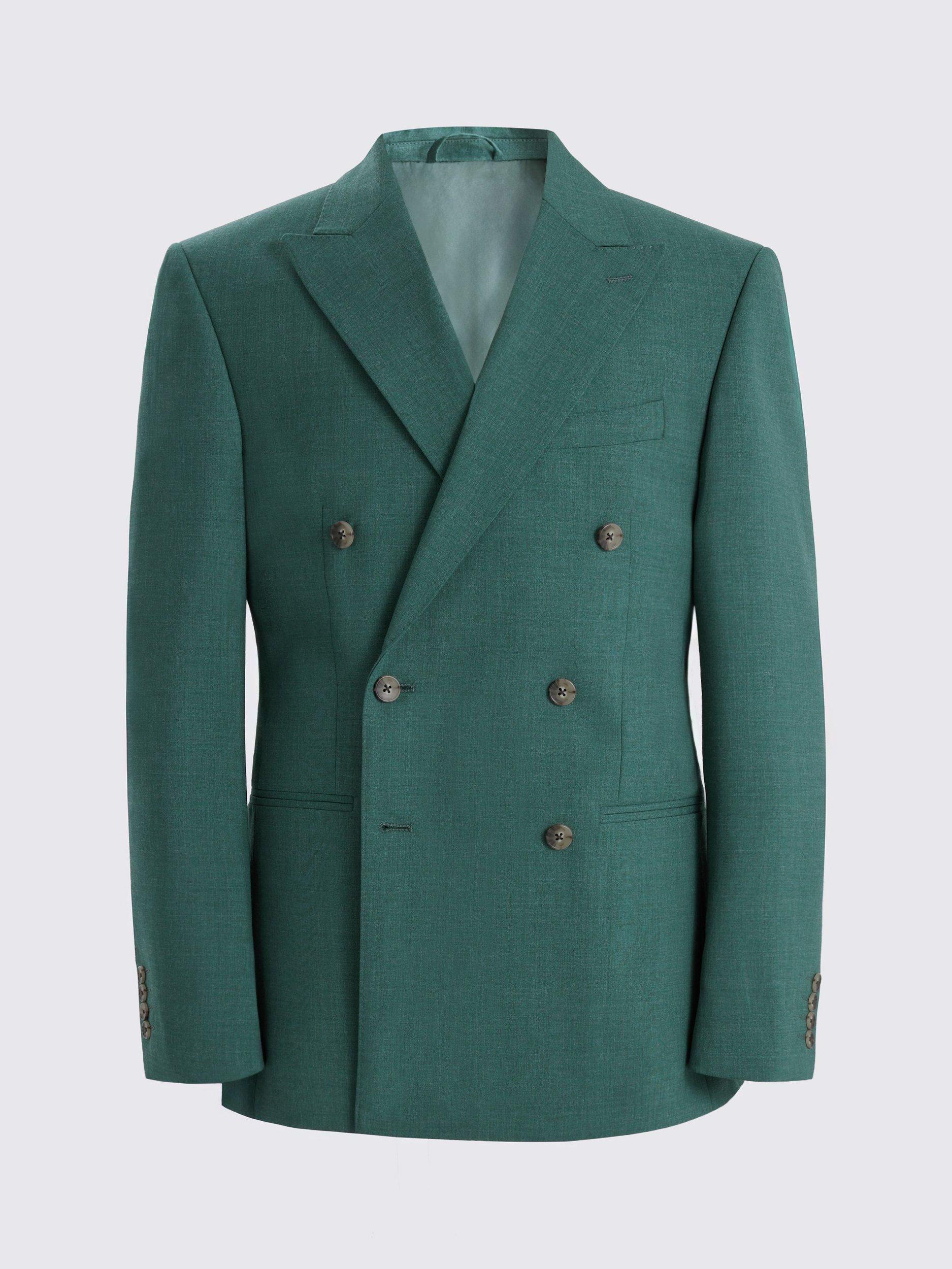 Formal staples receive a little lift with the defined profile of this two-piece suit. The double-breasted jacket and slim-cut trousers are crafted in a soft wool blend with a subtle marl effect that is easy to style.