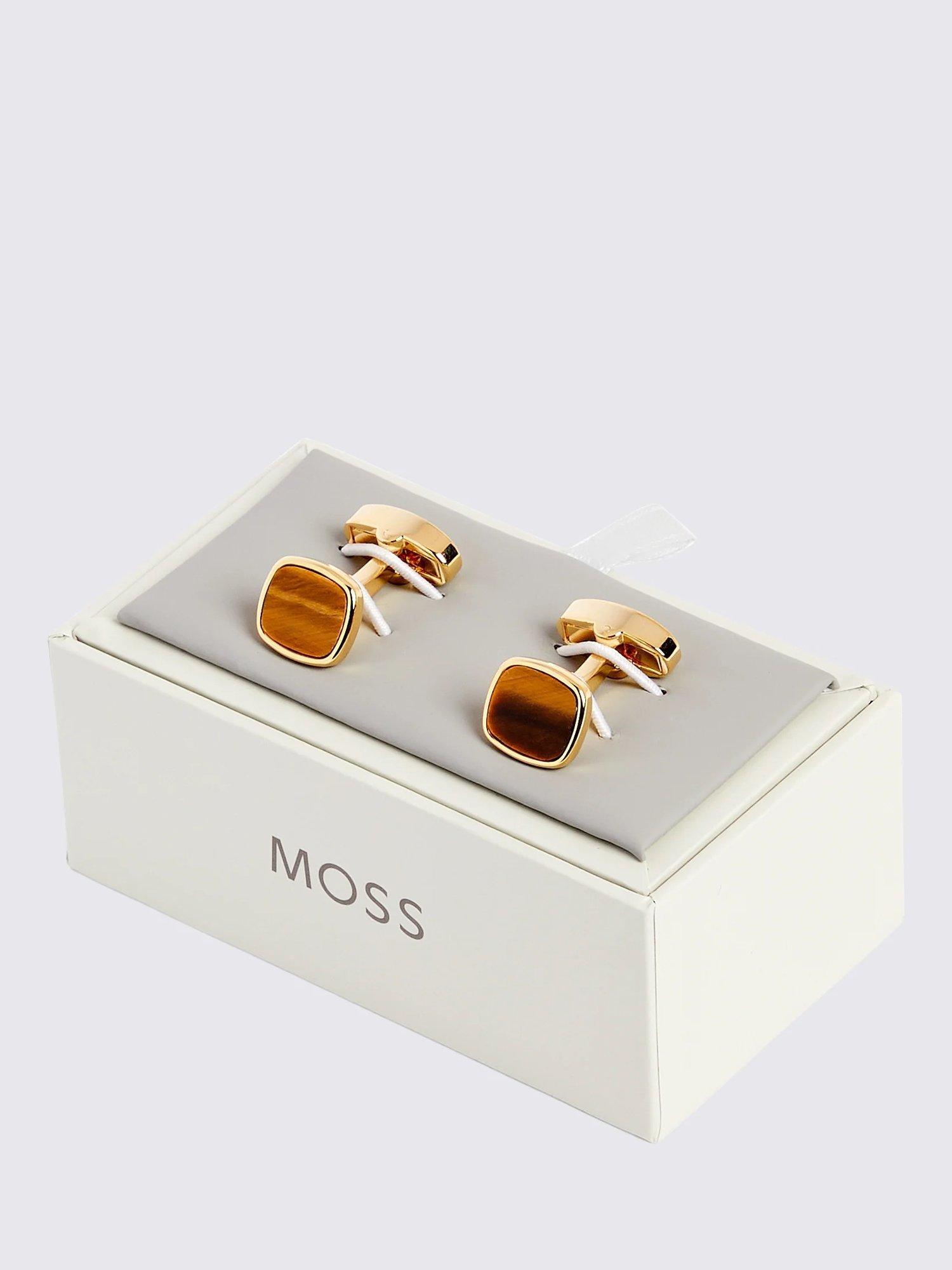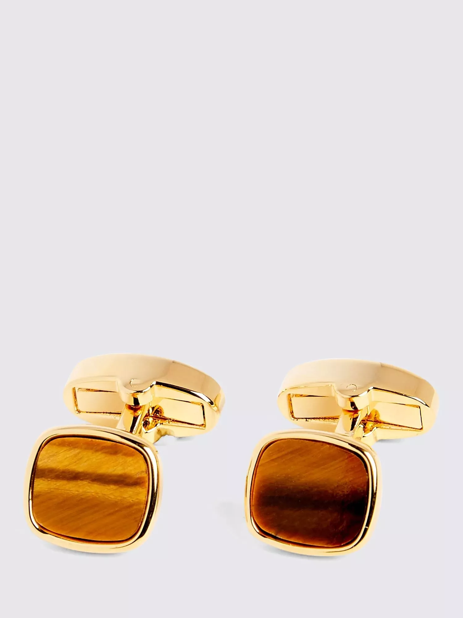 Square-shaped cufflinks with a striking tiger eye gemstone at the centre that symbolises strength, courage and prosperity.