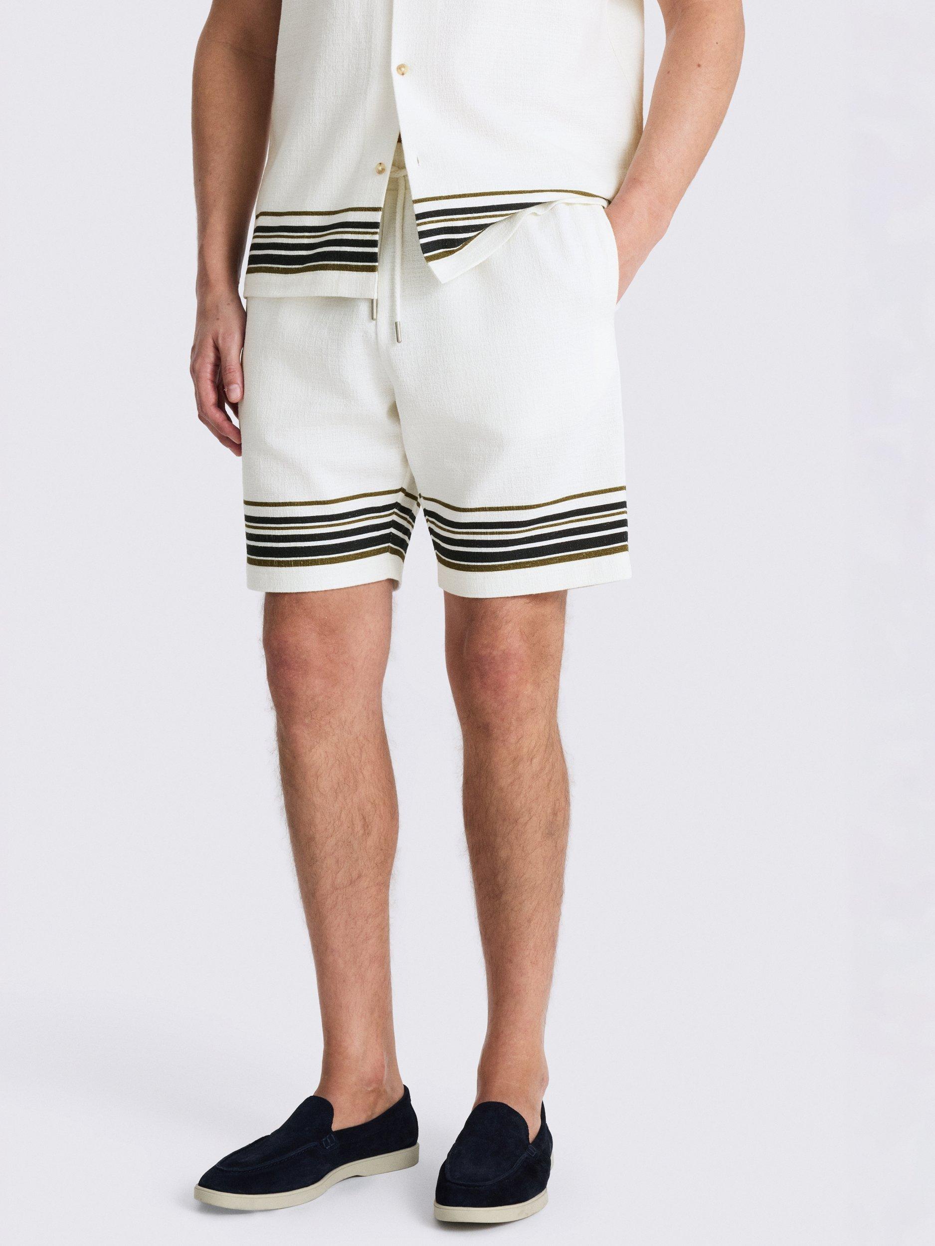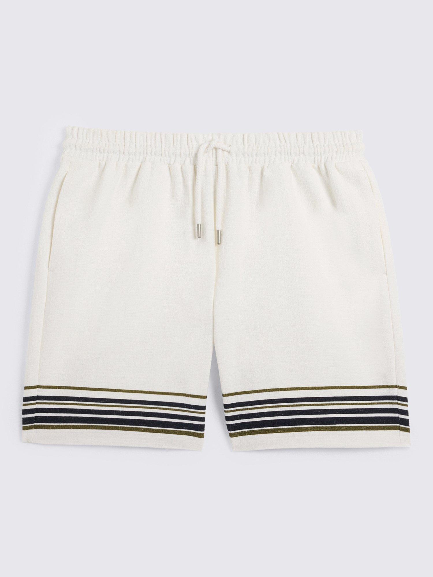 Horizontal stripe shorts made of soft, breathable cotton. The drawcord waist ensures a comfortable fit. Team them with the matching short-sleeve shirt to complete the look.