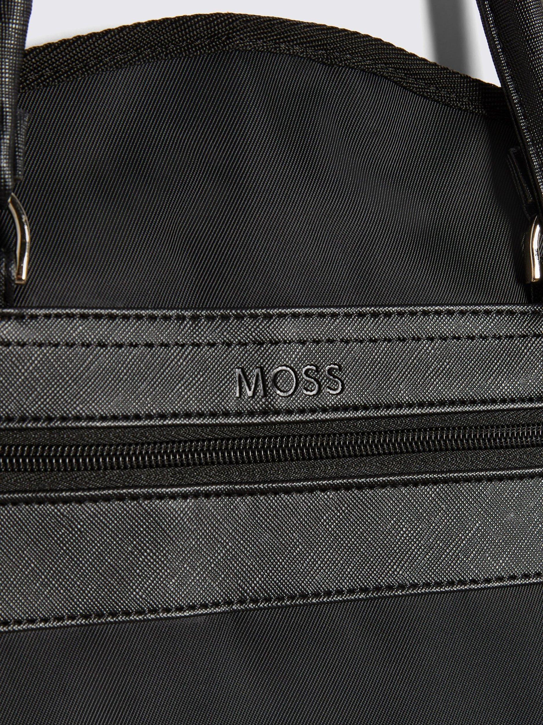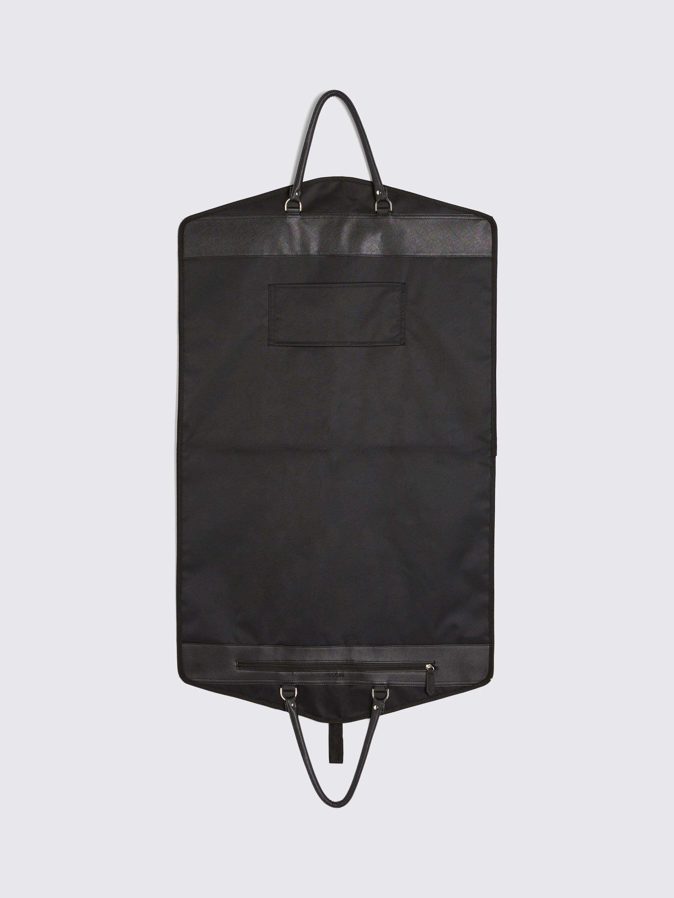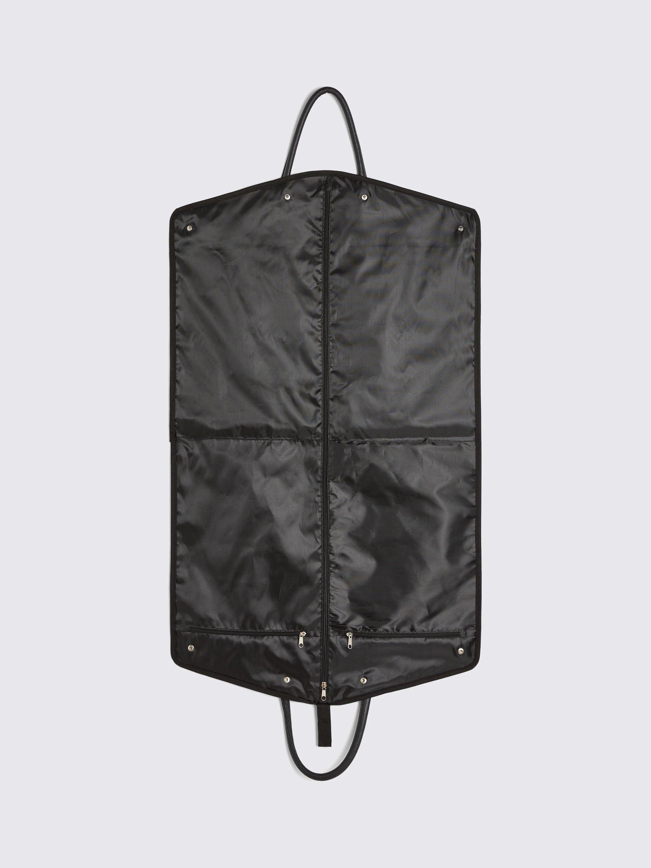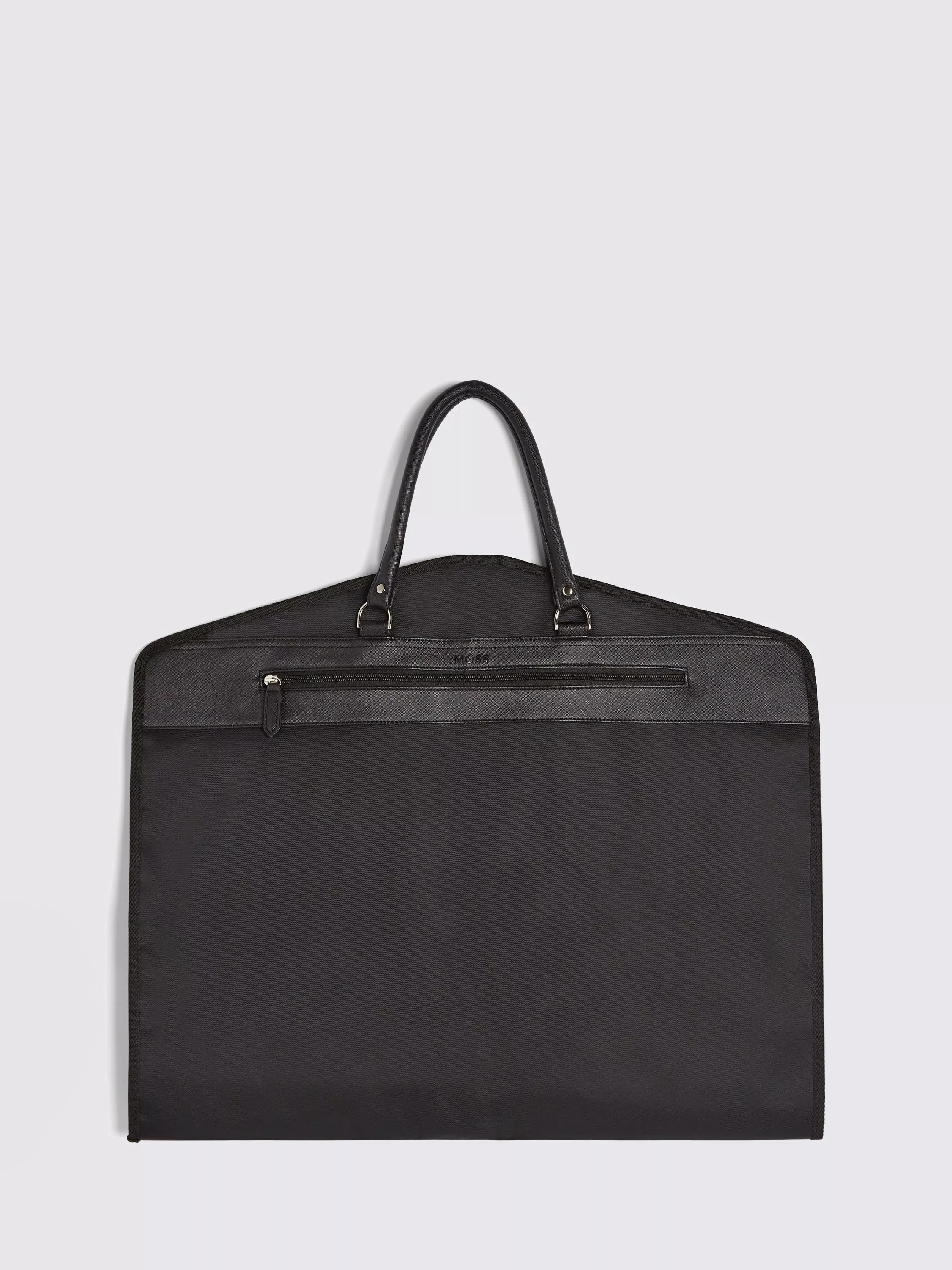 Keep your tailoring sharp even when it's in transit. Ideal for ensuring your outfit arrives looking the part, Moss' elevated suit carrier is trimmed with black faux leather in a Saffiano effect and finished with branding. There are ample storage spots for your essential accessories and the whole thing folds up neatly for easy carrying.