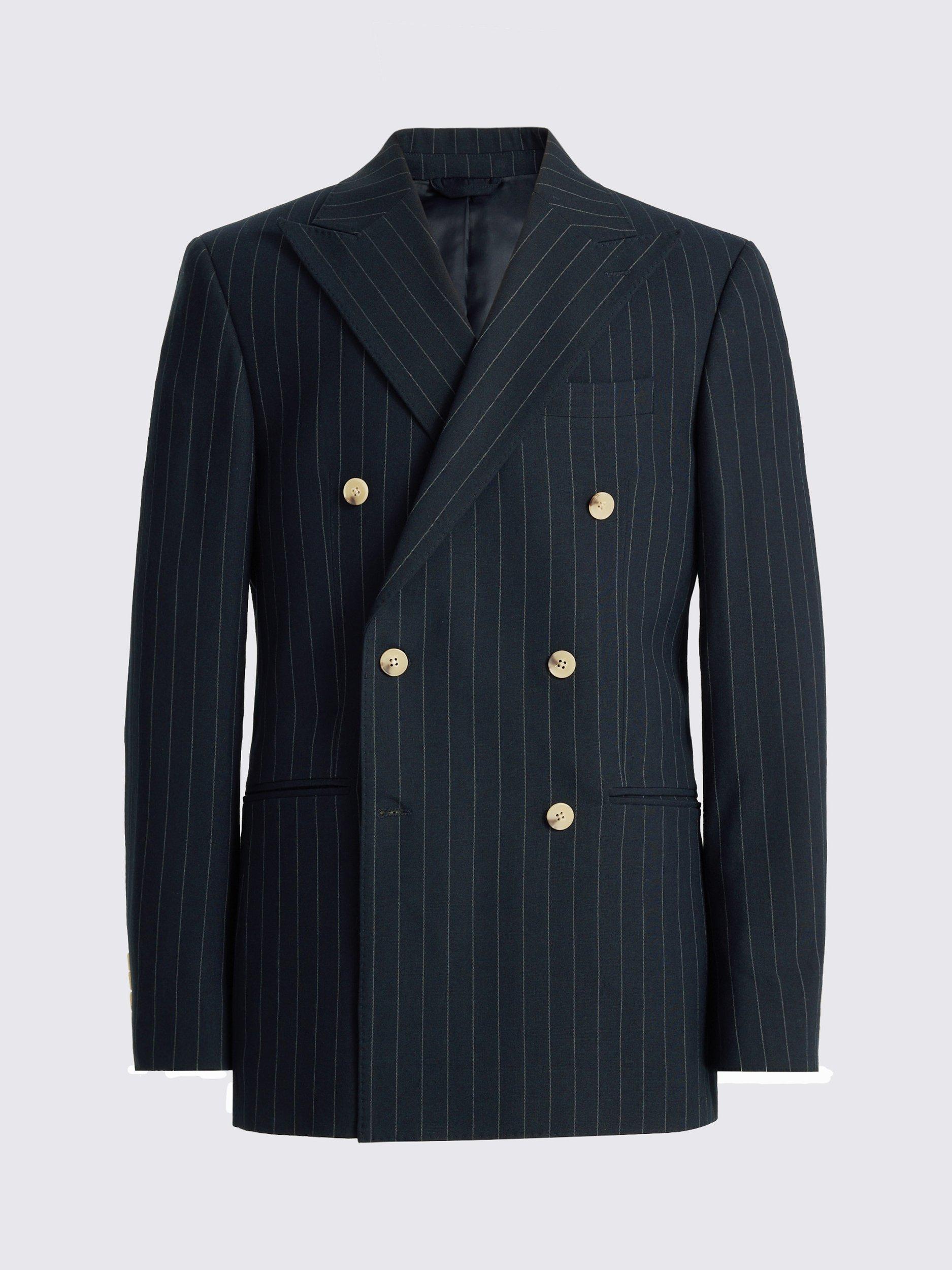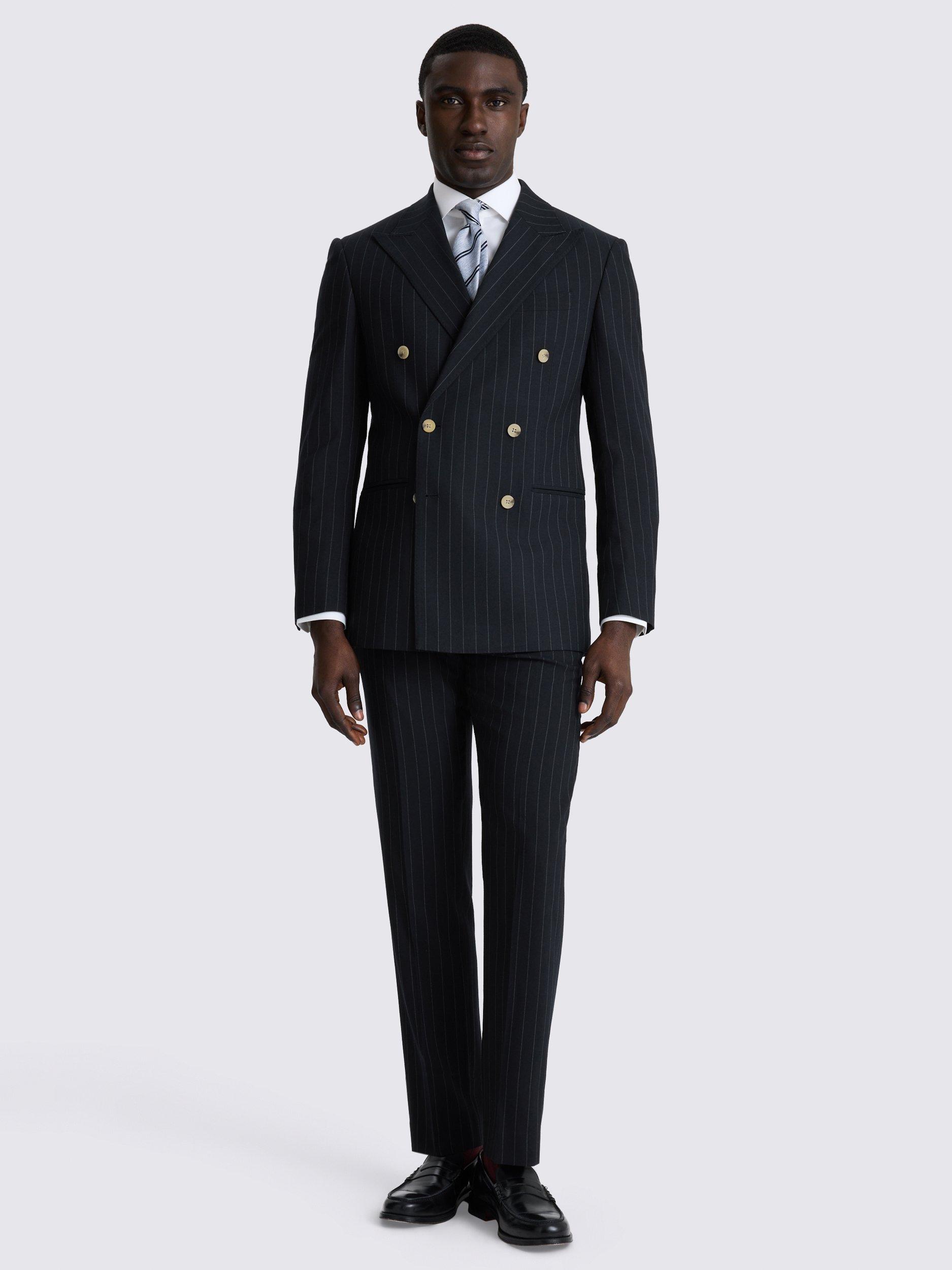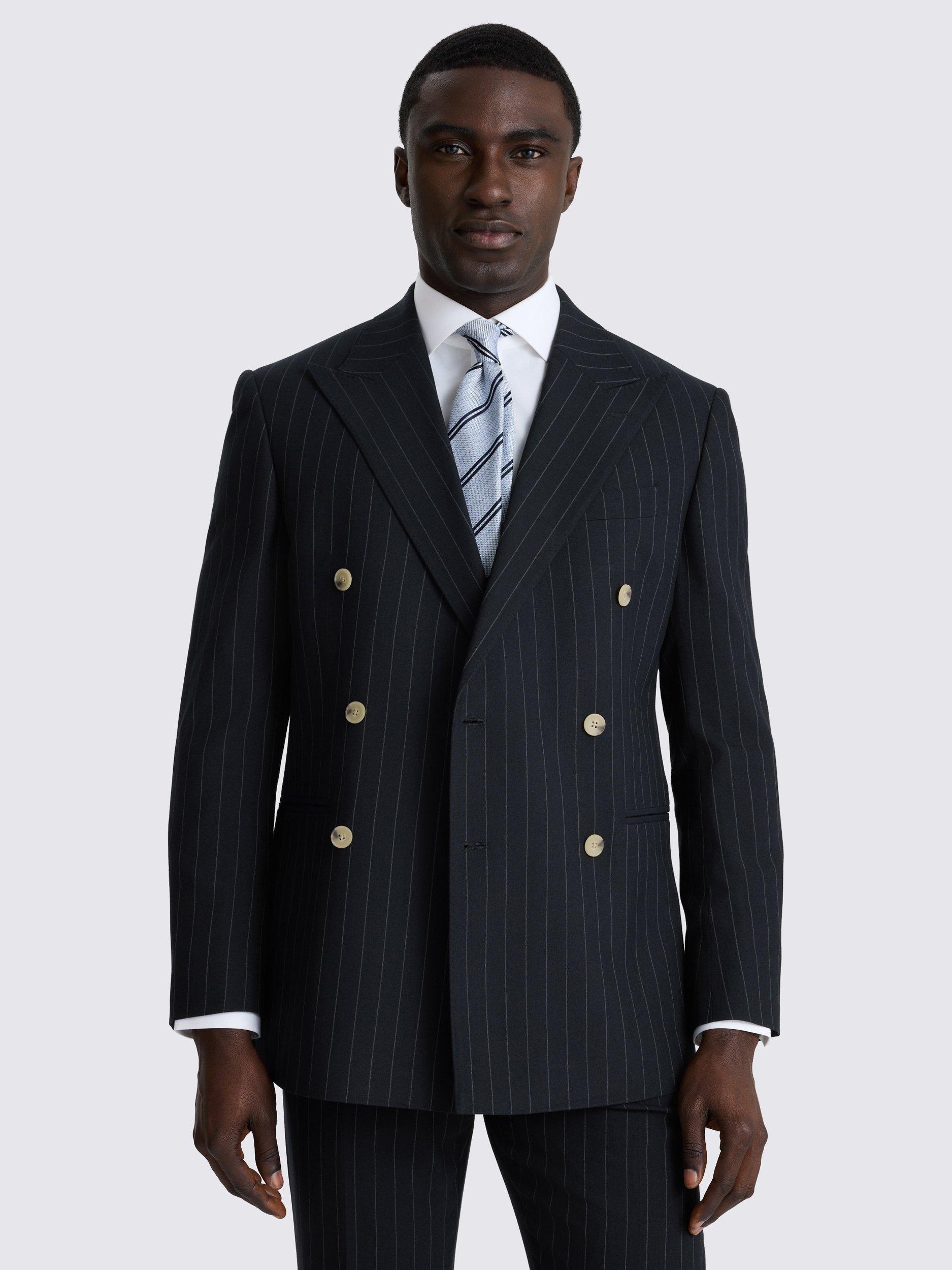 MossTailored Fit Double-Breasted Striped Suit Jacket, Navy
