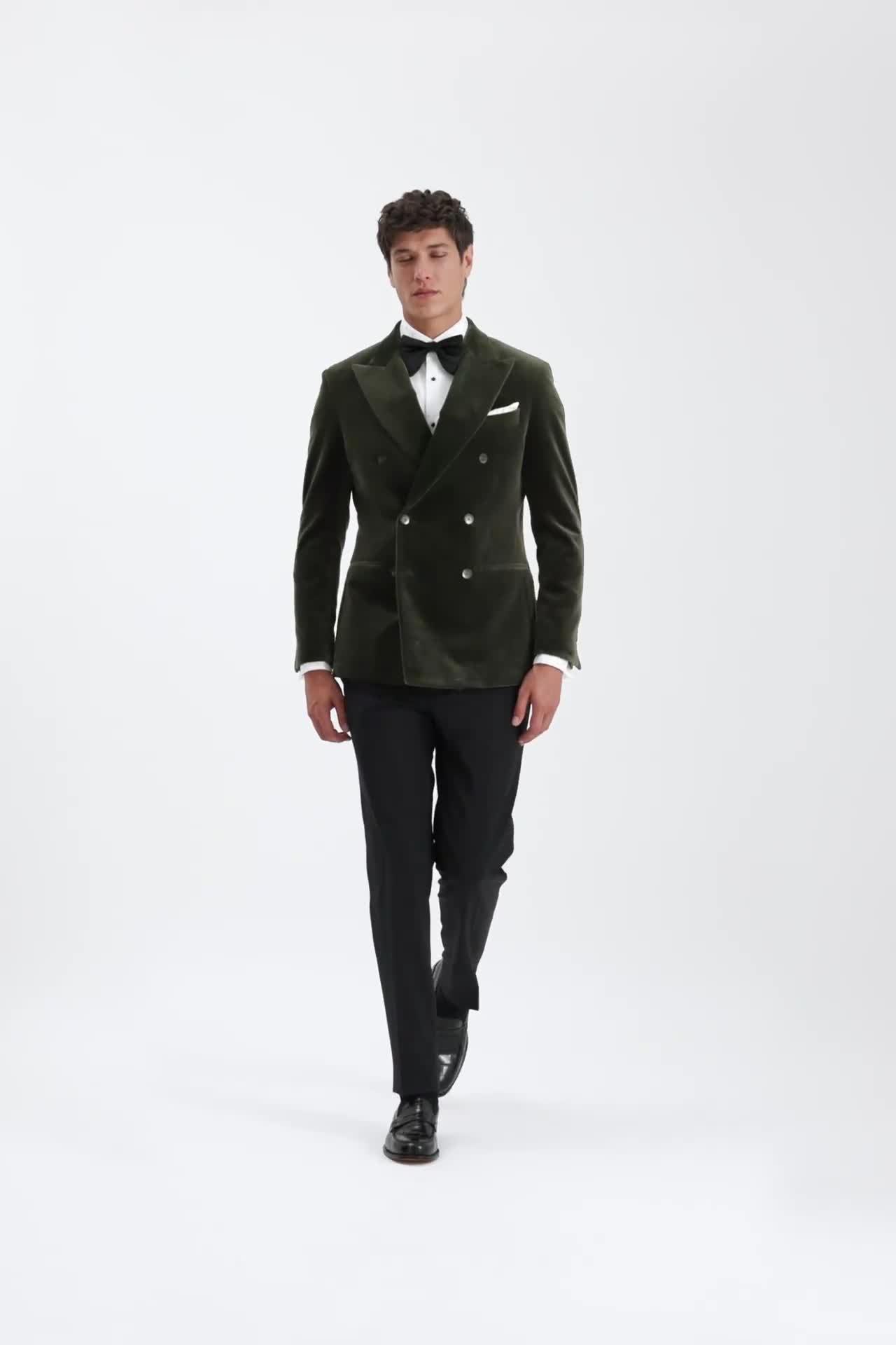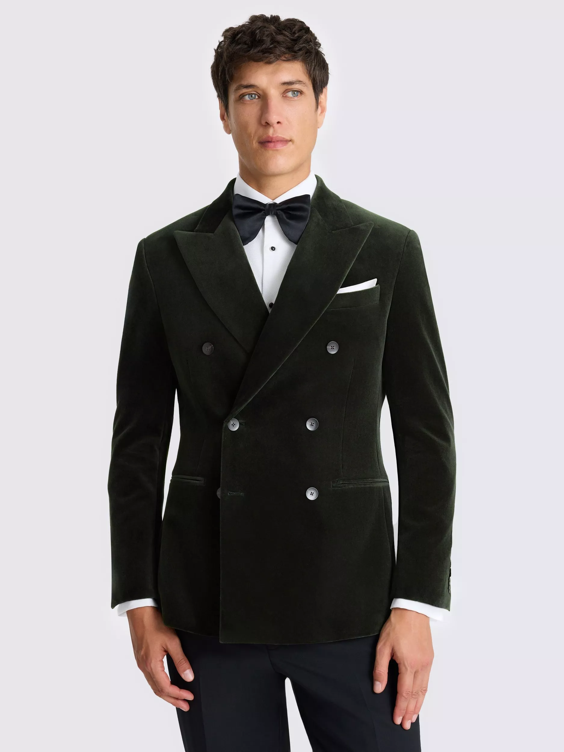 MossTailored Fit Double Breasted Velvet Blazer, Green