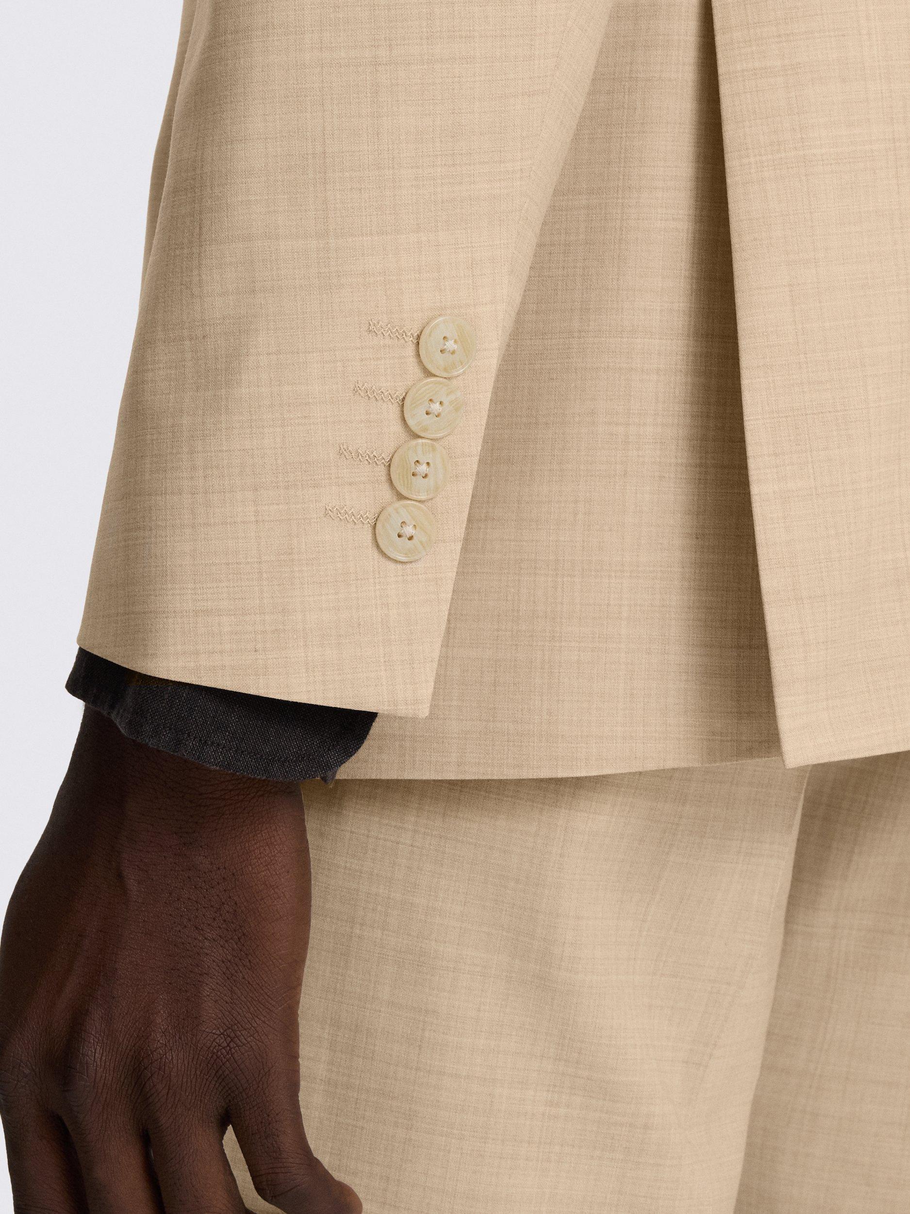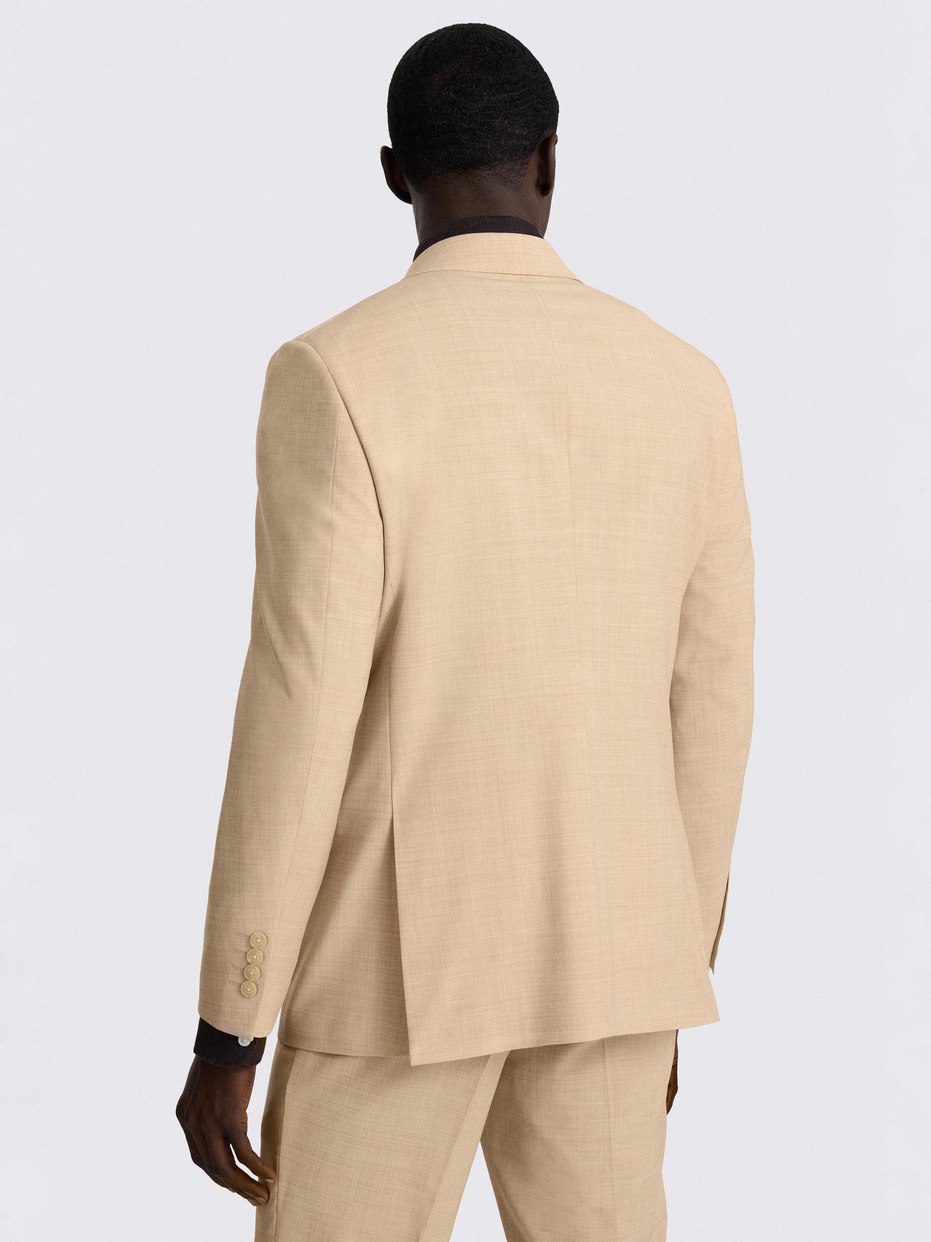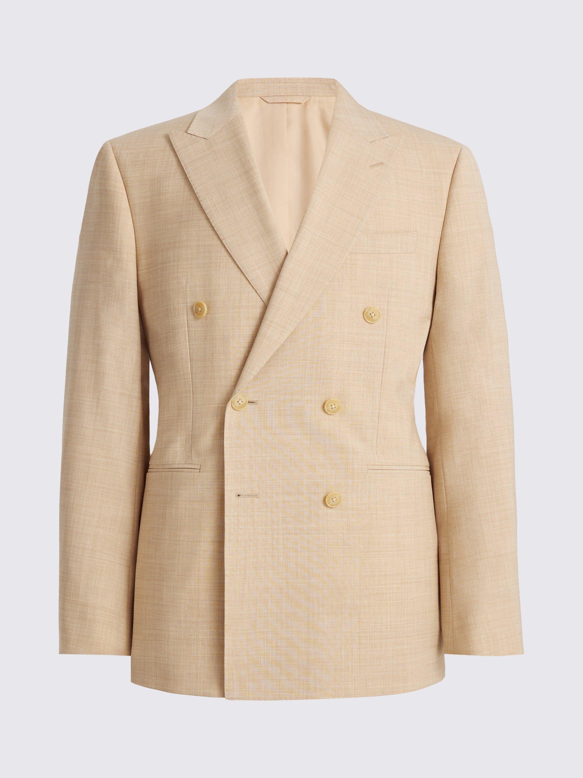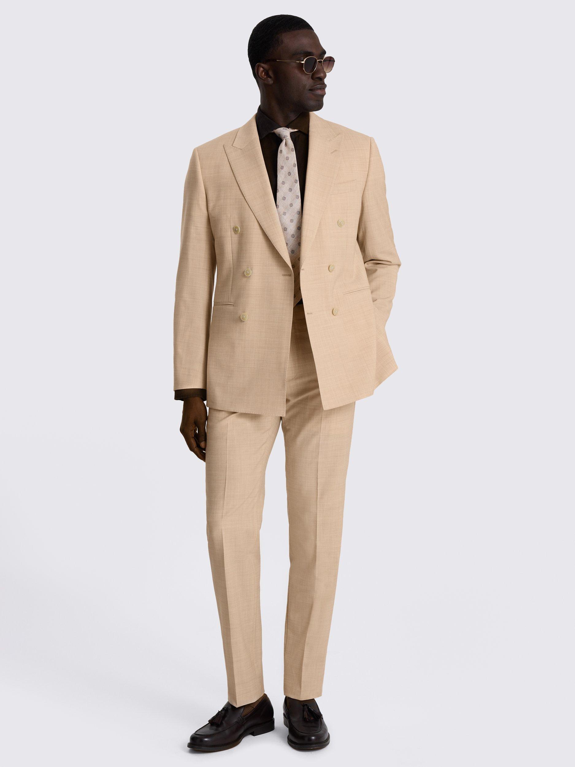 Cut to a modern tailored fit, this double-breasted suit is crafted in this Performance cloth. The wool blend contains stretch for comfort and wrinkle resistance, while a special nano coating ensures splashes won't lead to stains. The tone of the jacket and trousers has a marl effect that is easy to style for all manner of occasions.