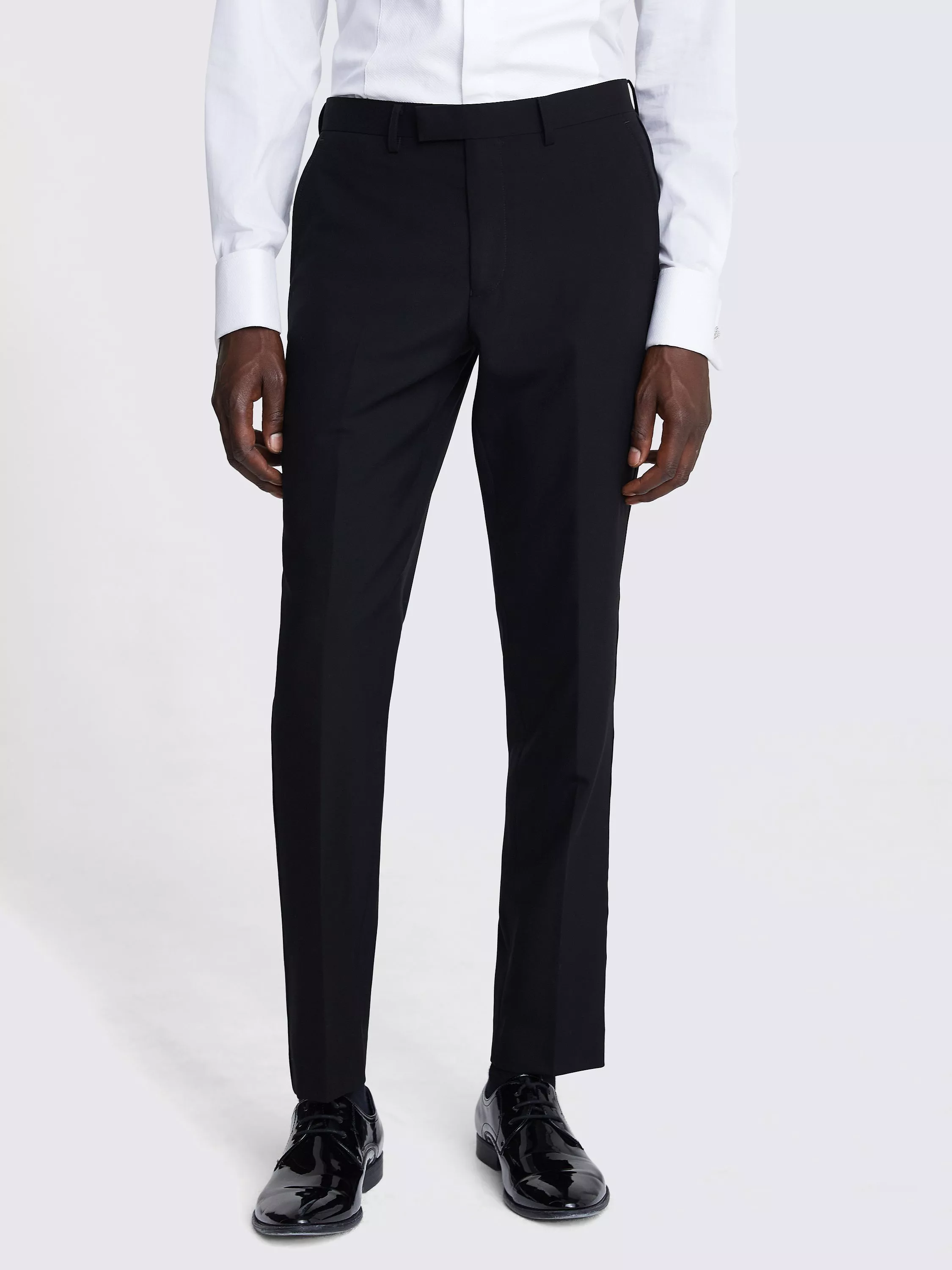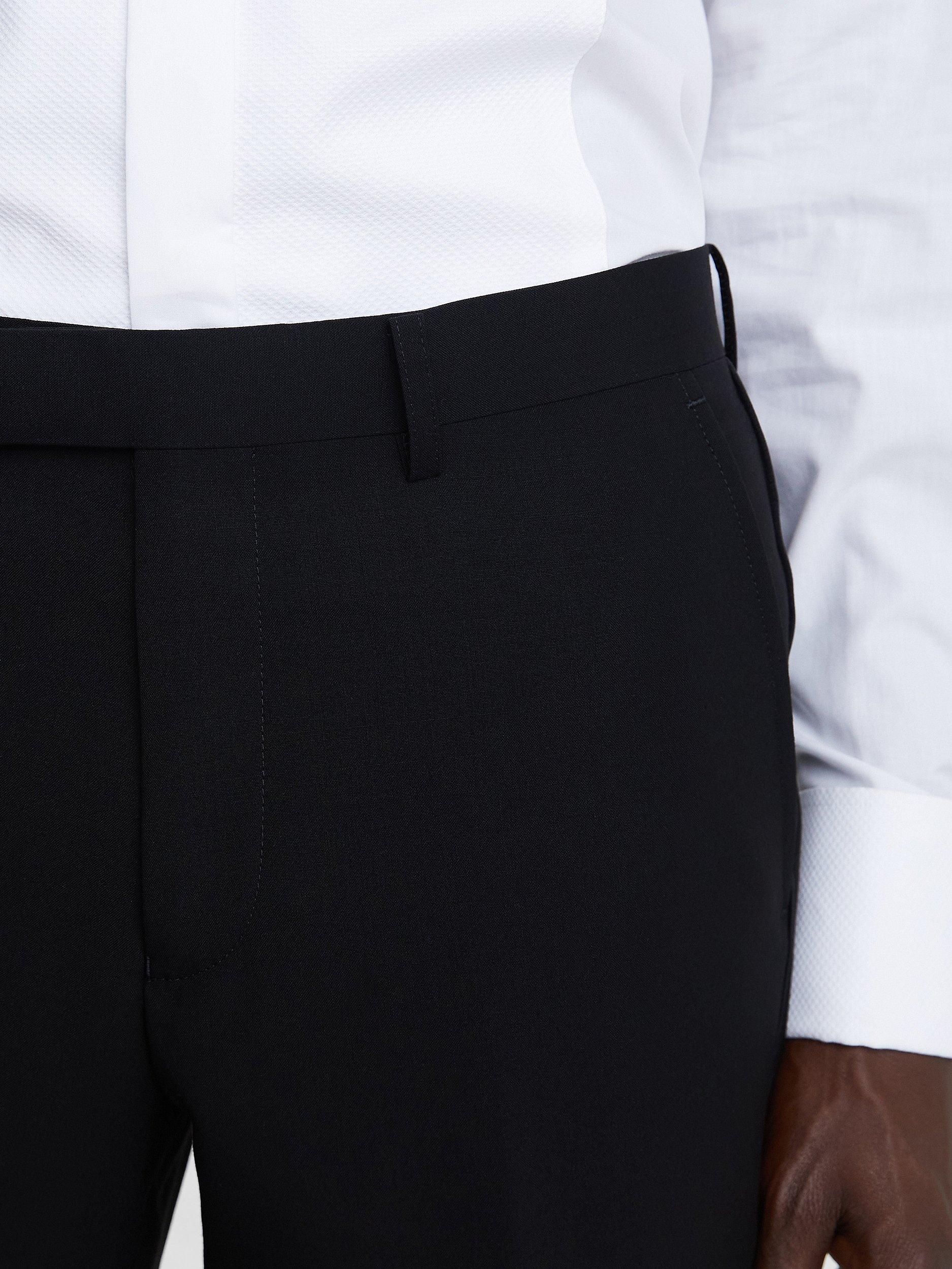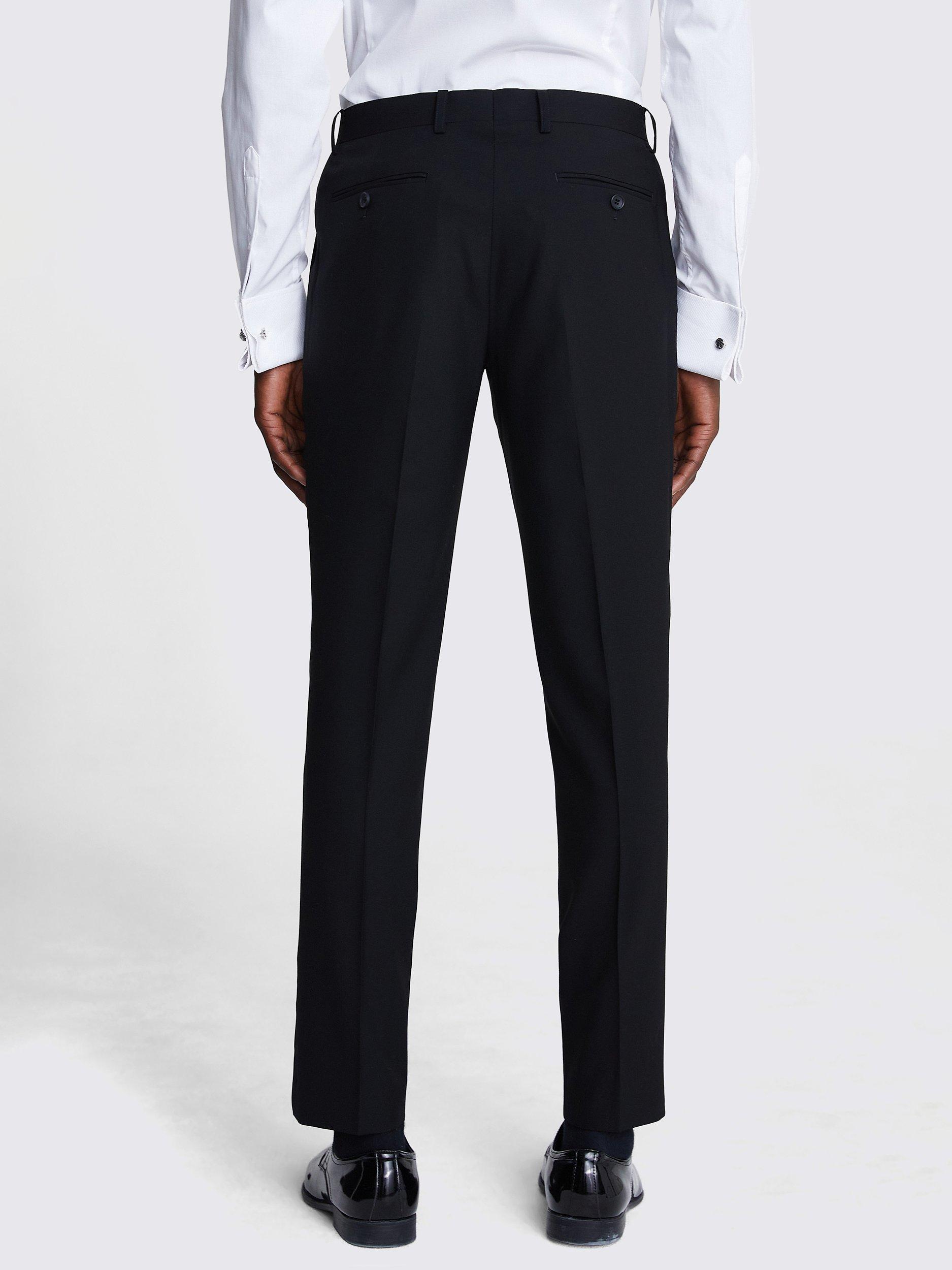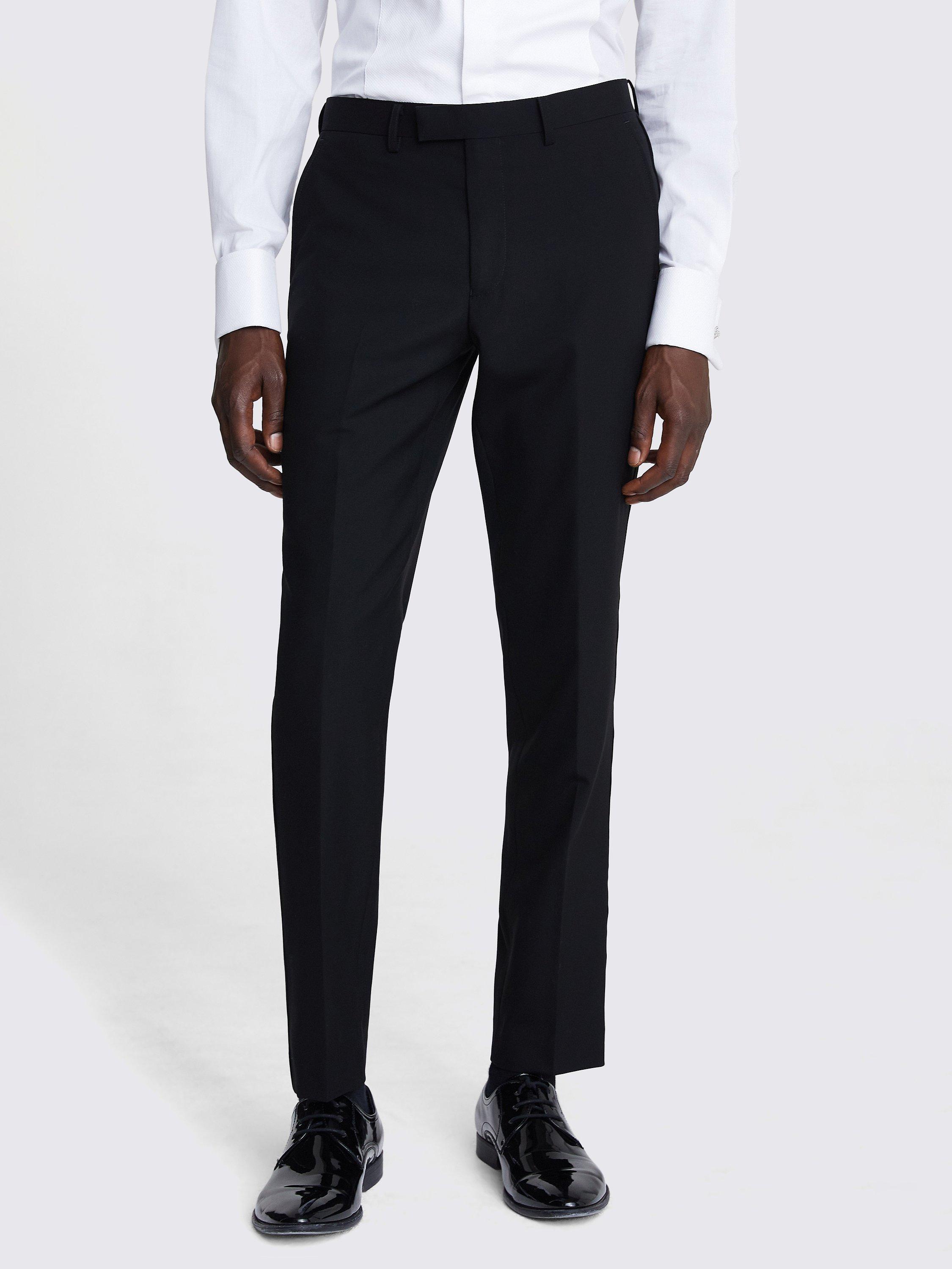 Trimmed with tonal satin piping, Moss' black dress trousers are cut to a tailored fit in pure-wool cloth for a look that's every bit as refined as the dress code demands. Half lining to the knee gives a more lightweight feel that's great for warm-weather events. Combine them with the matching jacket and add classic accessories or shake things up with a contrasting tux if you want to get creative.