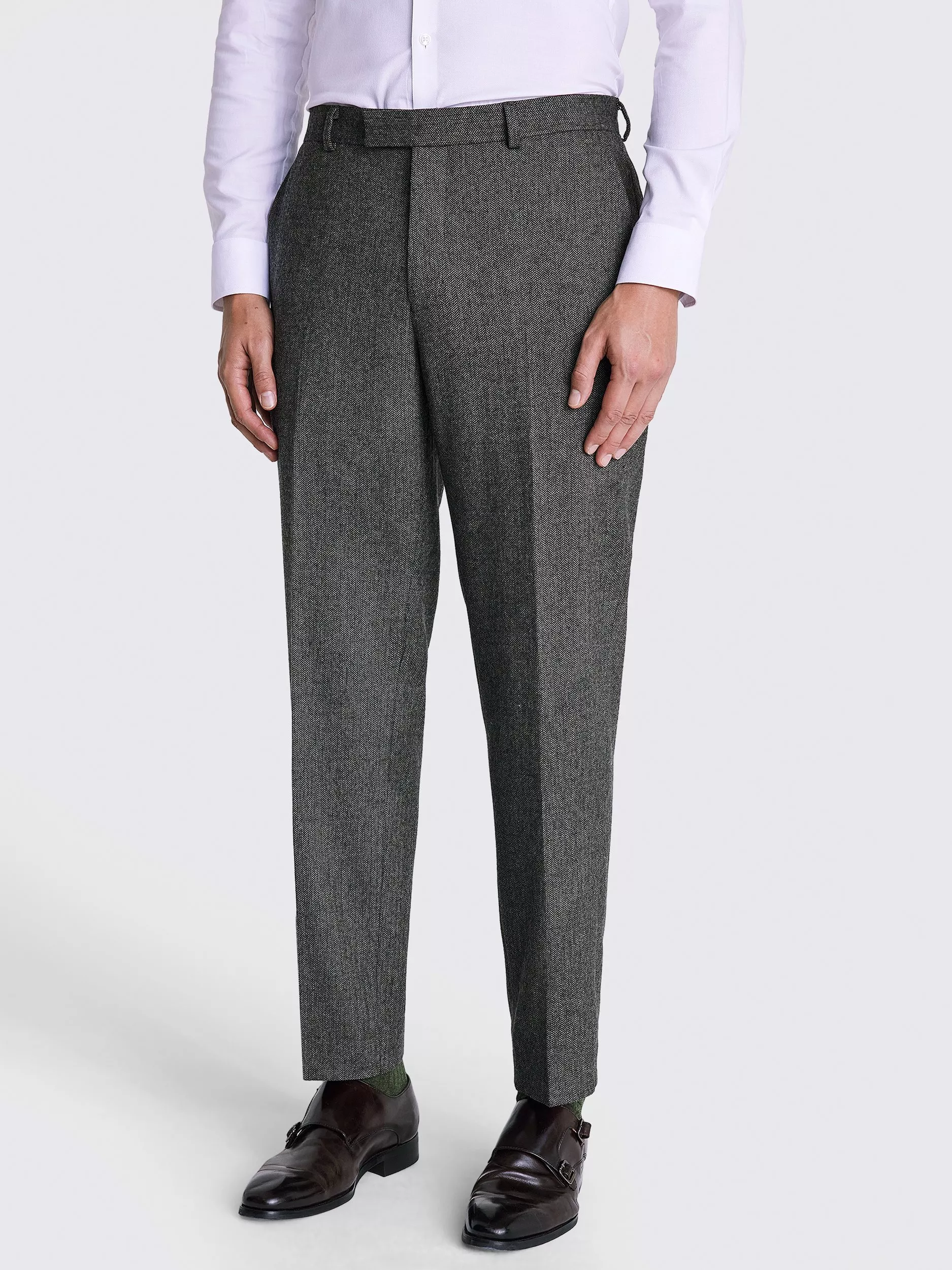 Cut in a tailored fit for a modern profile that will sit perfectly between office and occasion styling, these trousers from the Moss collection come in a charming Herringbone Tweed.