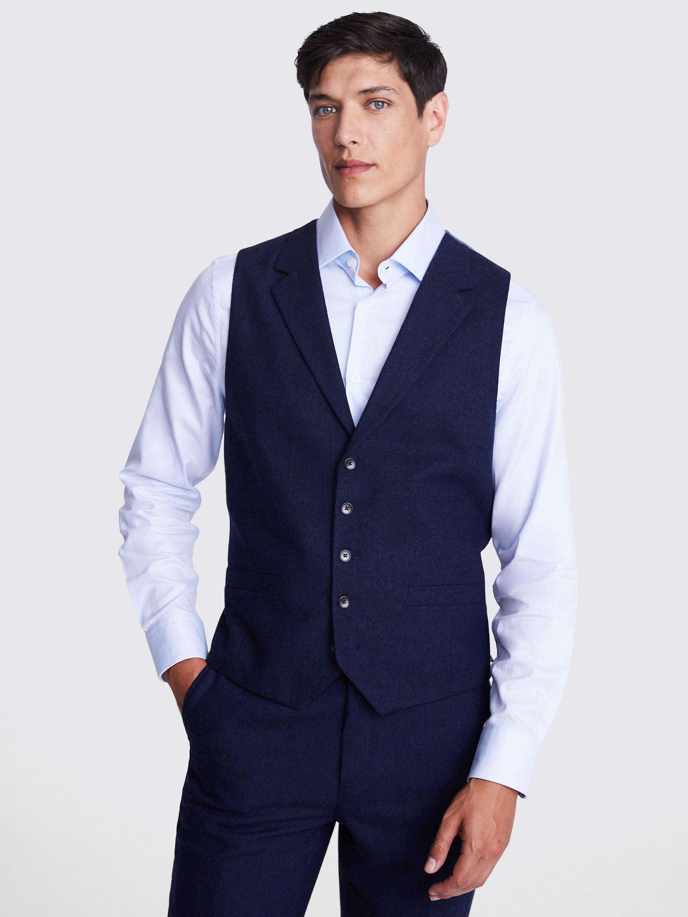 MossTailored Fit Herringbone Waistcoat, Ink