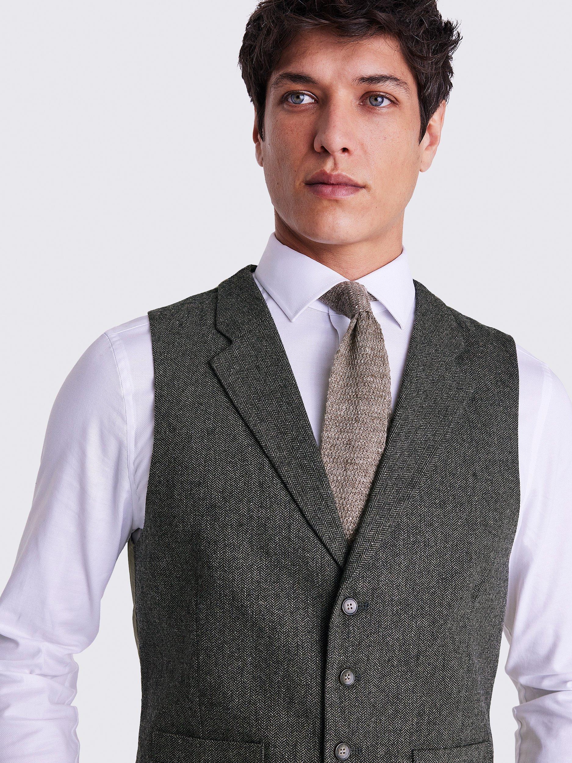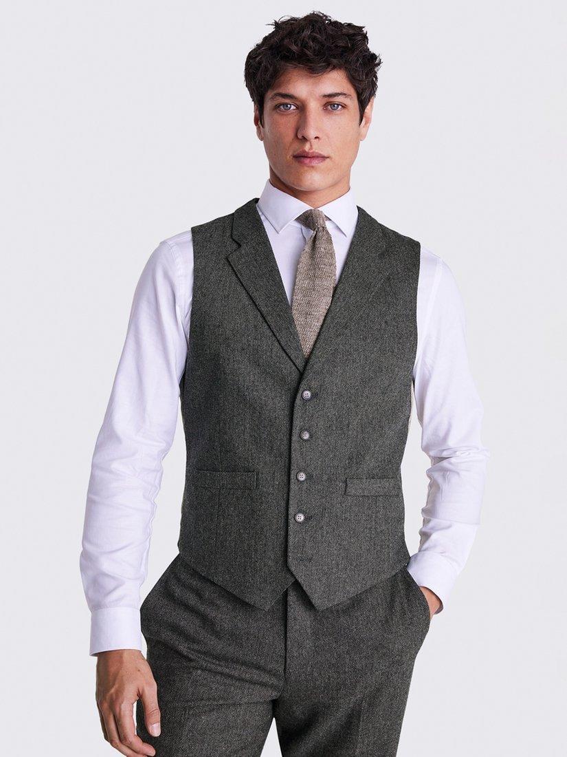 Constructed from a wool-rich fabrication, this waistcoat is formed in a Herringbone pattern - a nod to classic gentleman's tailoring.