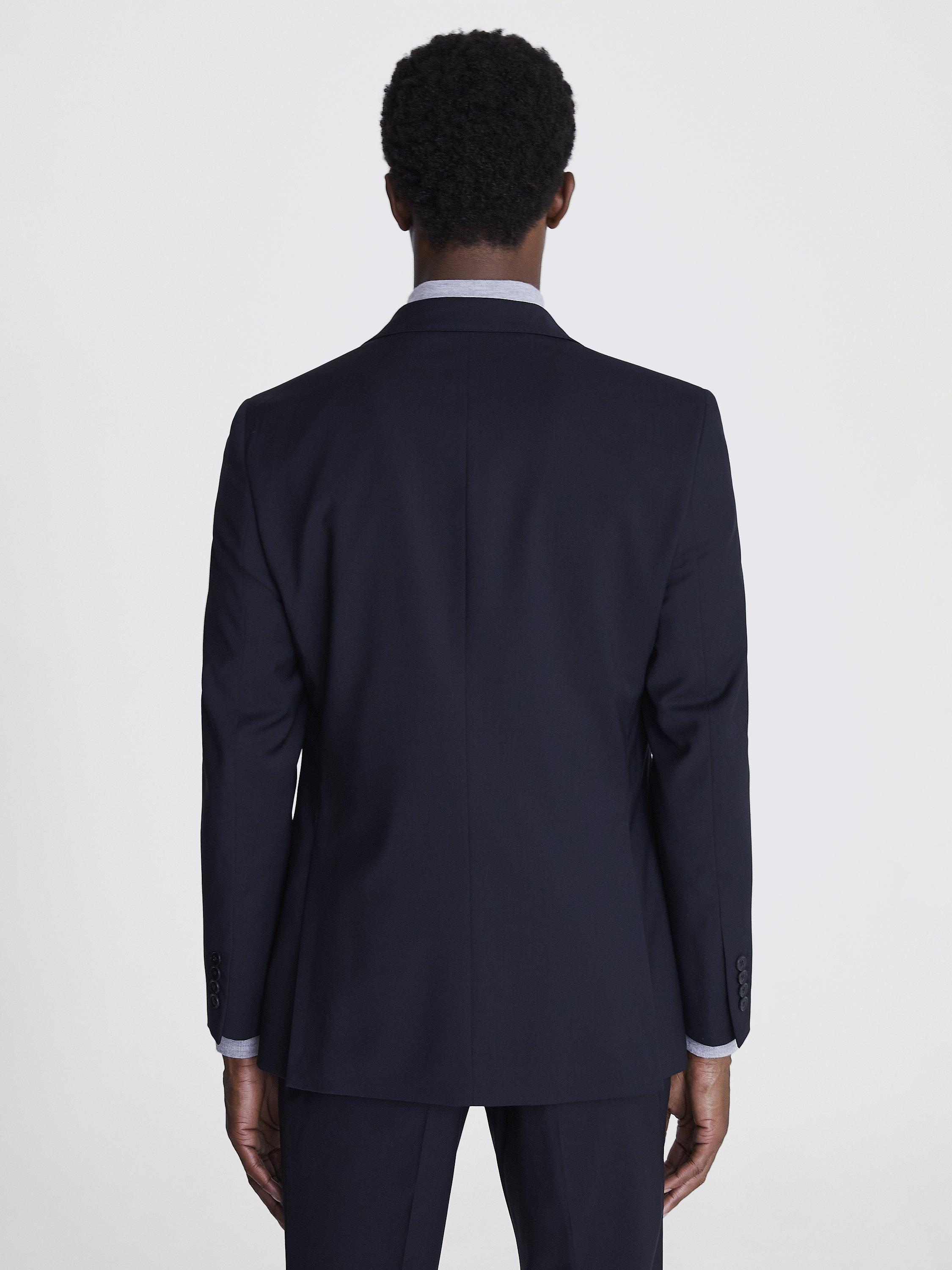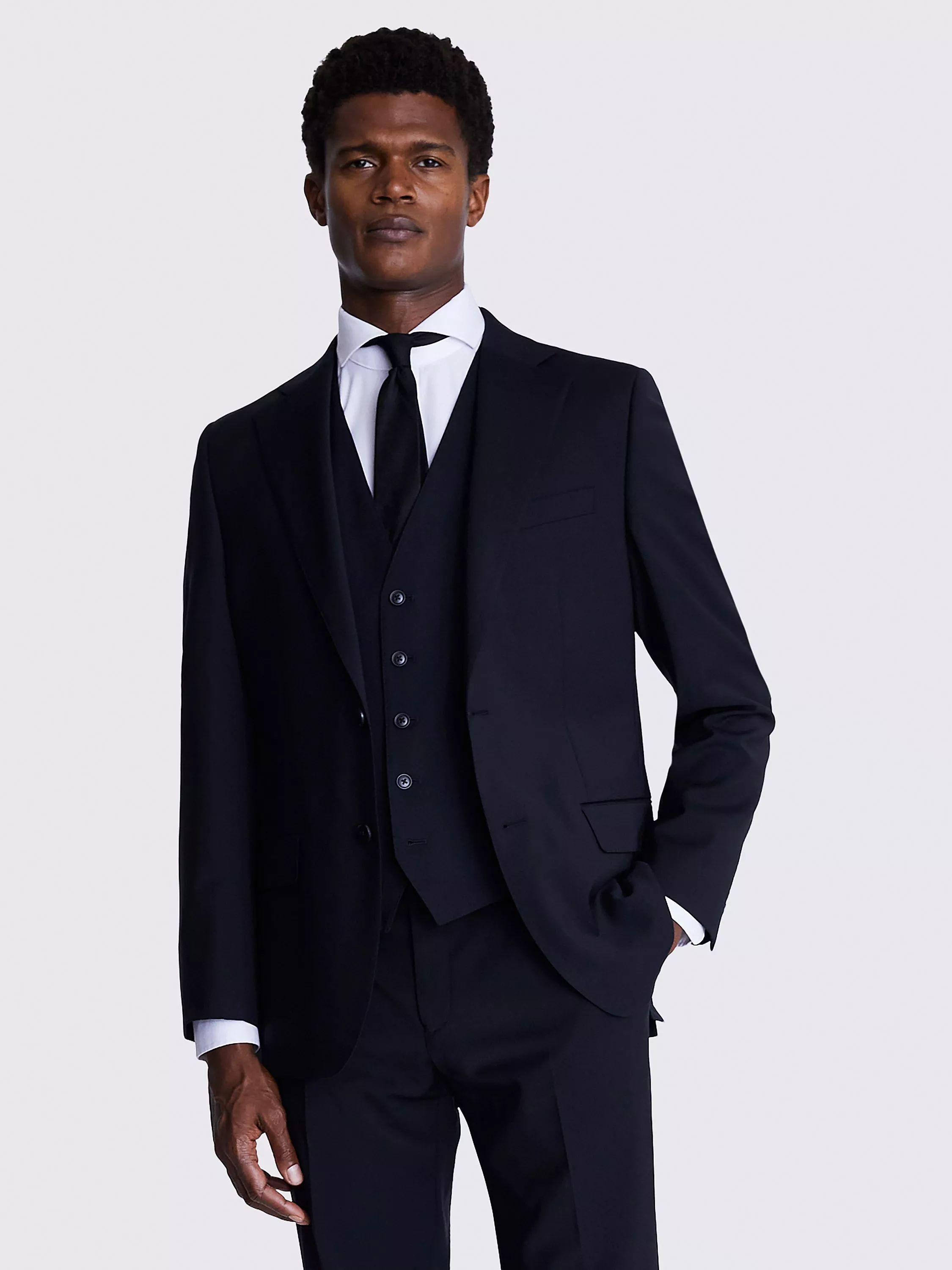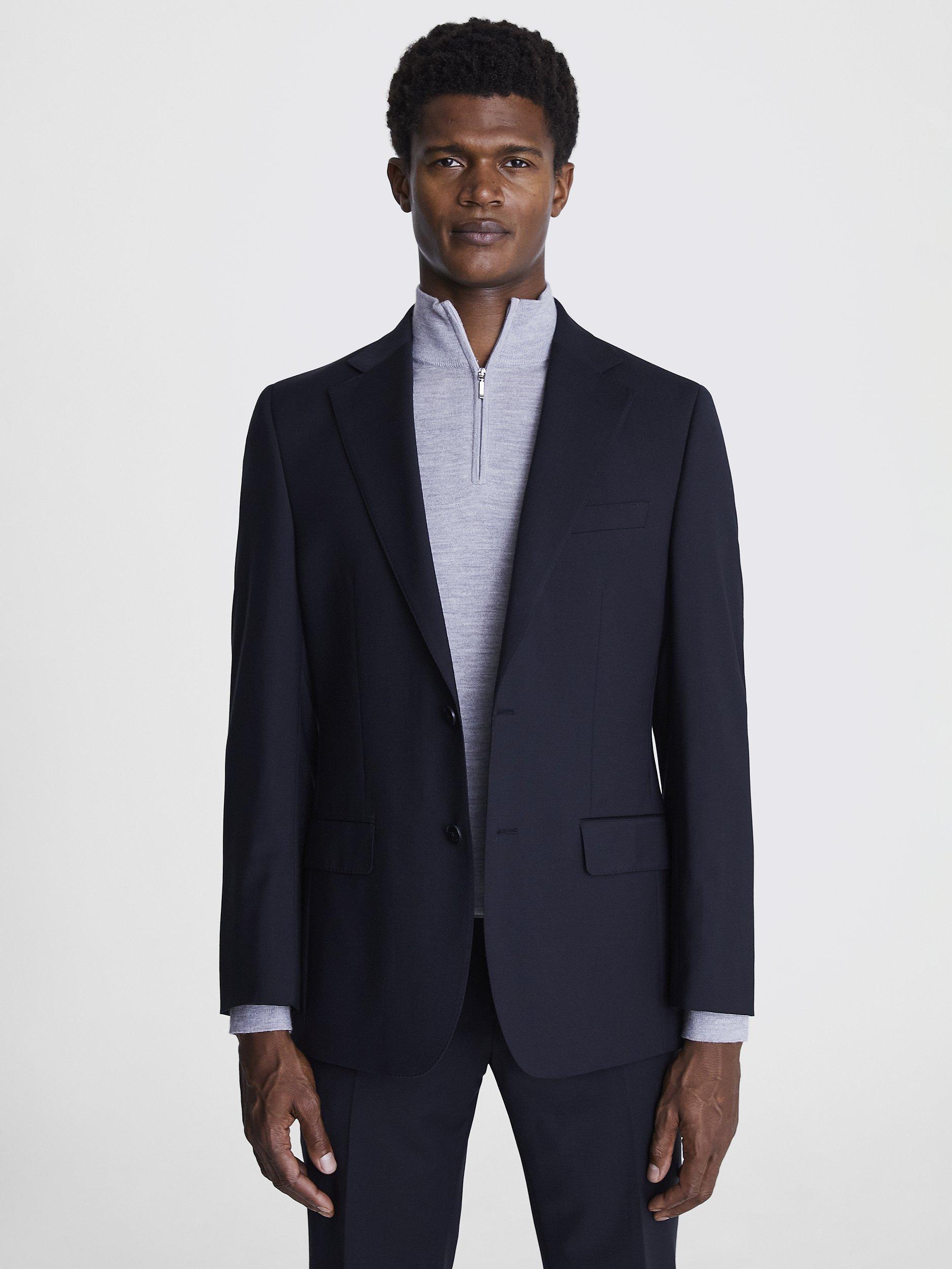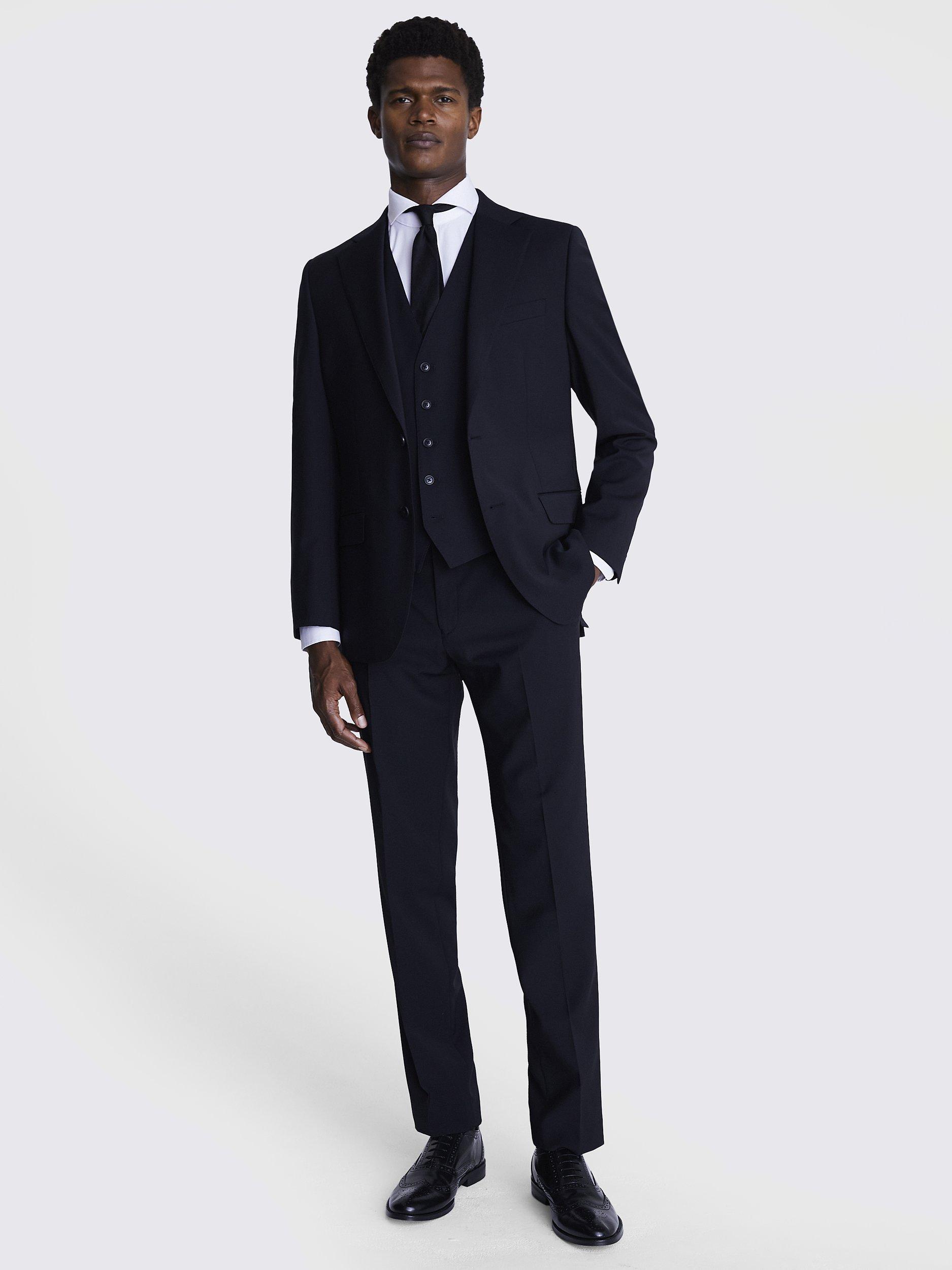 Need an outfit that can keep up with your hectic lifestyle? This performance suit from Moss is the one for you. If you're always on the go, you need a suit that can keep up. This performance jacket is not only incredibly stylish, its ability to resist creasing and stains, and repel light rain, make it a must-have for any professional. Hit the road suited and booted by selecting this jacket's matching trousers and waistcoat. A slim fit shirt, bold tie and a pair of dark brown derby shoes will complete your stunning look.