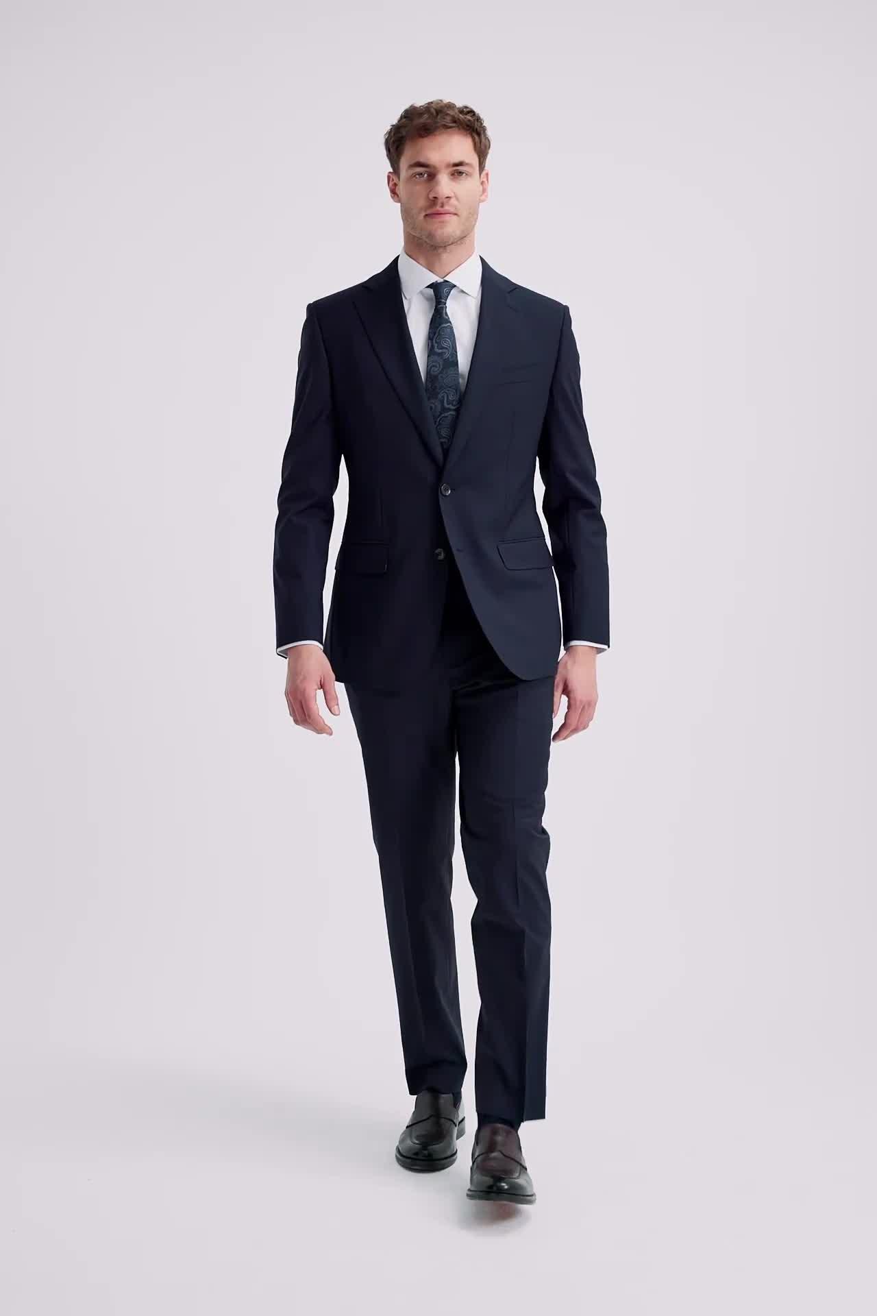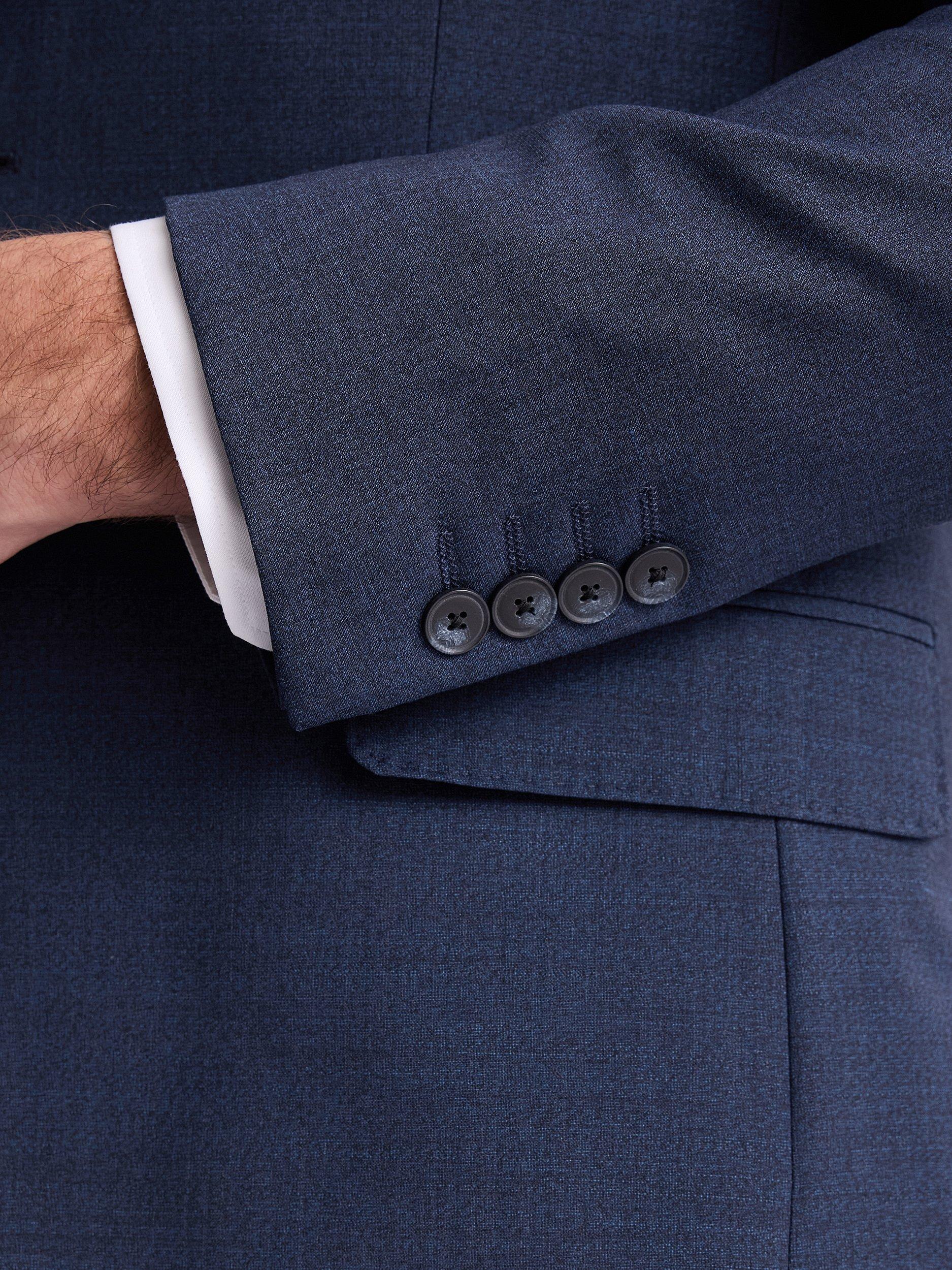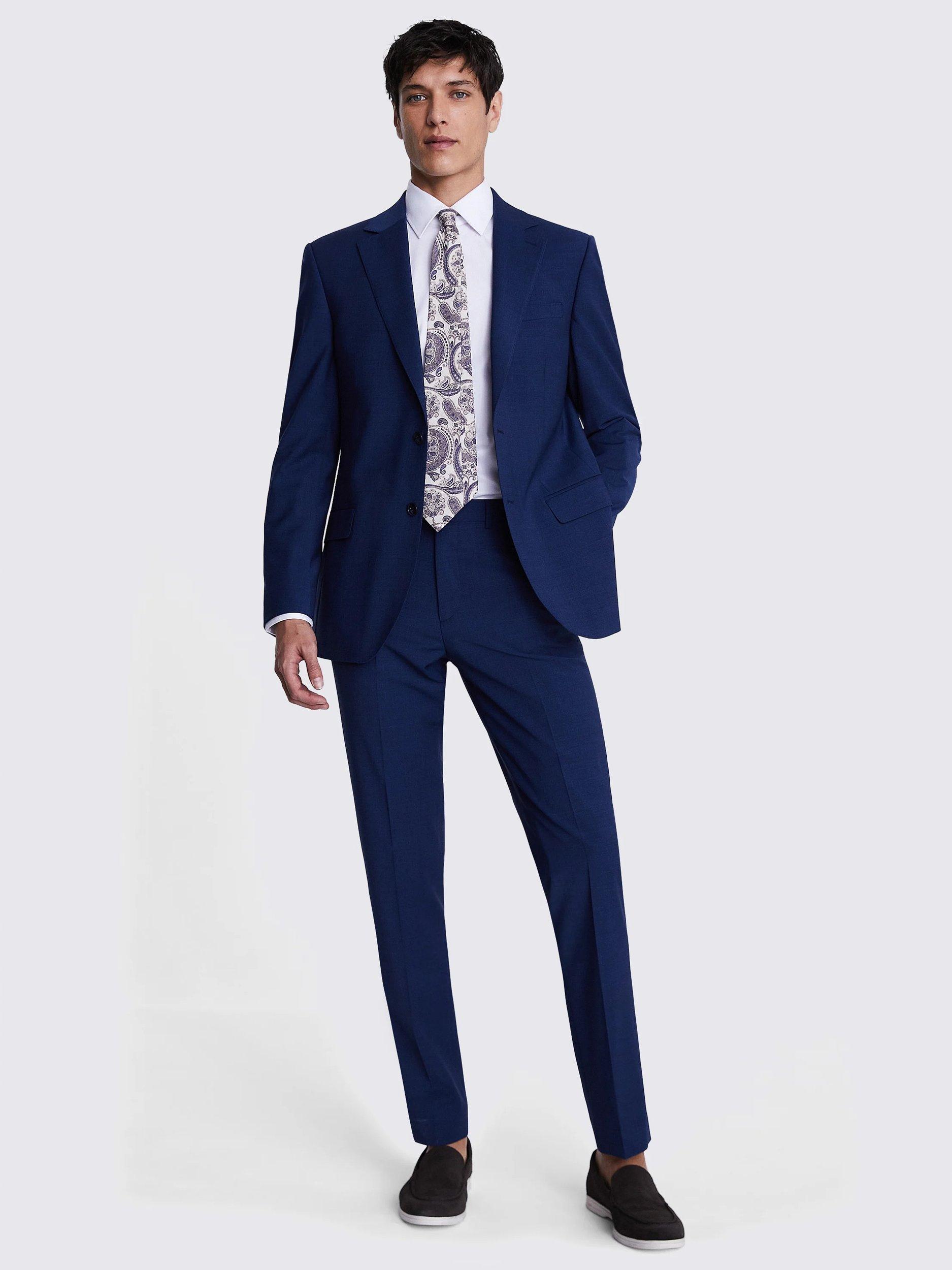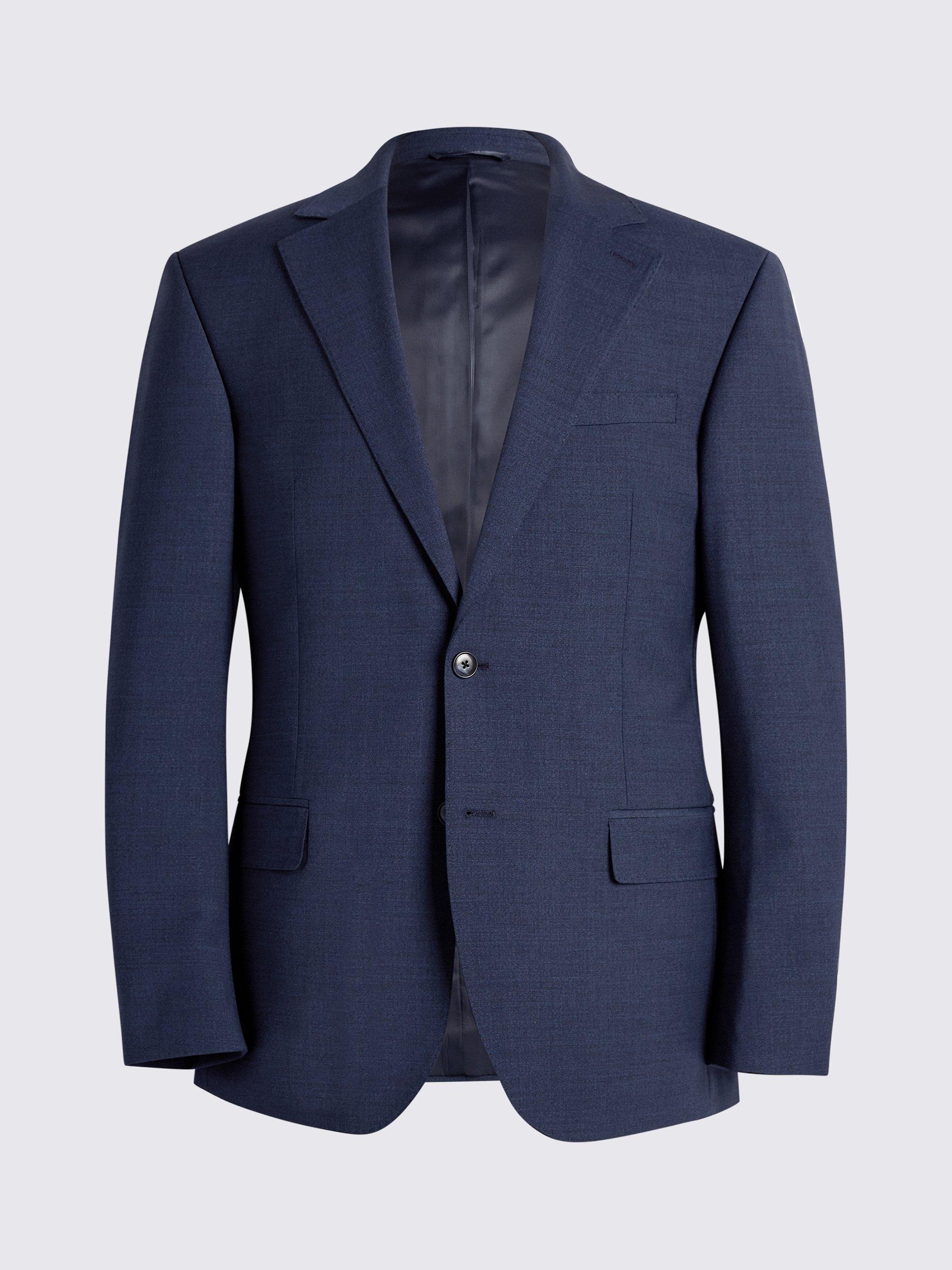 Need an outfit that can keep up with your hectic lifestyle? This performance suit from Moss is the one for you. If you're always on the go, you need a suit that can keep up. This performance jacket is not only incredibly stylish, its ability to resist creasing and stains, and repel light rain, make it a must-have for any professional. Hit the road suited and booted by selecting this jacket's matching trousers and waistcoat. A slim fit shirt, bold tie and a pair of dark brown derby shoes will complete your stunning look.