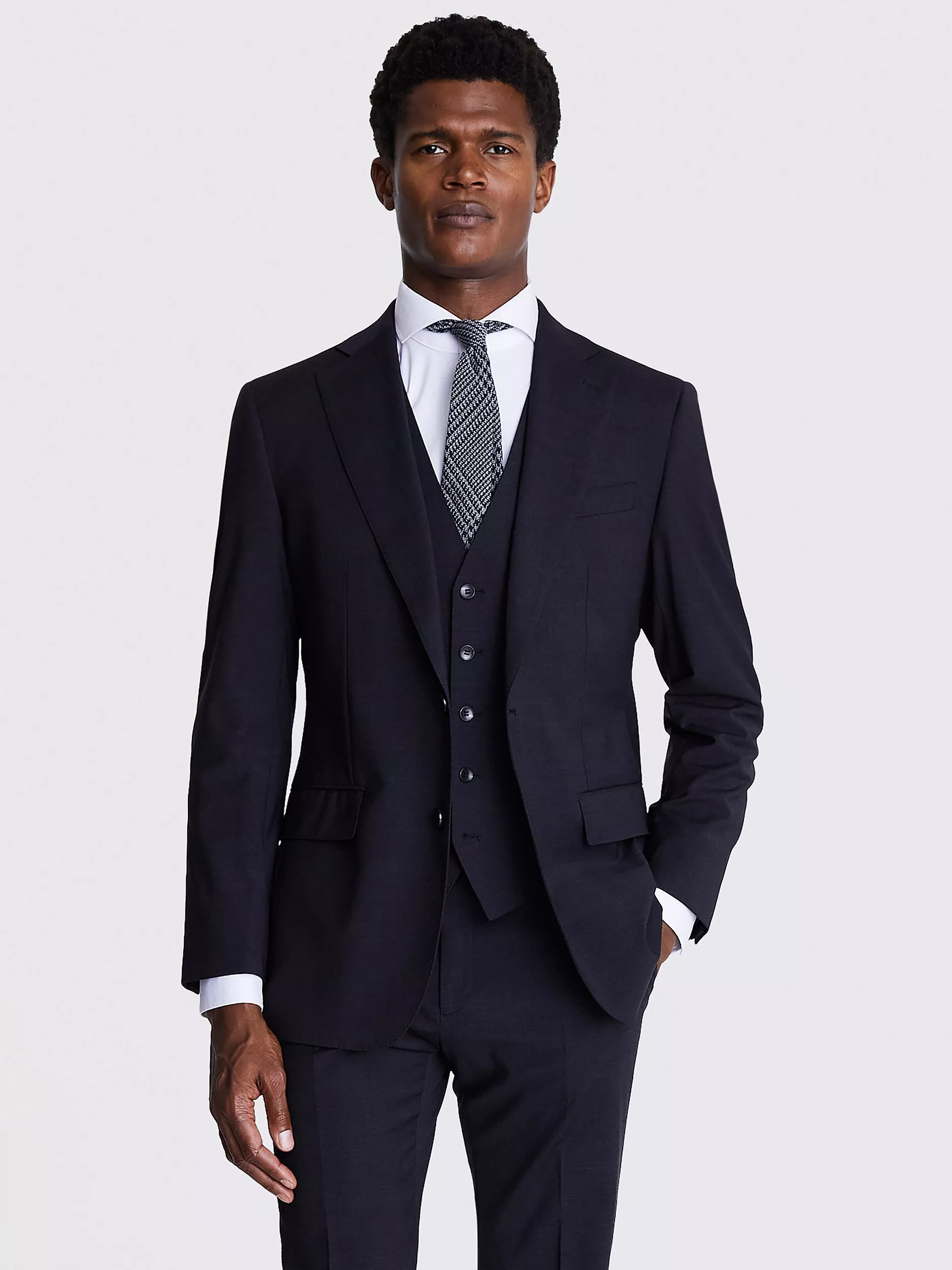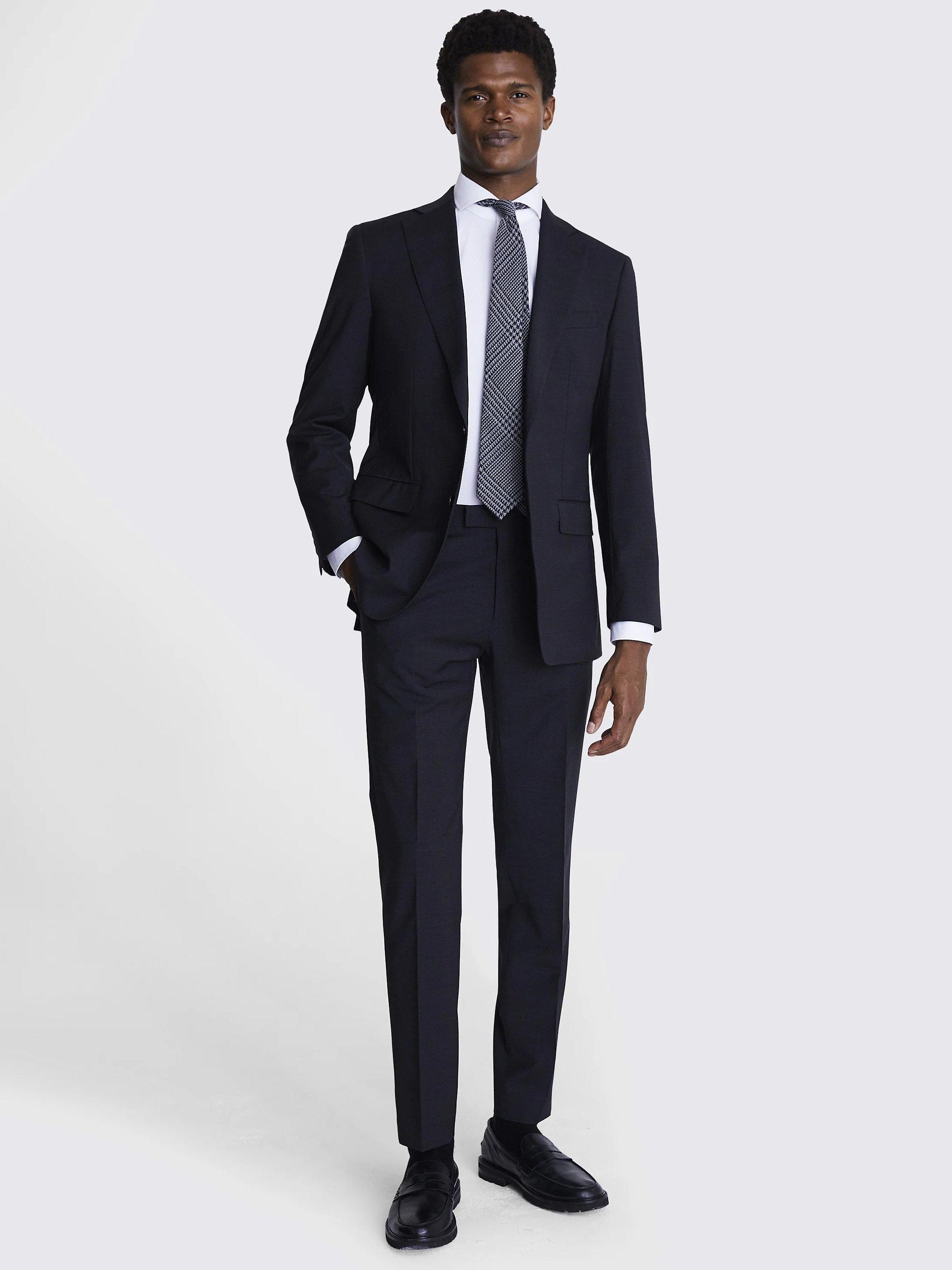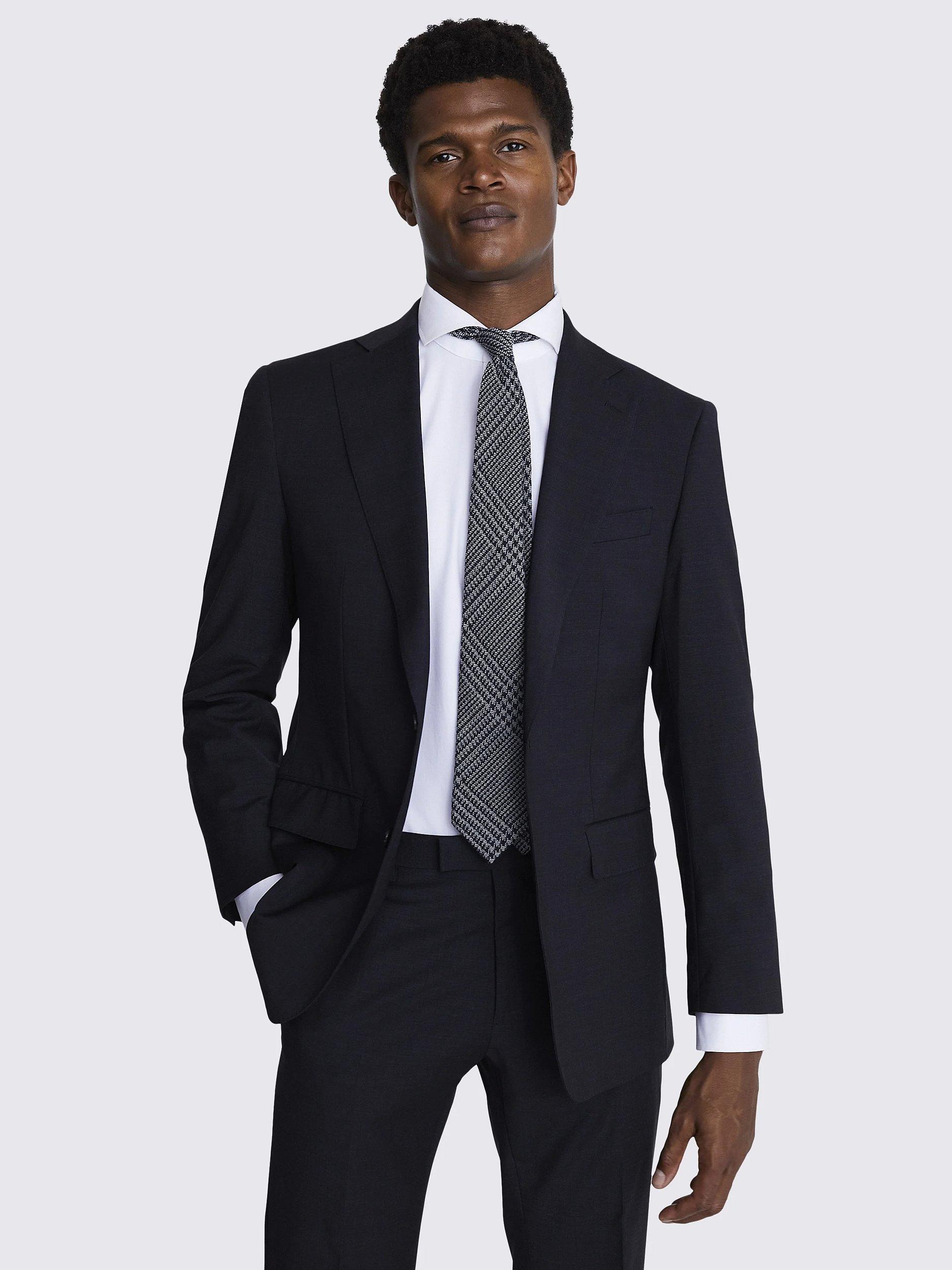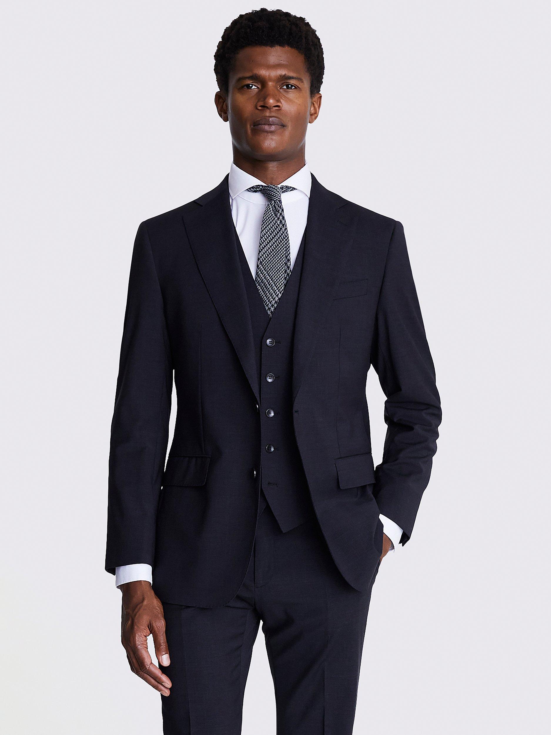 Need an outfit that can keep up with your hectic lifestyle? This performance suit from Moss is the one for you. If you're always on the go, you need a suit that can keep up. This performance jacket is not only incredibly stylish, its ability to resist creasing and stains, and repel light rain, make it a must-have for any professional. Hit the road suited and booted by selecting this jacket's matching trousers and waistcoat. A slim fit shirt, bold tie and a pair of dark brown derby shoes will complete your stunning look.