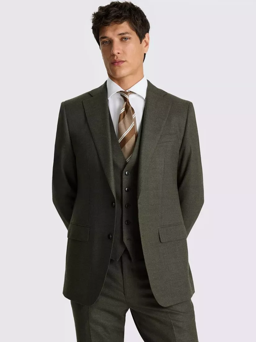 Need an outfit that can keep up with your hectic lifestyle? This performance suit from Moss is the one for you. If you're always on the go, you need a suit that can keep up. This performance jacket is not only incredibly stylish, its ability to resist creasing and stains, and repel light rain, make it a must-have for any professional. Hit the road suited and booted by selecting this jacket's matching trousers and waistcoat. A slim fit shirt, bold tie and a pair of dark brown derby shoes will complete your stunning look.