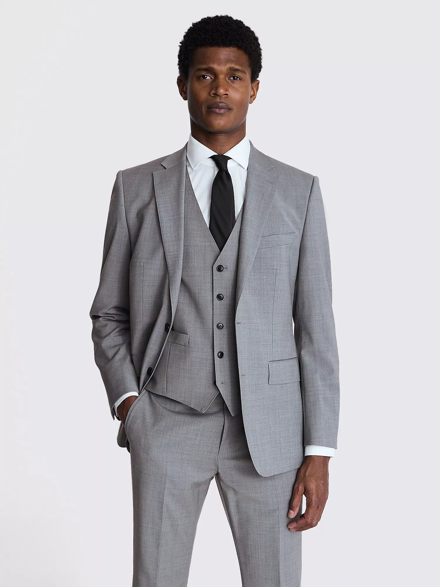 Need an outfit that can keep up with your hectic lifestyle? This performance suit from Moss is the one for you. If you're always on the go, you need a suit that can keep up. This performance jacket is not only incredibly stylish, its ability to resist creasing and stains, and repel light rain, make it a must-have for any professional. Hit the road suited and booted by selecting this jacket's matching trousers and waistcoat. A slim fit shirt, bold tie and a pair of dark brown derby shoes will complete your stunning look.