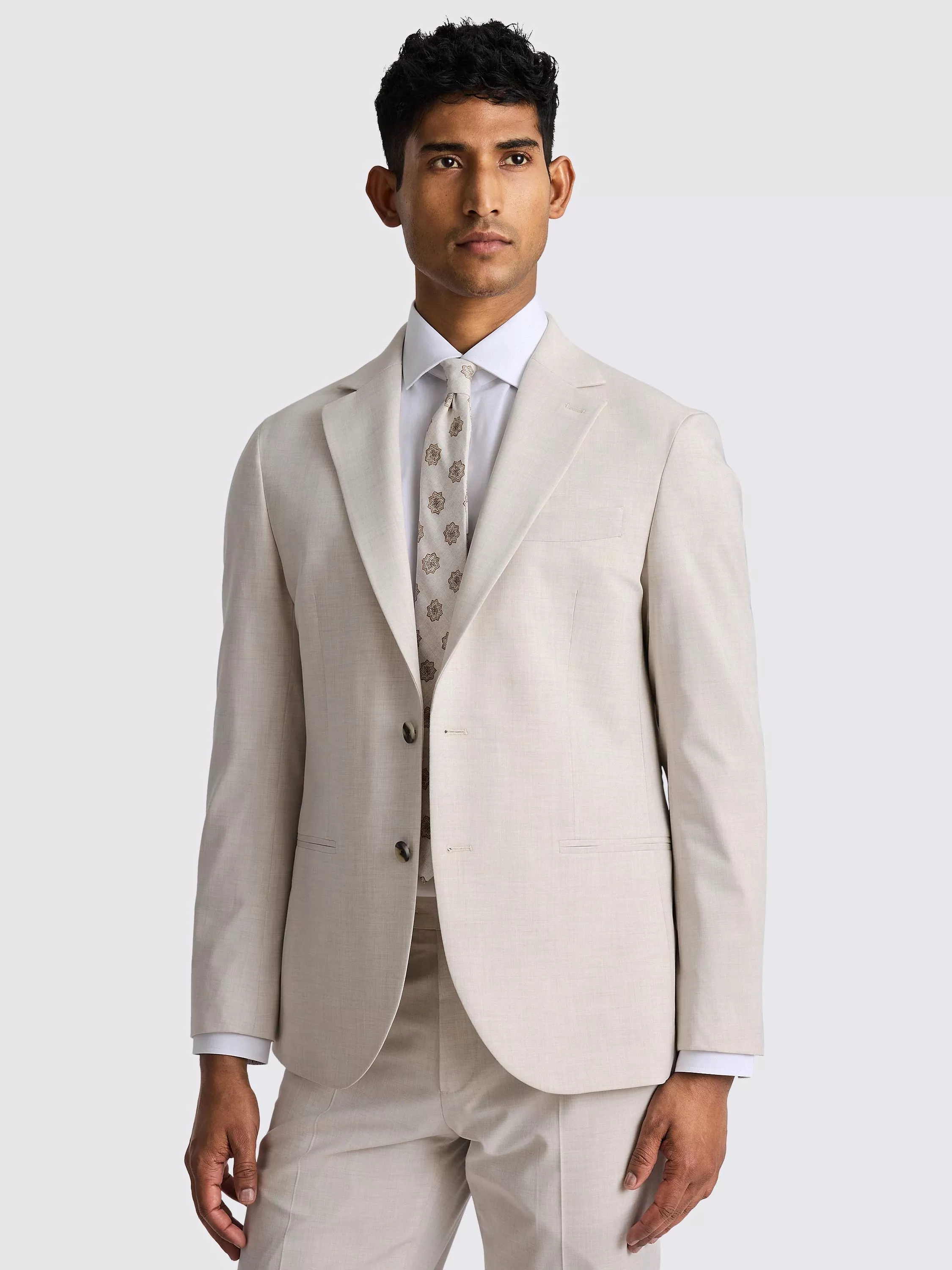 MossTailored Fit Single Breasted Suit Jacket, Light Neutral