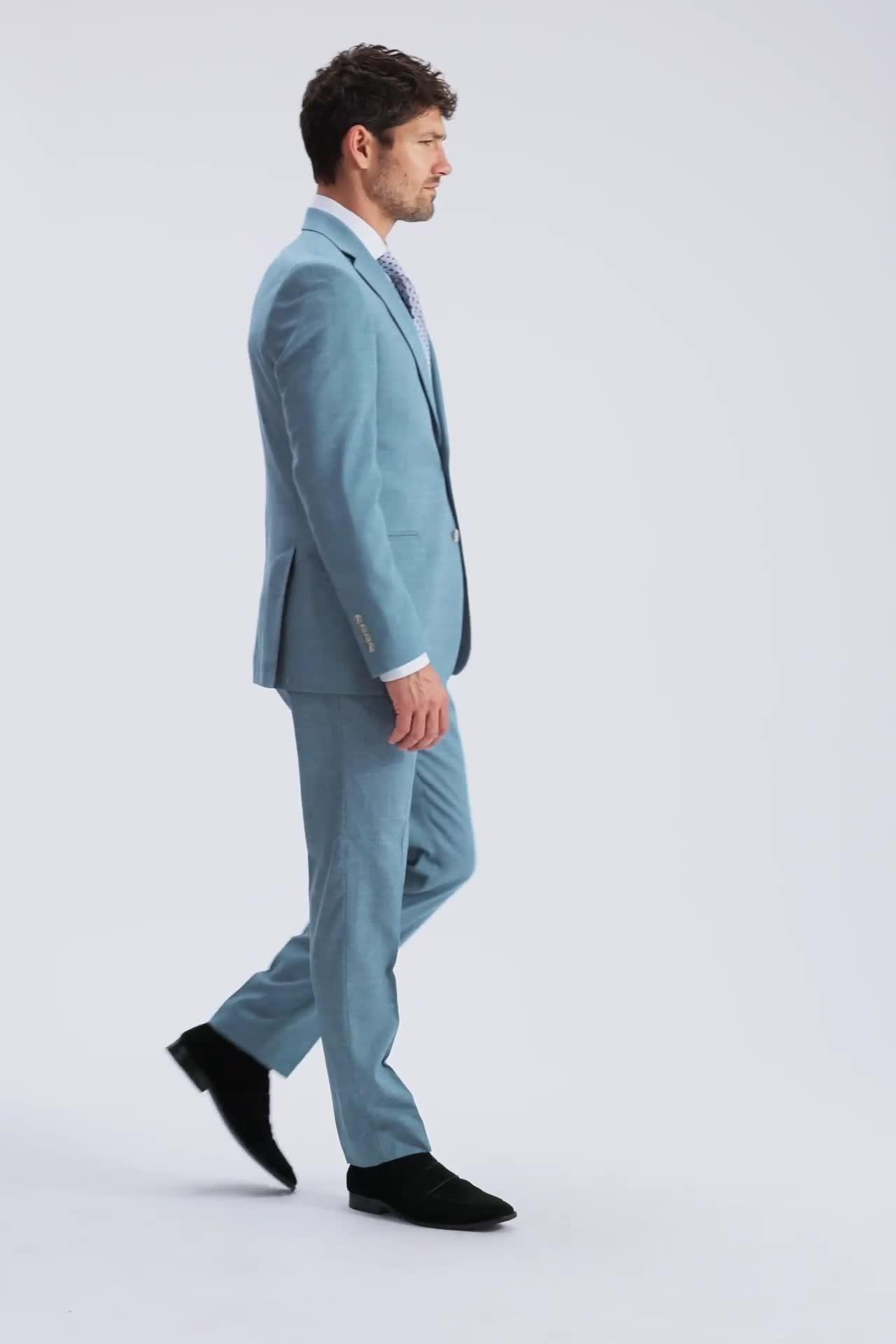 Refresh your summer-event tailoring with the teal tone of the three-piece suit.The jacket, trousers and waistcoat are all cut to a tailored fit for a strong profile, while a slub effect in the stretch yarns gives the fabric extra depth.