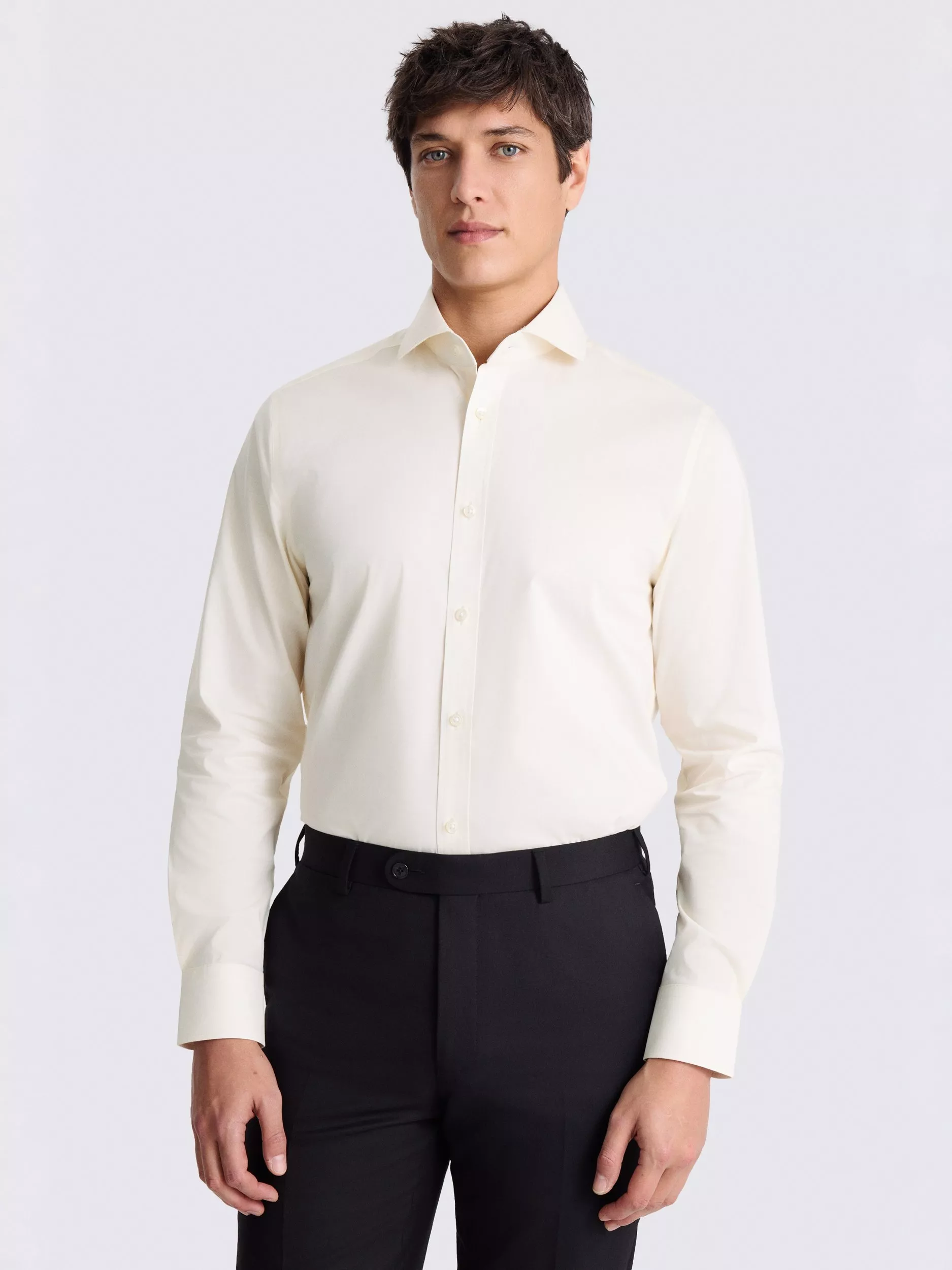 Crafted in Moss'ss super-stretch fabric, this long-sleeved shirt is rich in cotton for natural comfort and breathability you'll appreciate. The sky-blue tone and tailored fit offer an easy backdrop for creating work-ready looks, but it'll deliver the goods equally at the weekend.