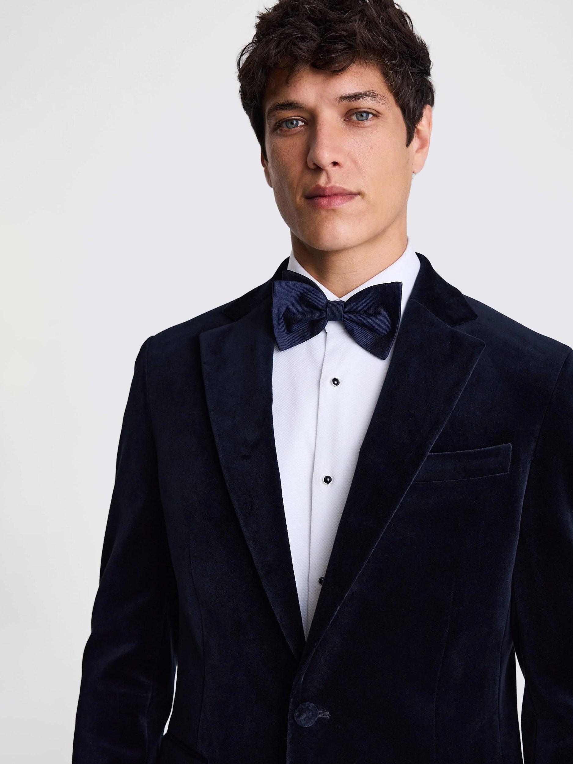 When black-tie calls, turn to this dress jacket's tailored fit and luxurious fabric. It's designed in soft-touch velvet made from 100% cotton for natural plushness with a matte finish and breathable feel. Covered buttons and flap pockets keep detail to a clean minimum.