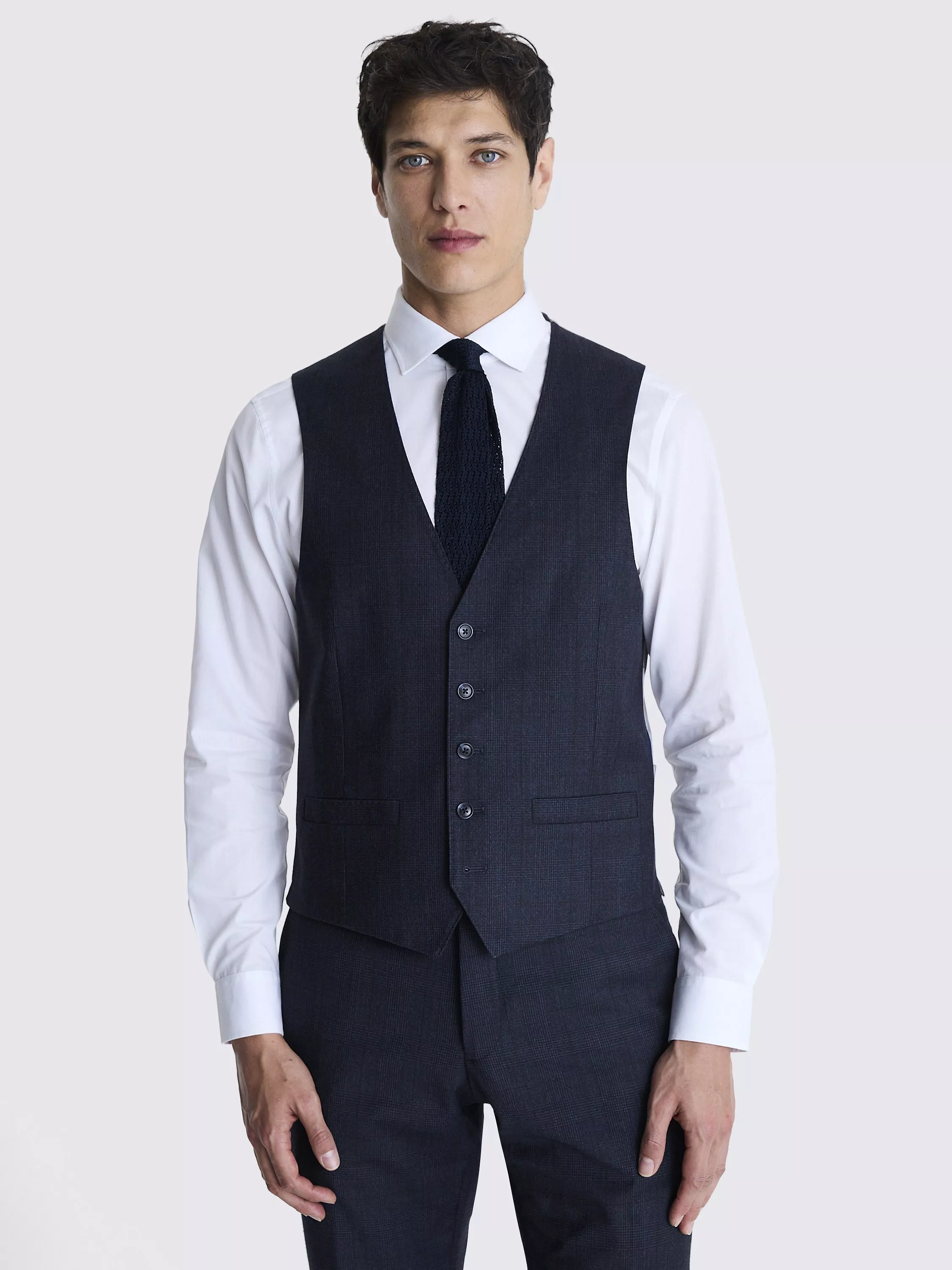 You're already putting in the hard work, so build up a wardrobe that complements it. Cut in Moss' Performance cloth for bounce-back sharpness that keeps creases under control, this navy tailored-fit waistcoat is patterned with a subtle check that pairs easily with a variety of looks. The wool-rich fabric also has water- and stain-repellent properties, so you'll look just as sharp at the end of proceedings as you did when things kicked off. Perfect for long days at the office, important meetings or special occasions that run on into the early hours.