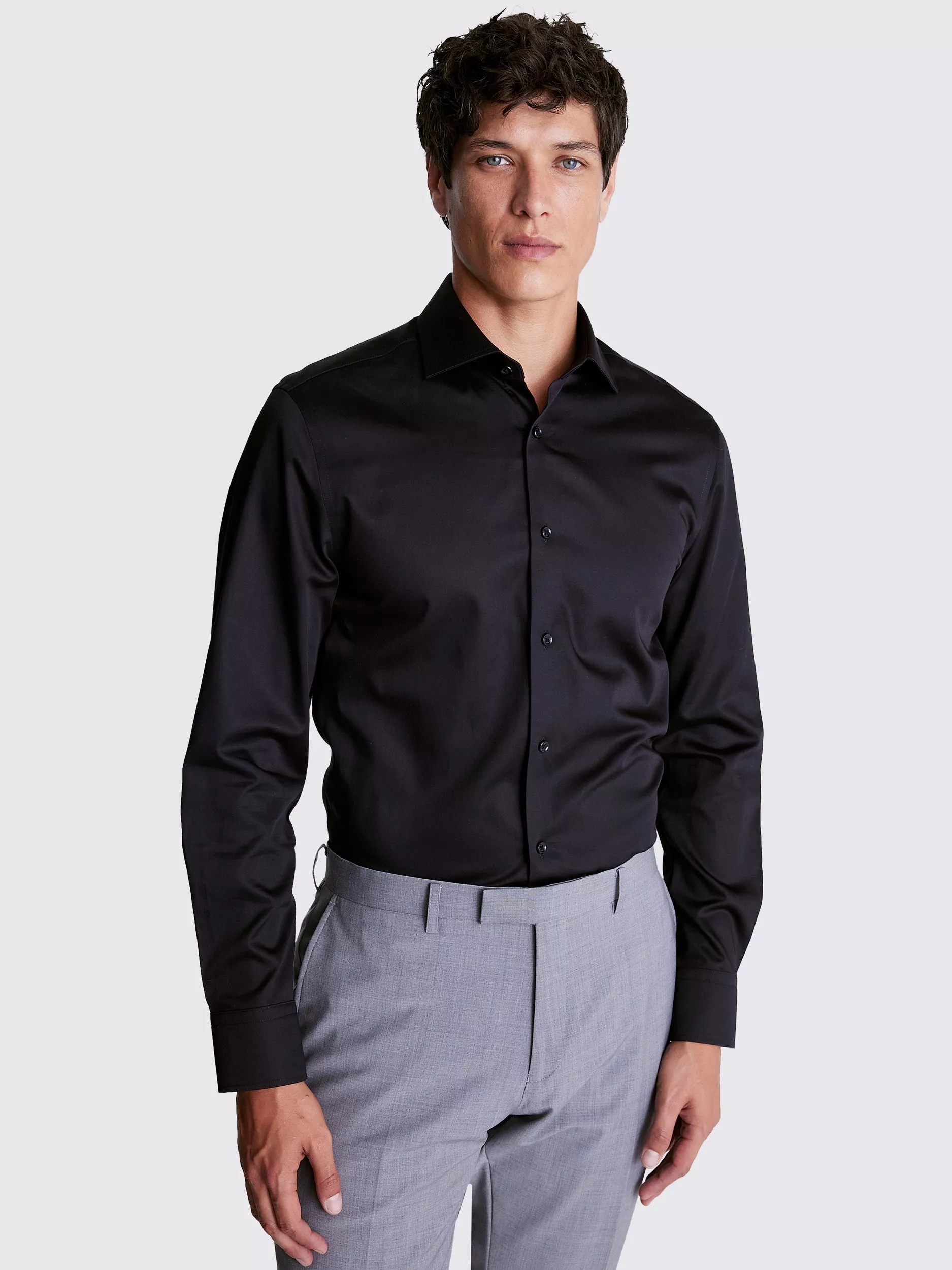 With a sateen finish that's a step up from more muted weaves, this long-sleeved shirt is one you'll turn to for plenty of special events. It's cut to a tailored fit in cotton for a soft, breathable feel.