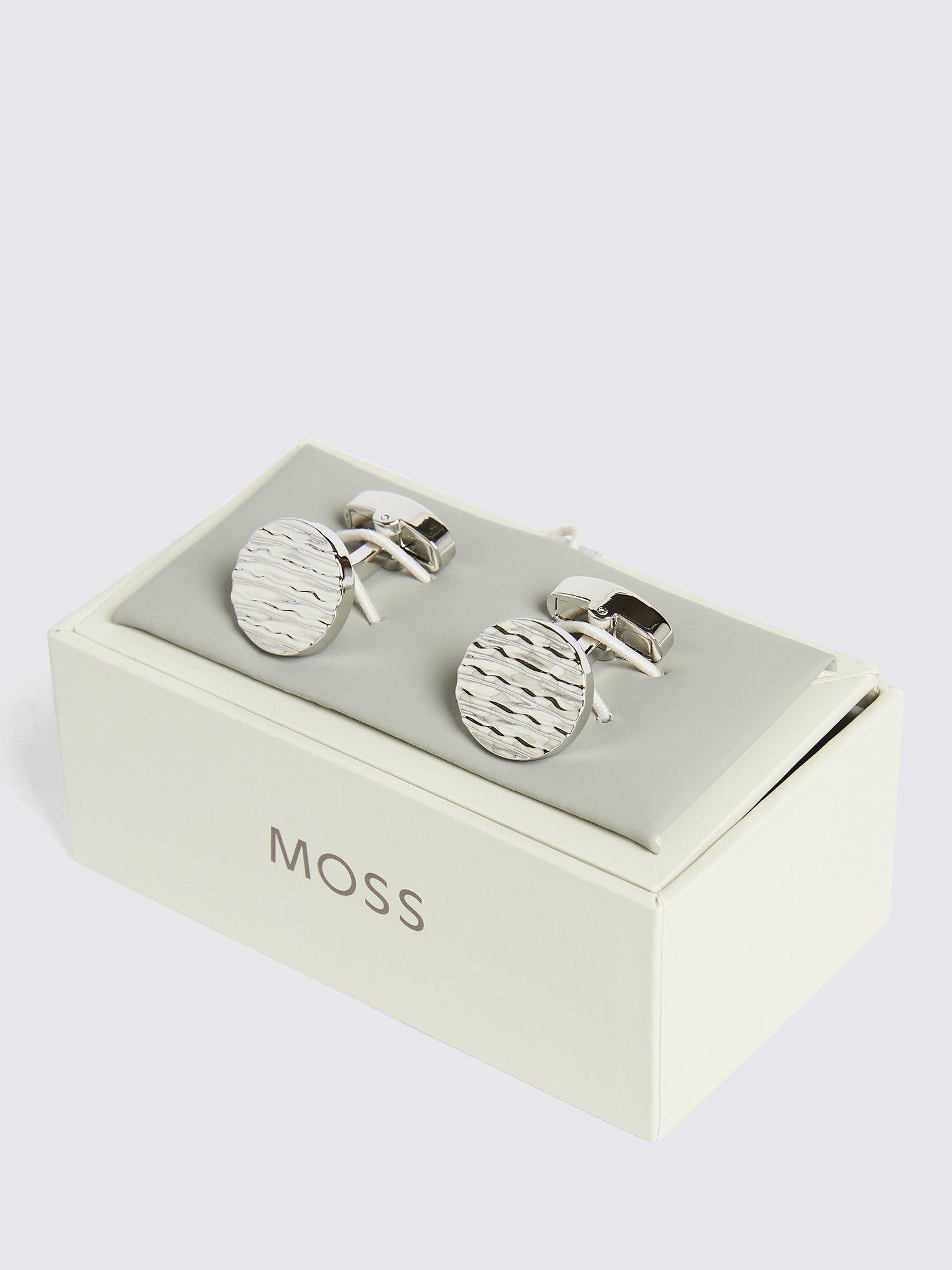 MossTextured Round Cufflinks, Silver
