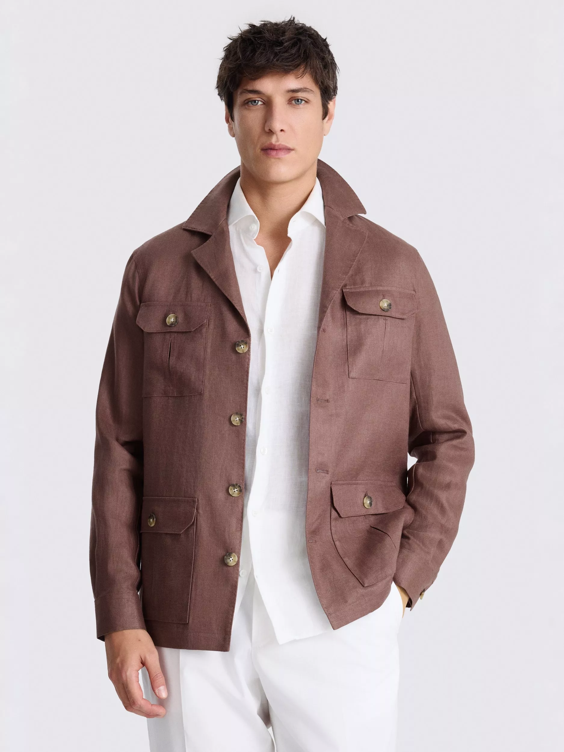 Ideal for layering as we head towards spring/summer, this shacket has a key taupe colour in 100% linen.The result is a fresh style that offers lightweight, breathable comfort that's a must-have in warmer conditions.