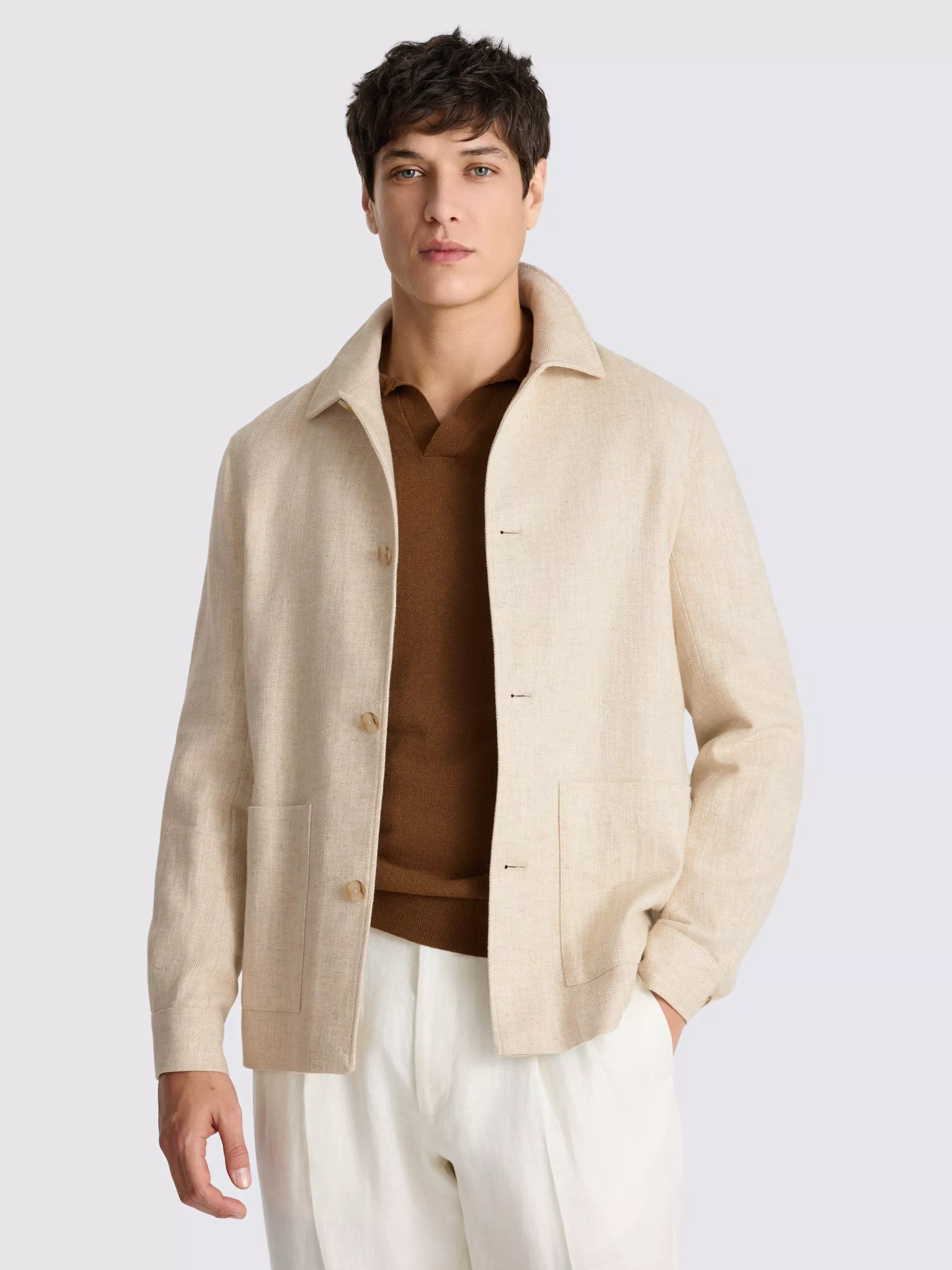 Ideal for layering as we head towards spring/summer, this shacket has a key taupe colour in 100% linen.The result is a fresh style that offers lightweight, breathable comfort that's a must-have in warmer conditions.