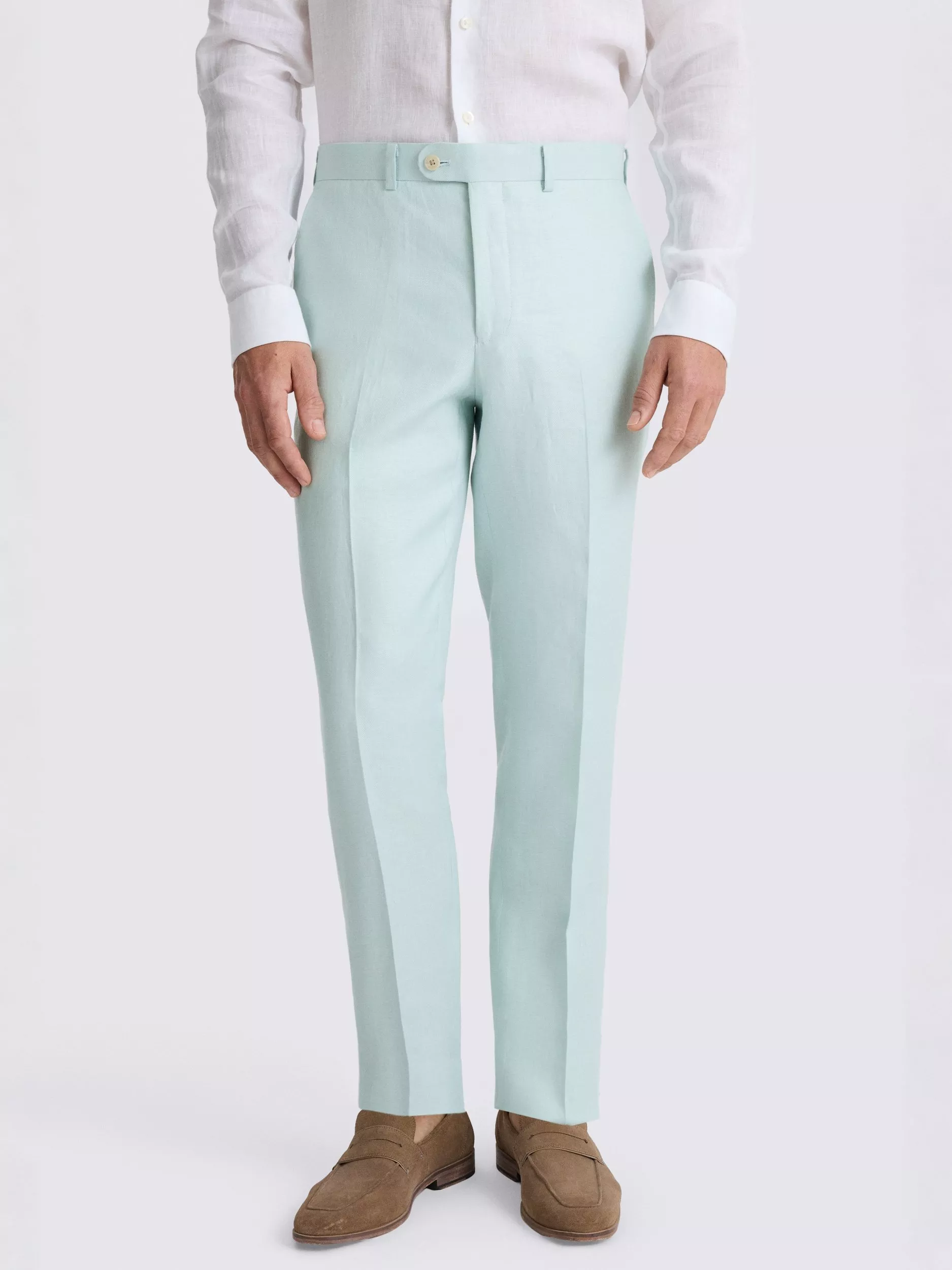 Tailored Fit Aqua Twill Linen Trousers.