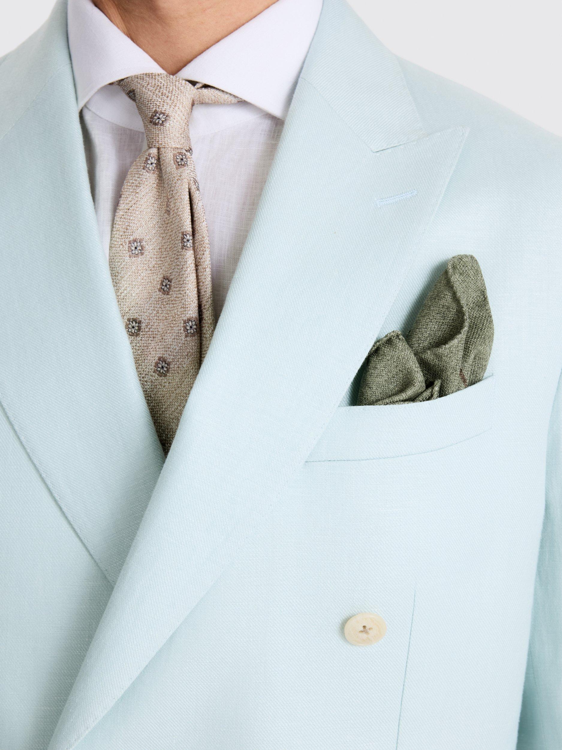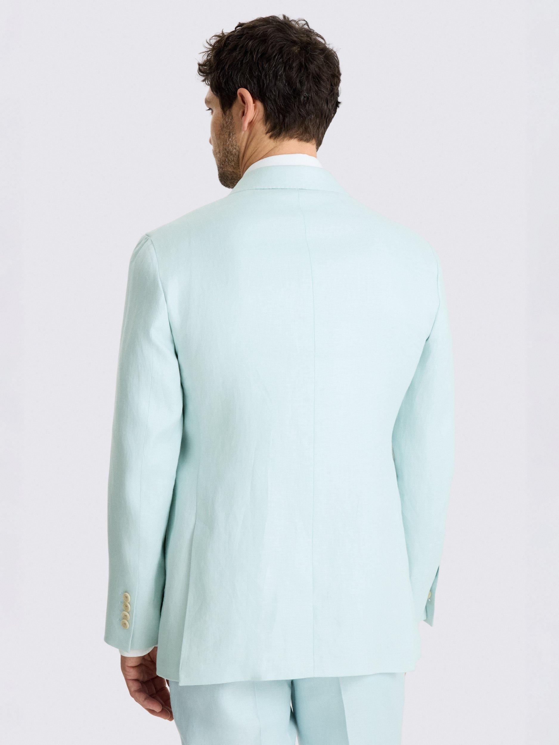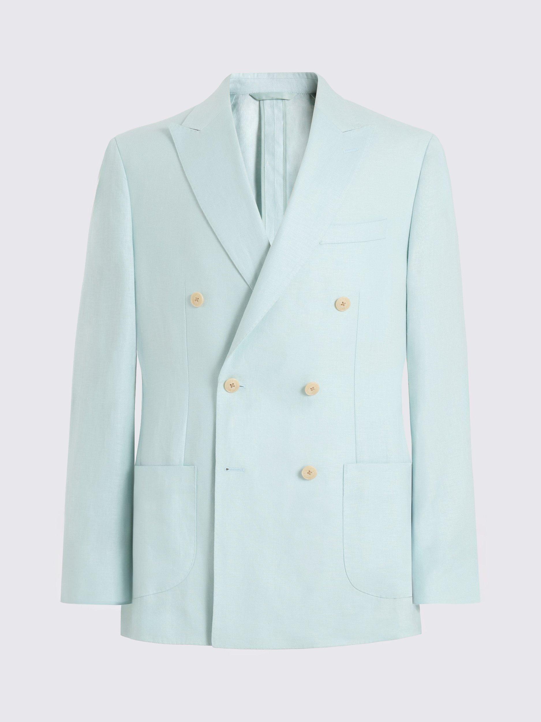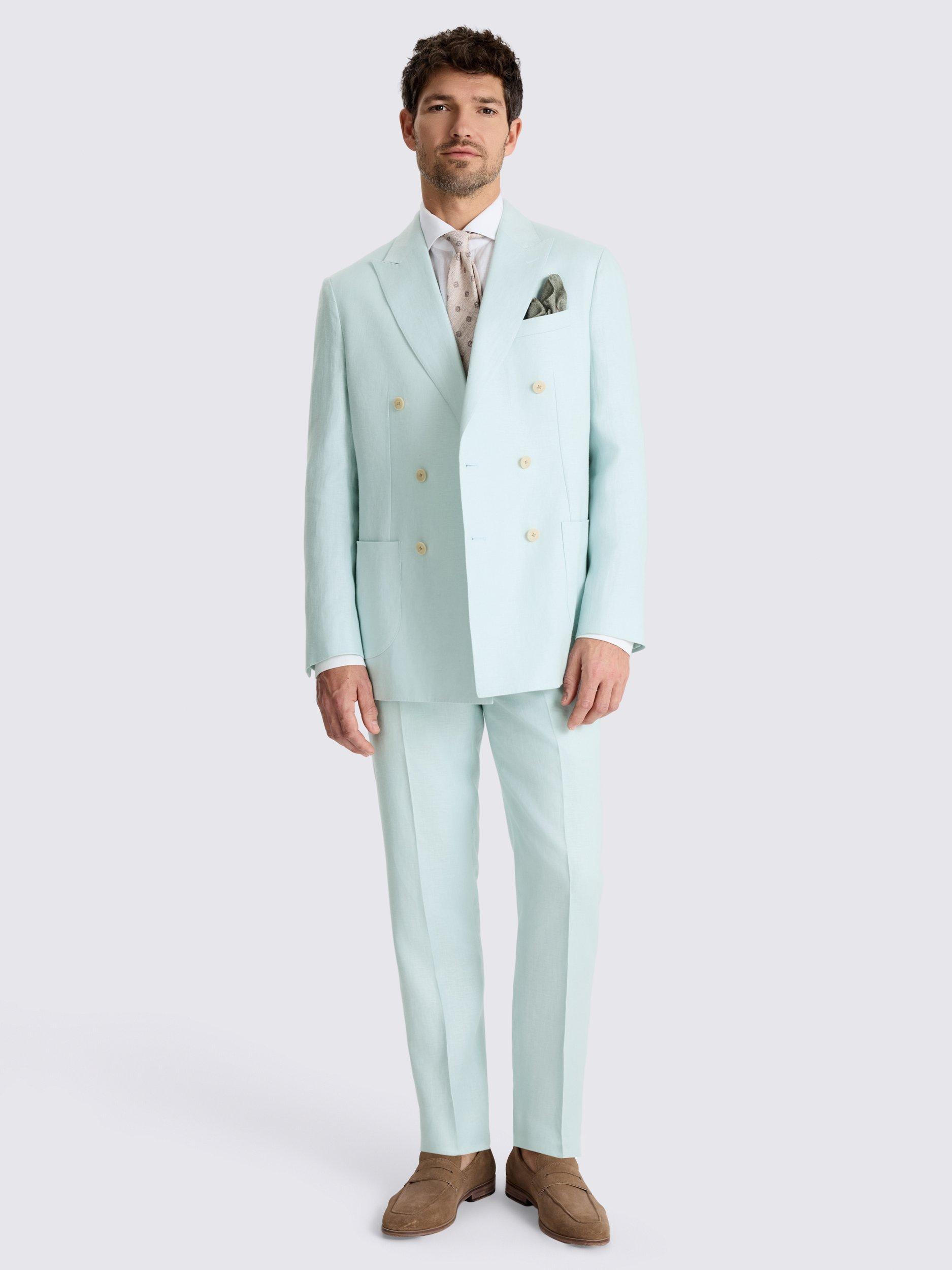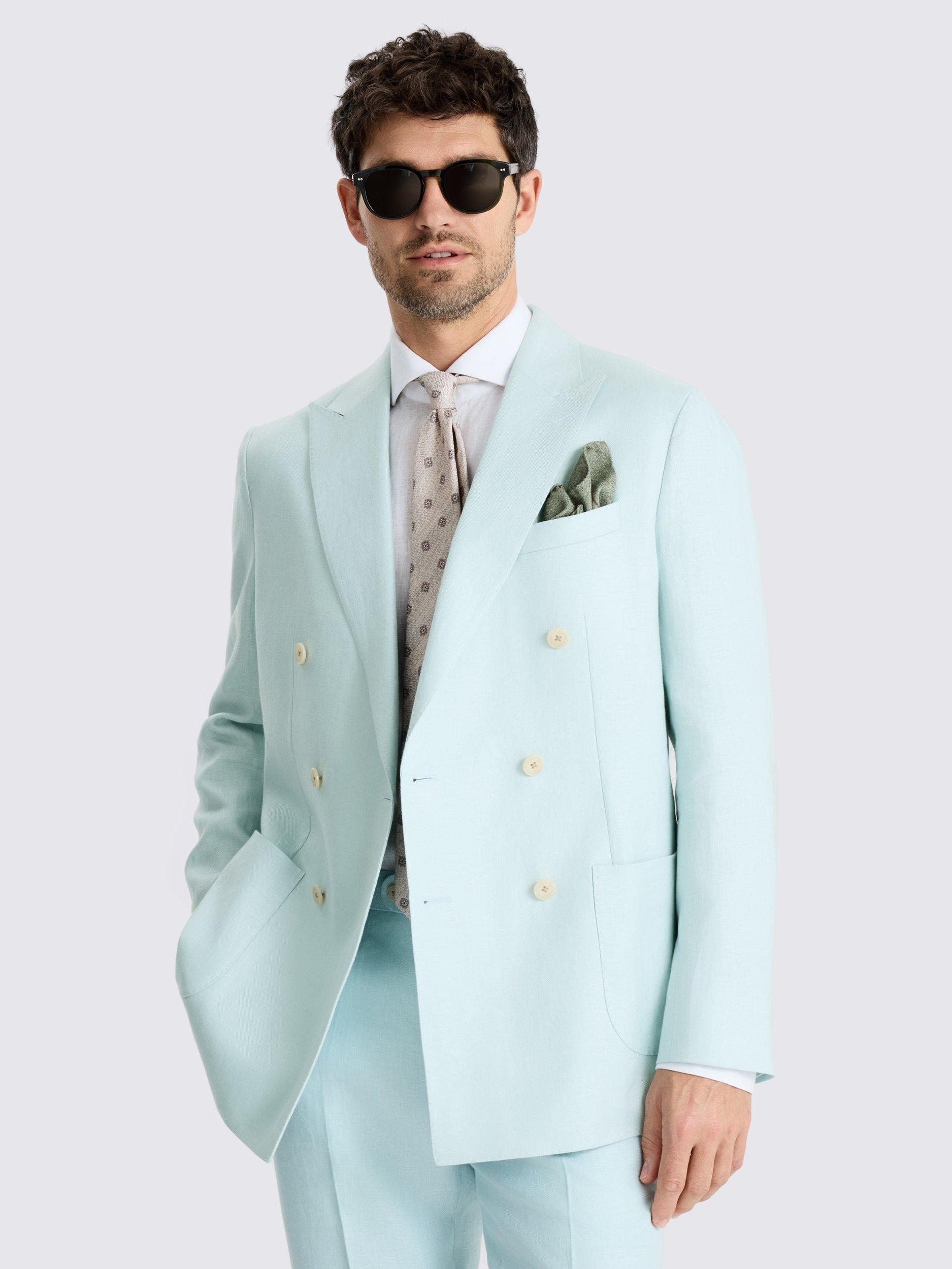 If you're after something to colour up your summer selection, this double-breasted tailored-fit jacket is just the thing. It's cut in 100% linen for breathable, lightweight comfort, while the aqua twill brightens your warm-weather formal looks.