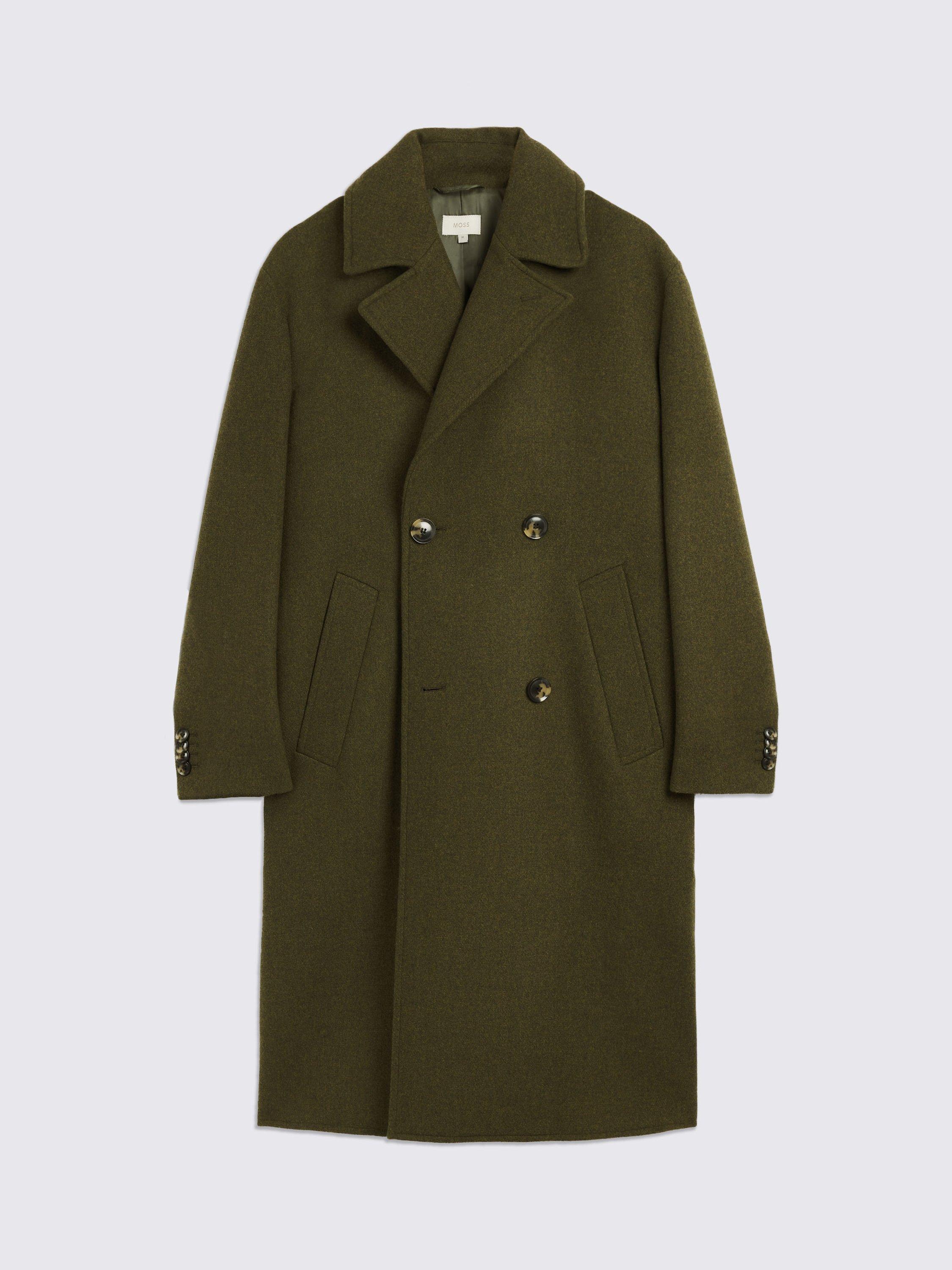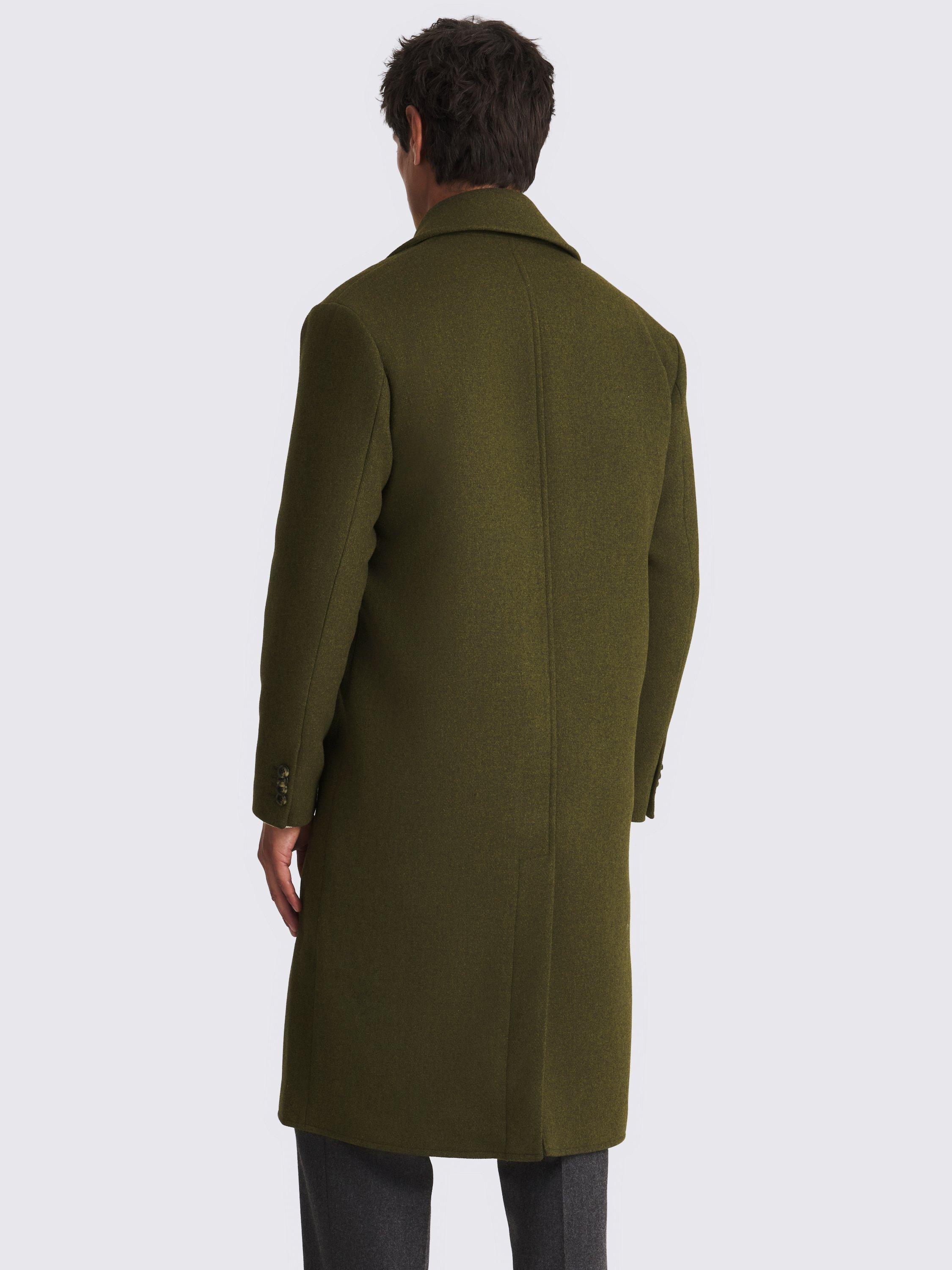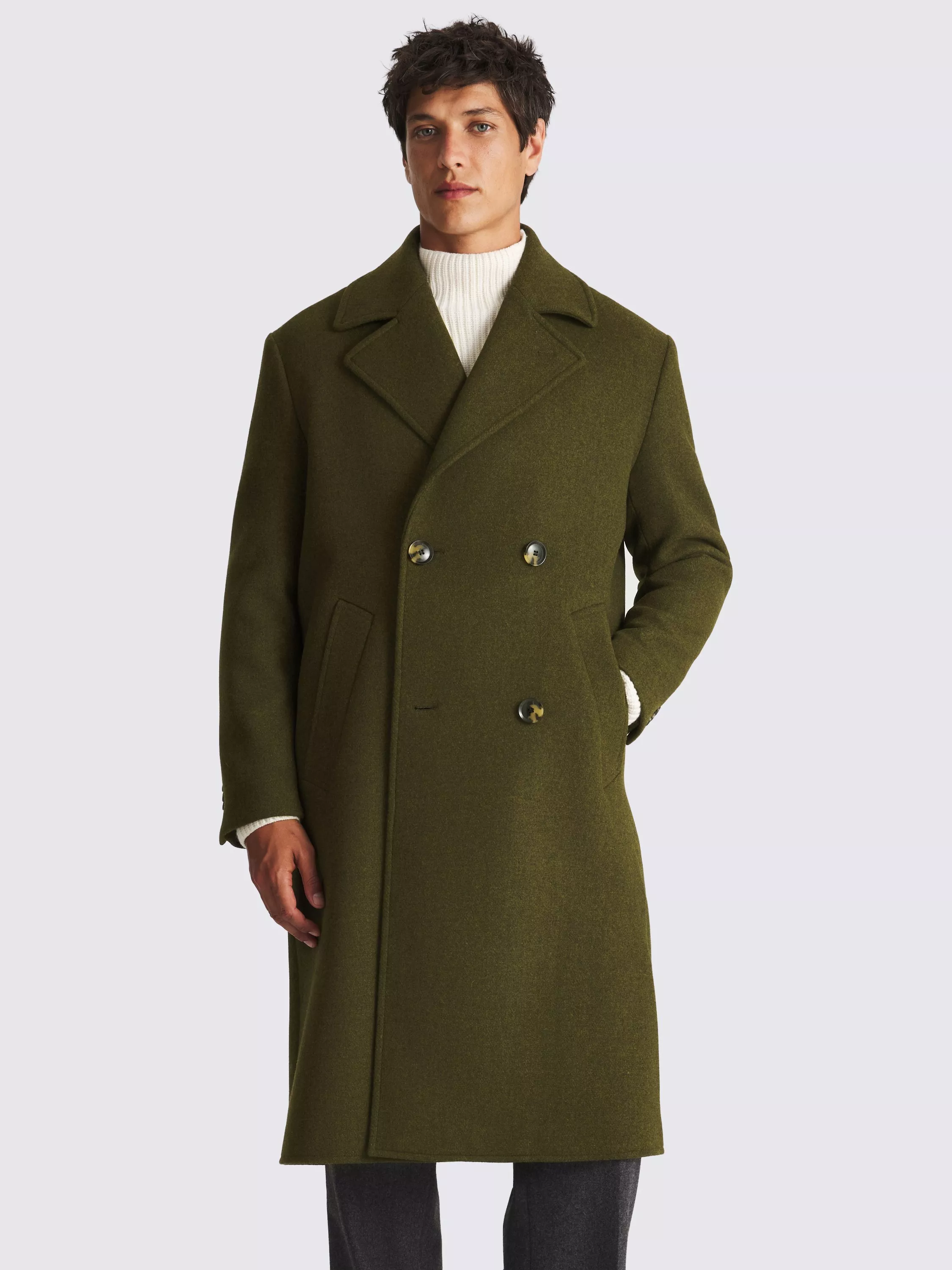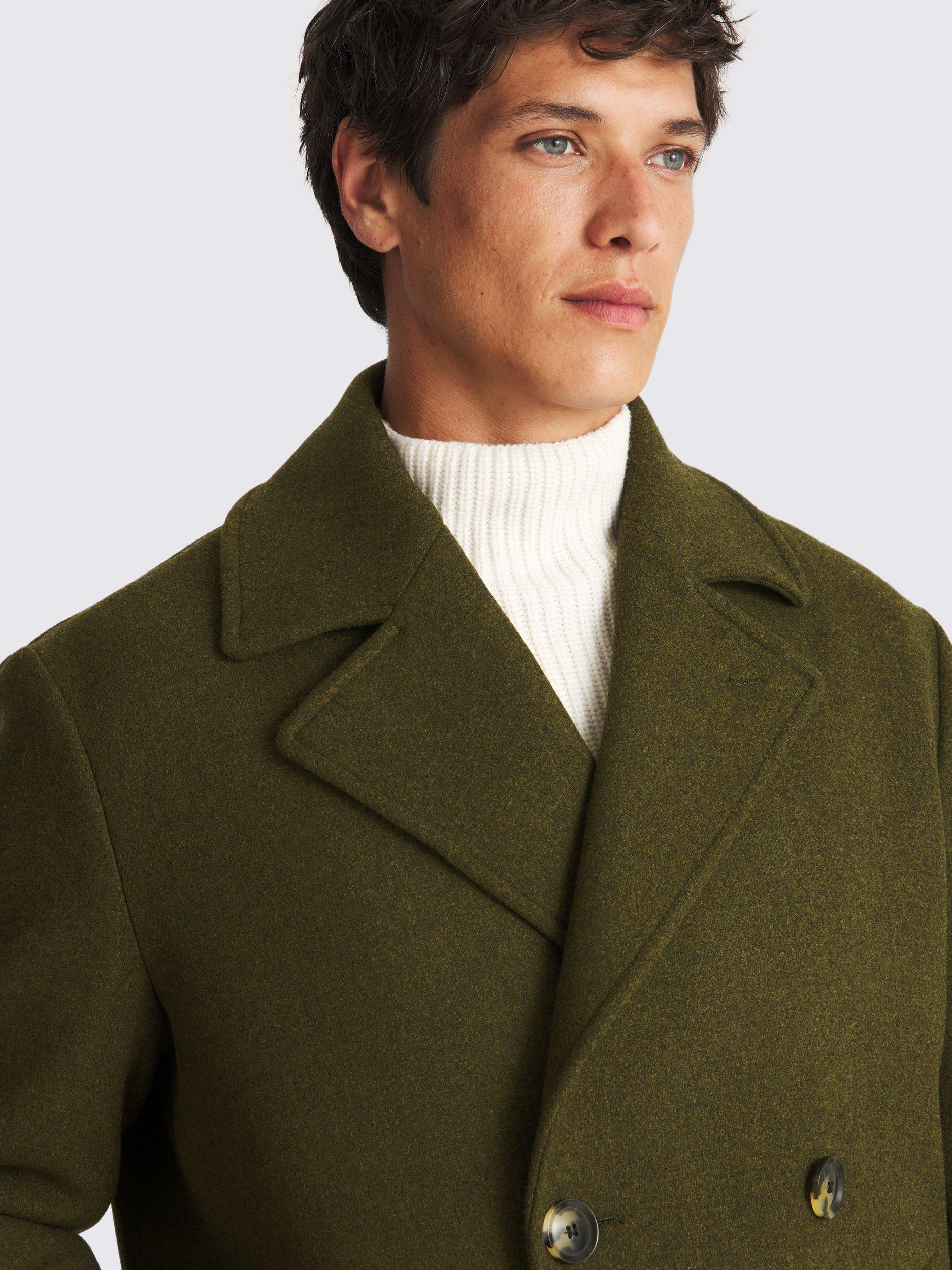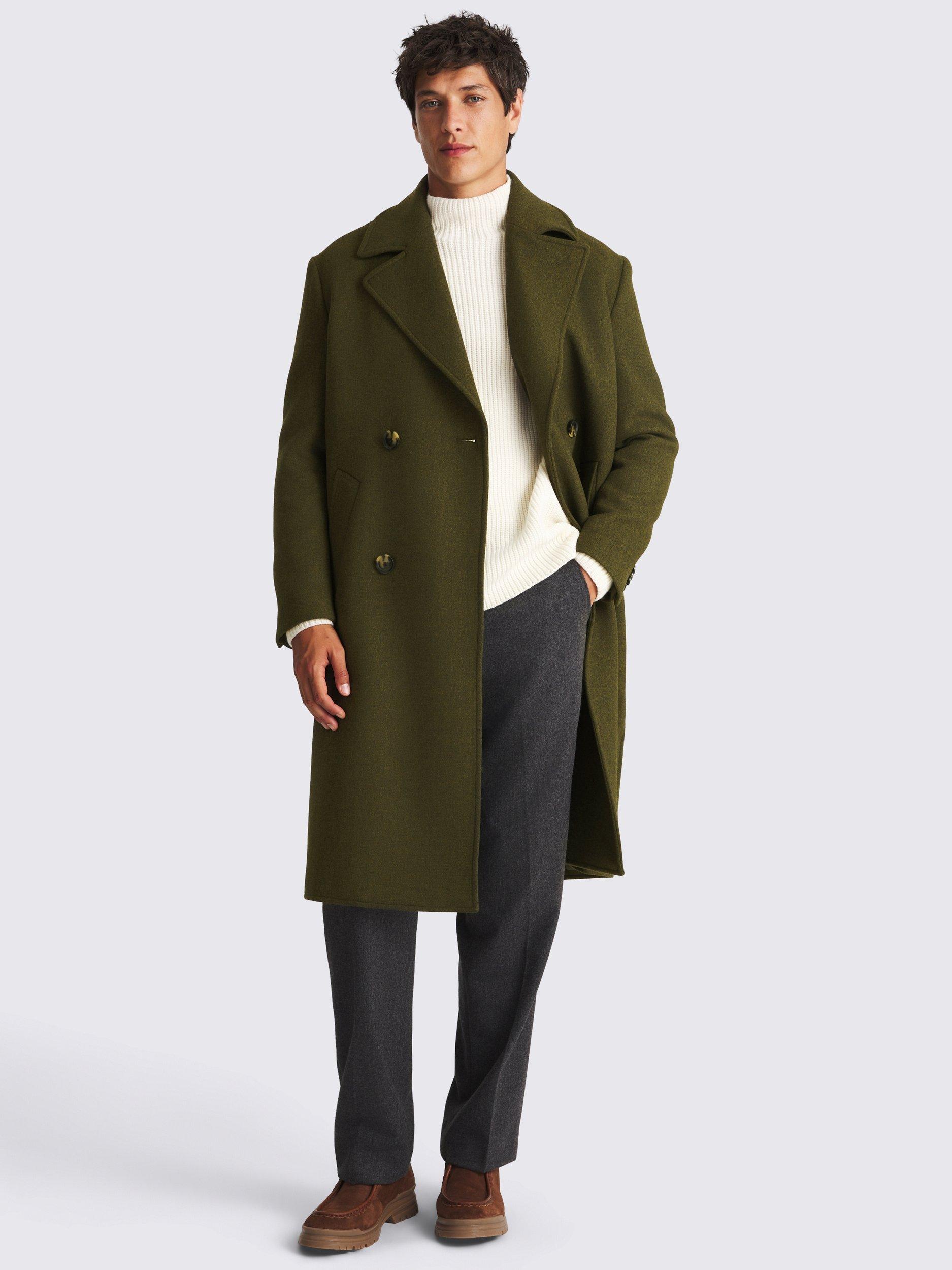 Ideal for wintry morning commutes and evenings out in transitional weather, this long green coat will layer easily over any look. Crafted in a soft, breathable blend of wool and cotton, adding patterned buttons to the double-breasted closure for classic detail.
