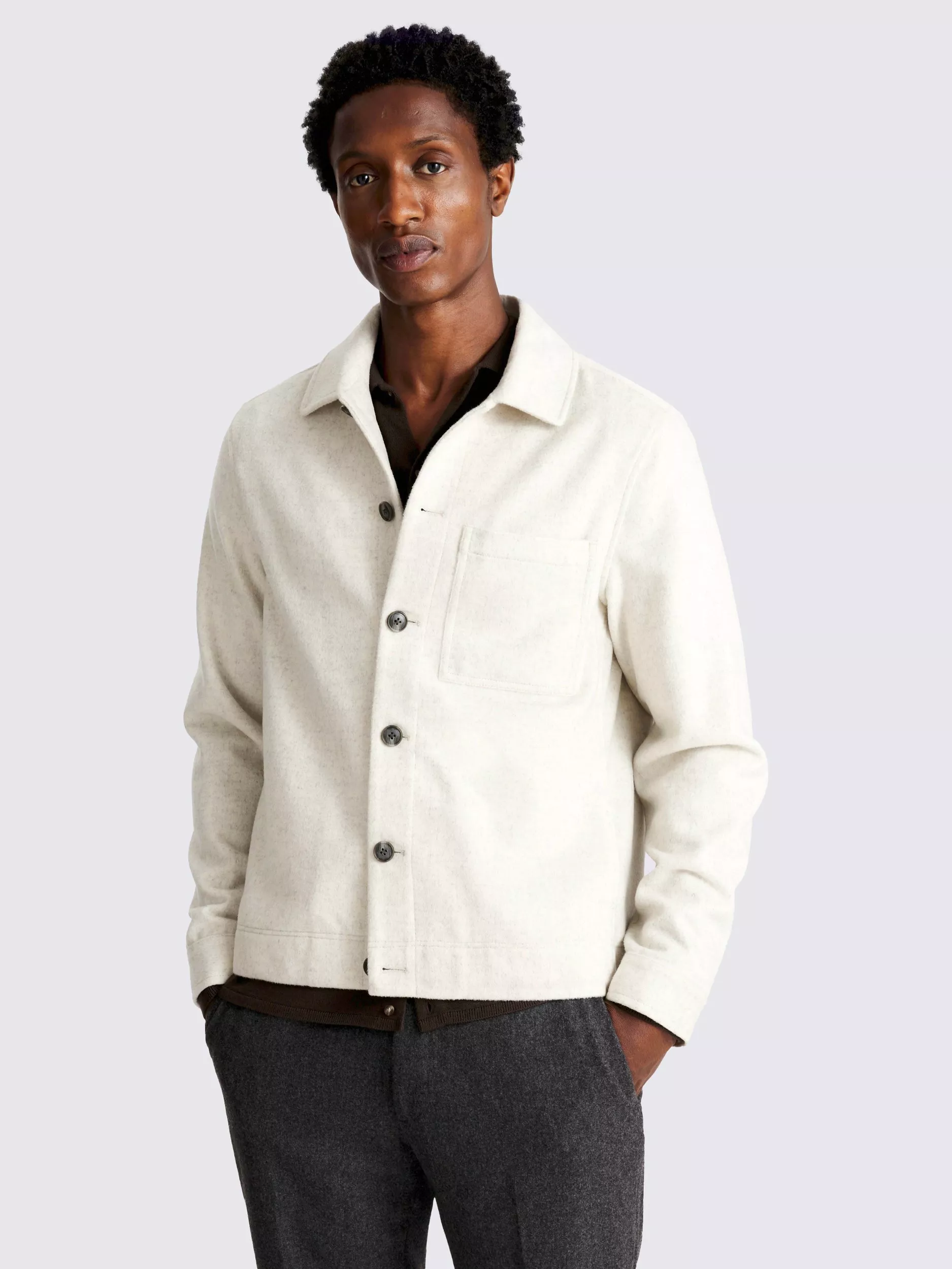 Trimmed with patterned buttons, this overshirt is a layer you can style up for work or pare back at the weekend. The wool blend is soft and breathable, while a subtle melange finish makes it easy to pair with your everyday favourites.