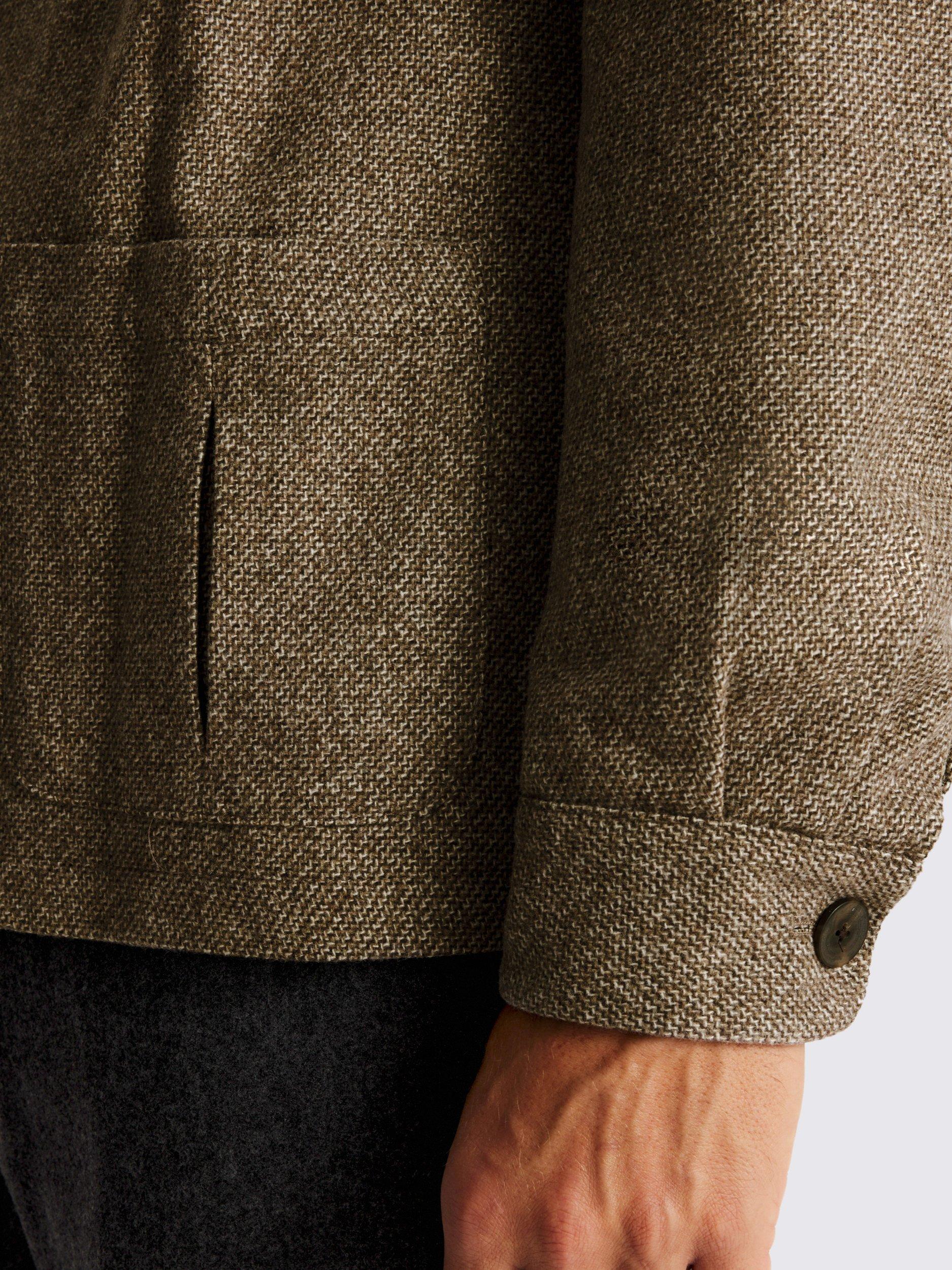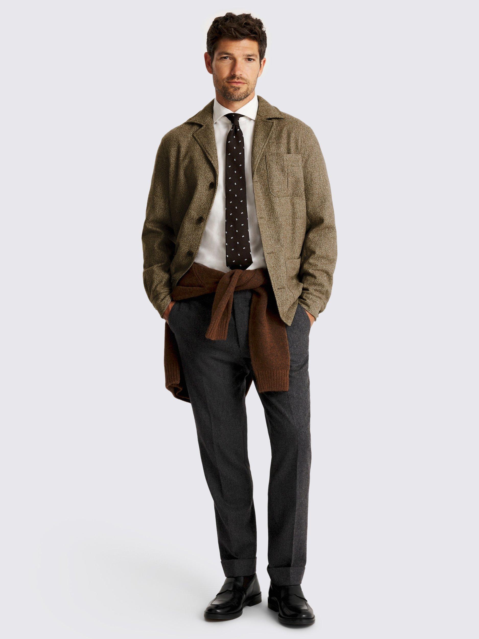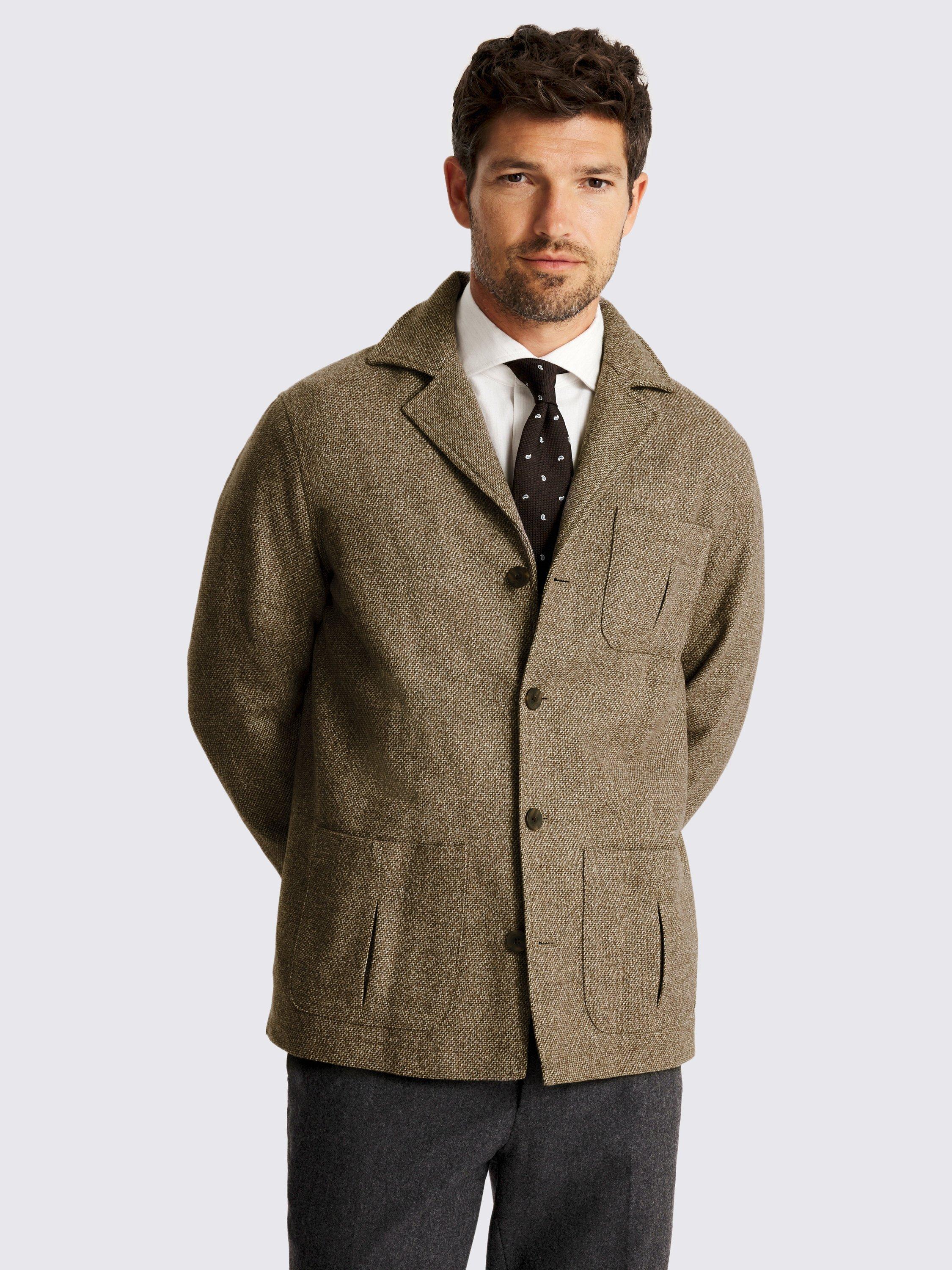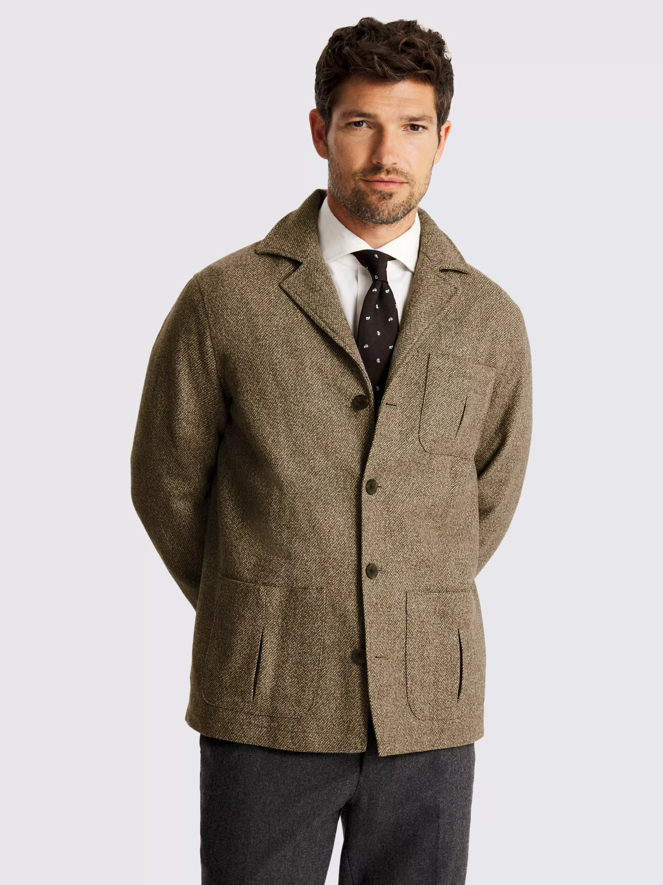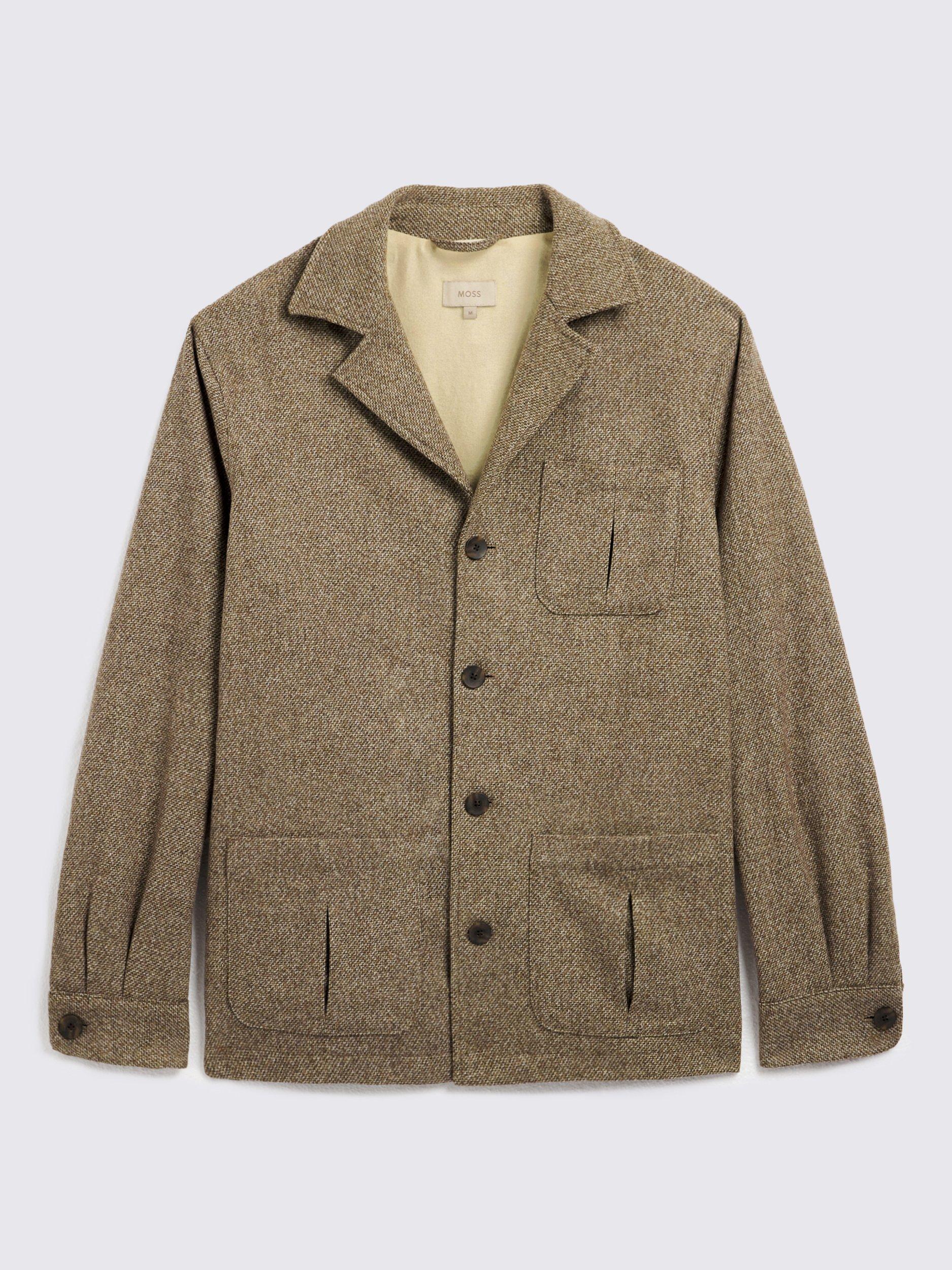 Crafted in a wool blend with a taupe tone, this safari shacket has a textured effect that adds plenty of character to your look. Lined with cotton for comfy layering over short sleeves, featuring pleated pockets for attention to detail.