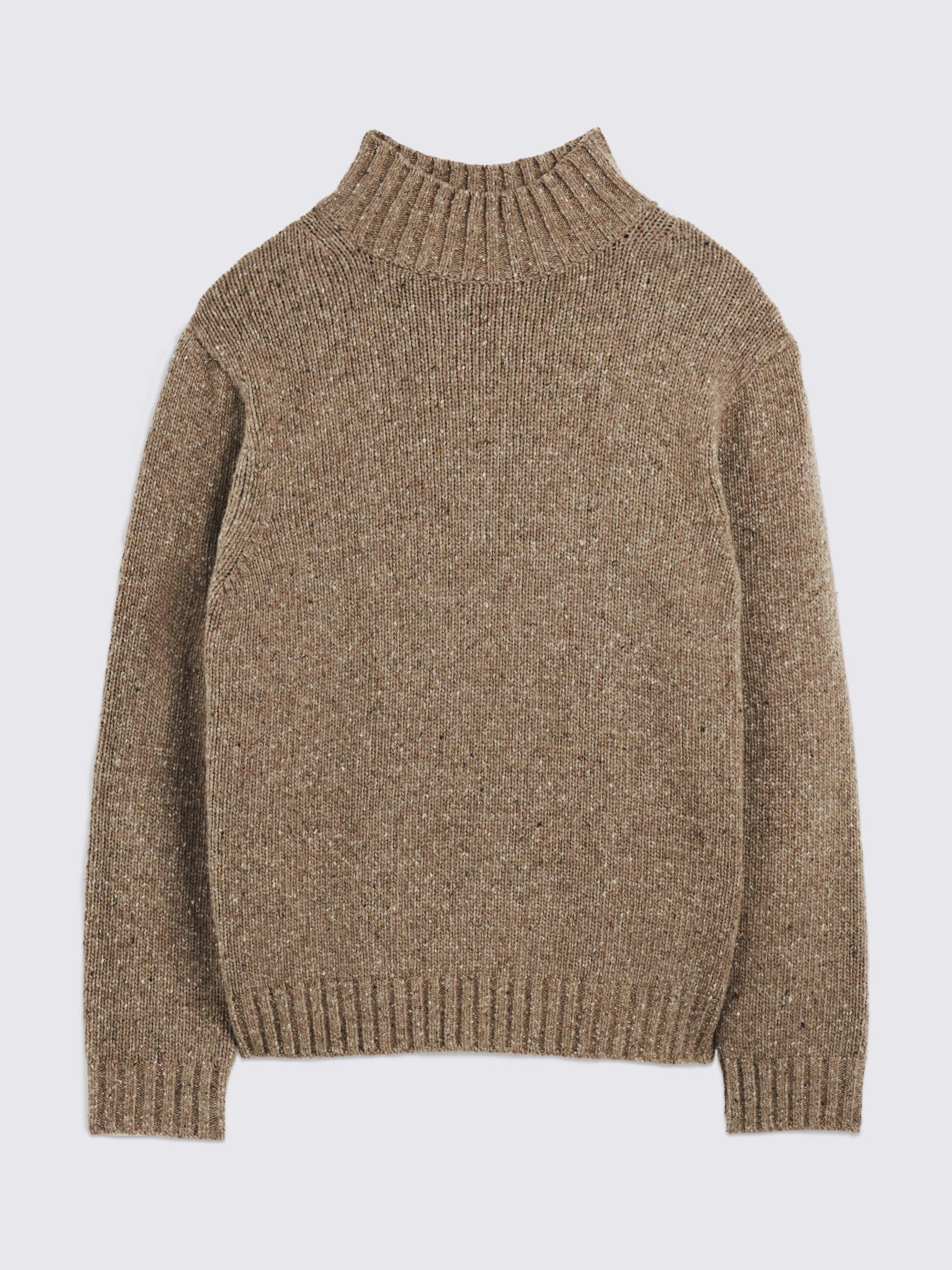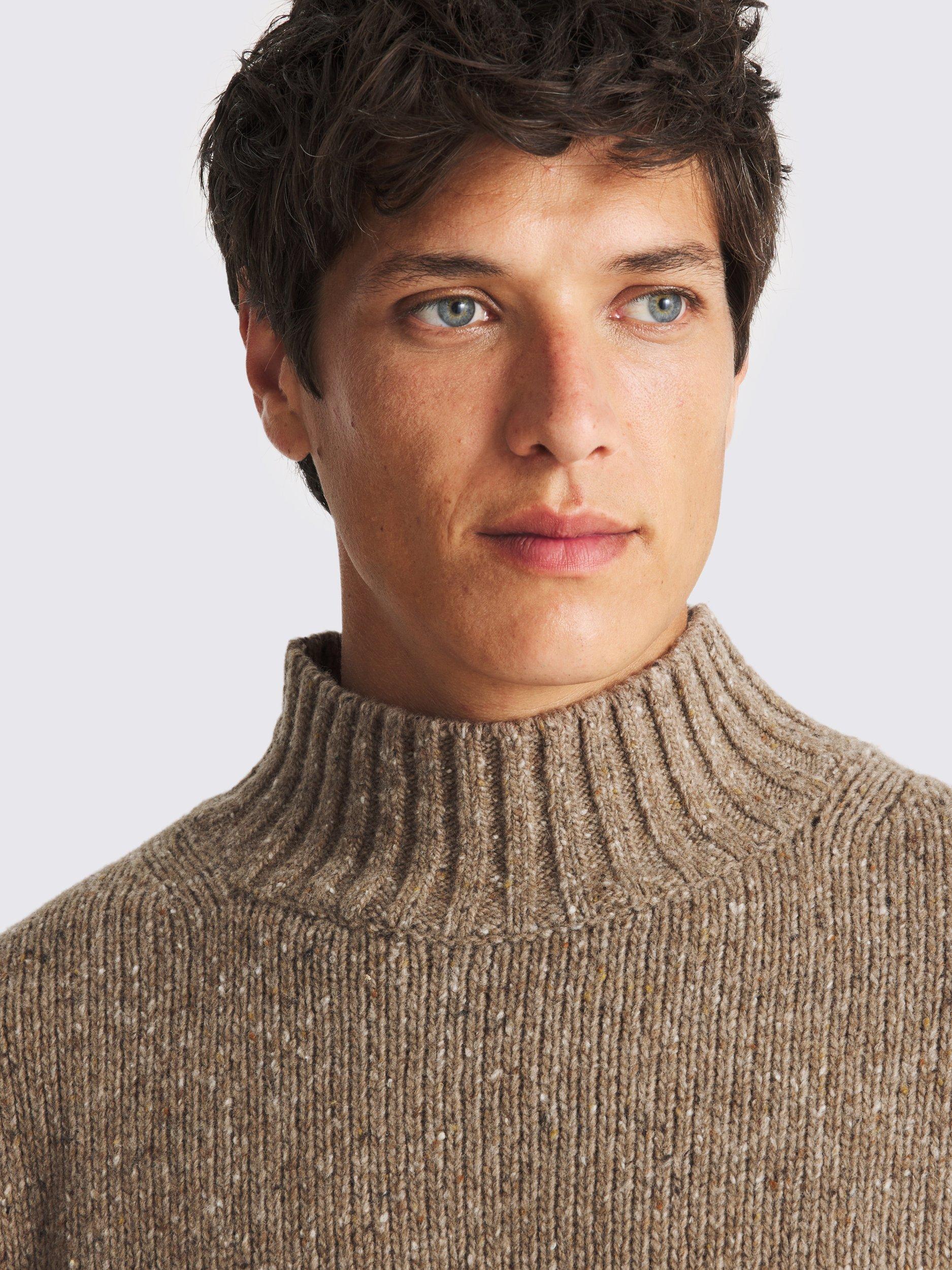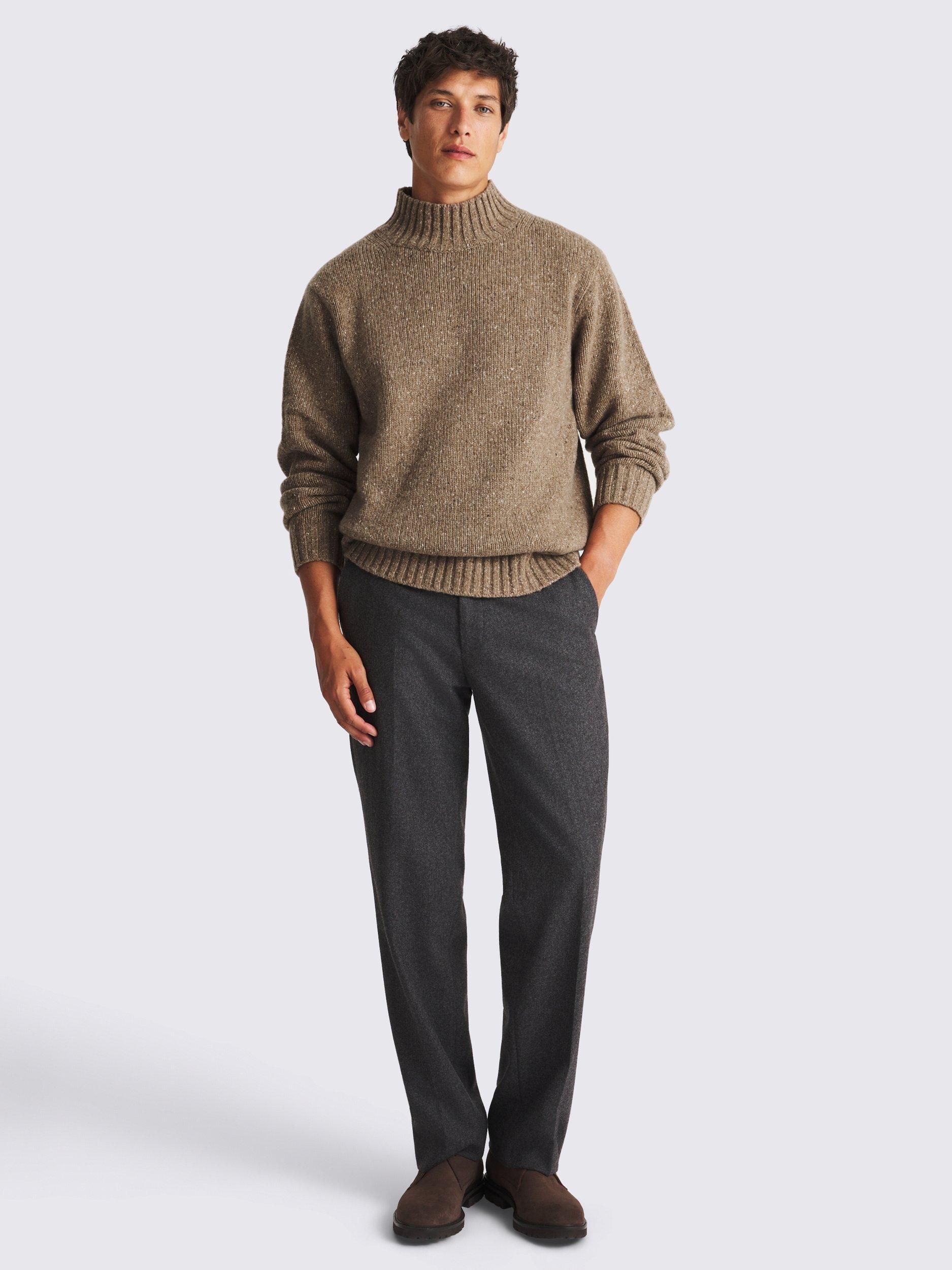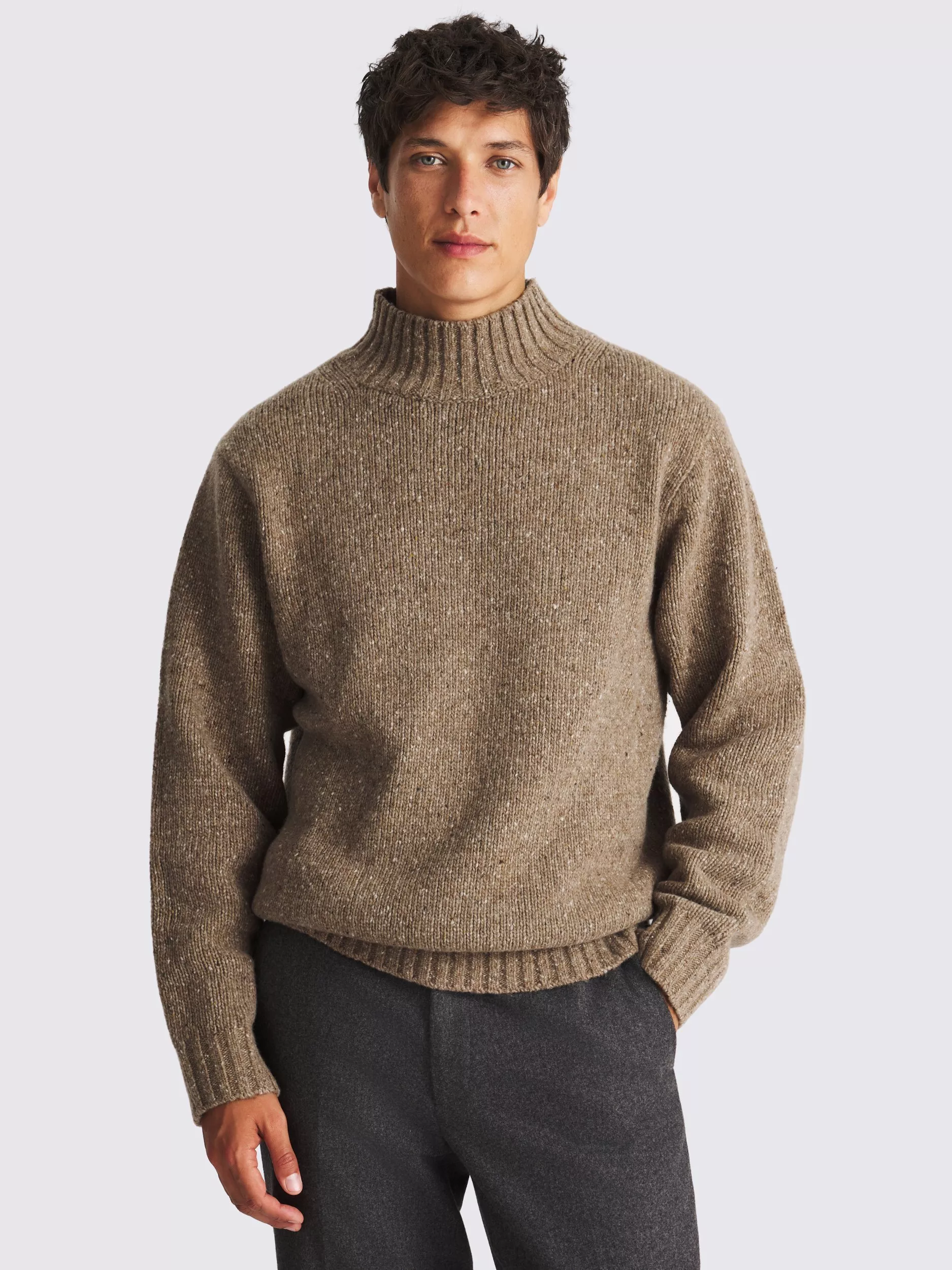 Update your cold-weather layering with the wool-rich knit of this jumper. The light-brown yarns have characterful speckles, while the mock neckline delivers a more modern profile.
