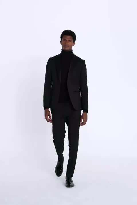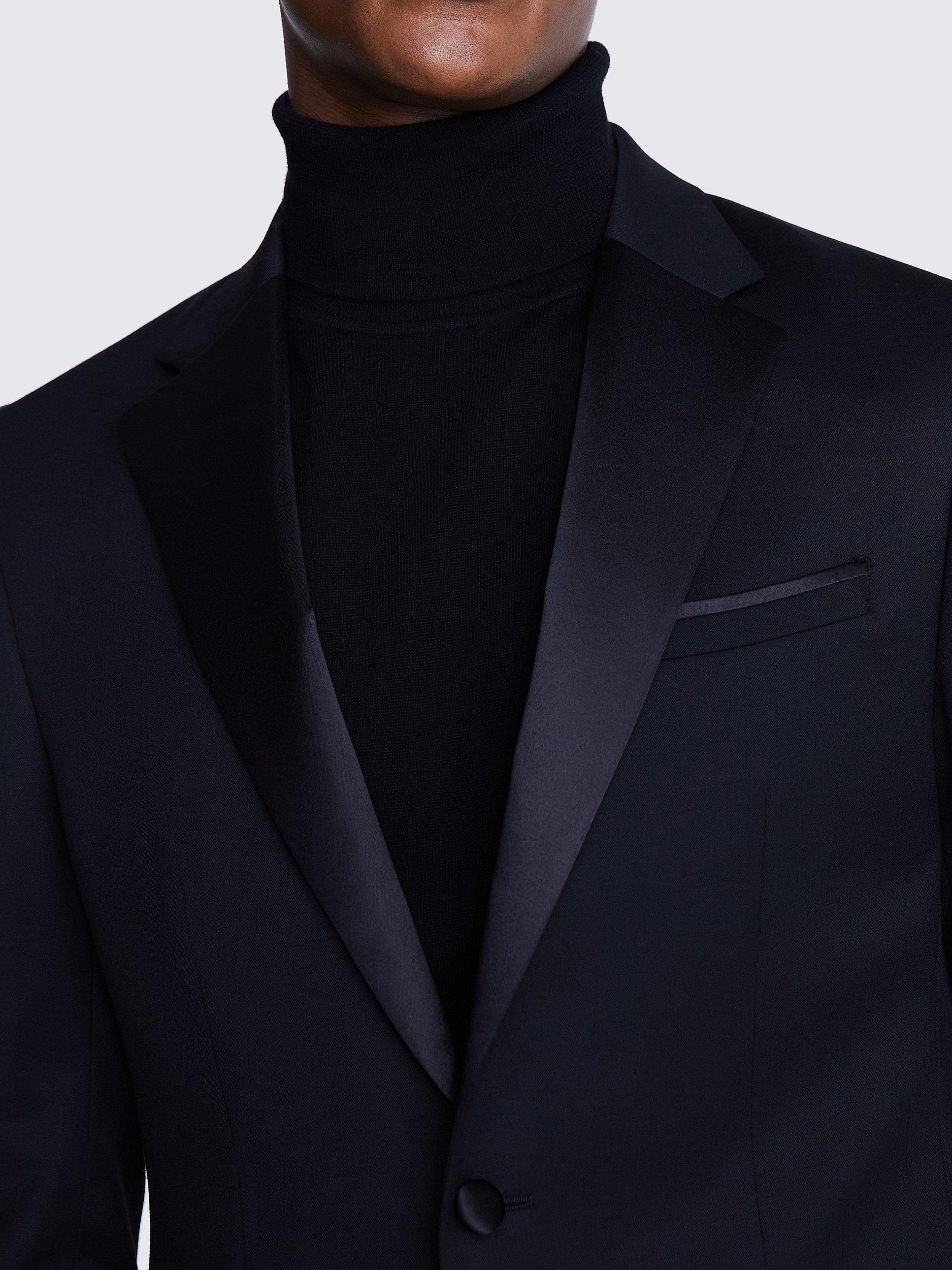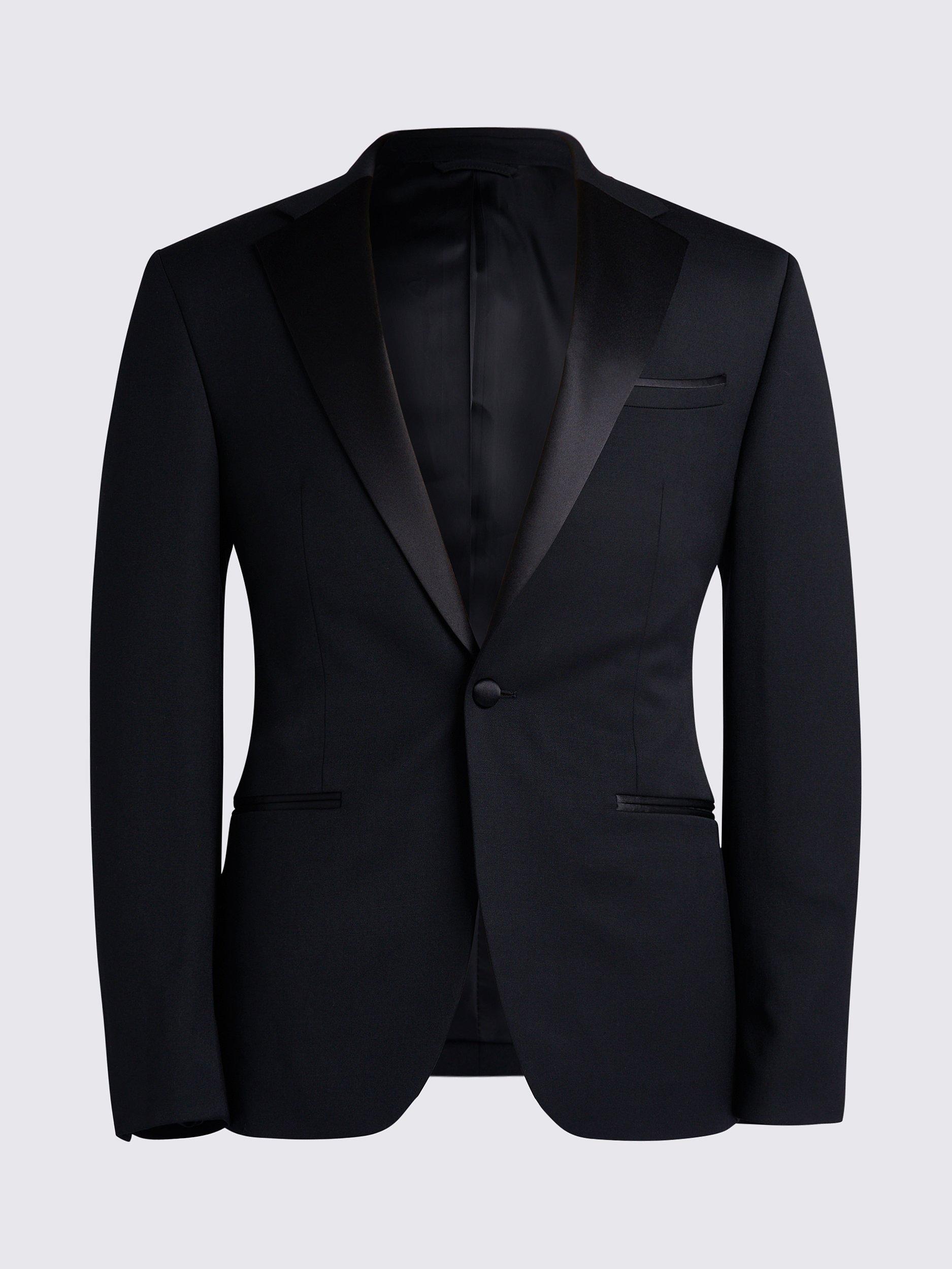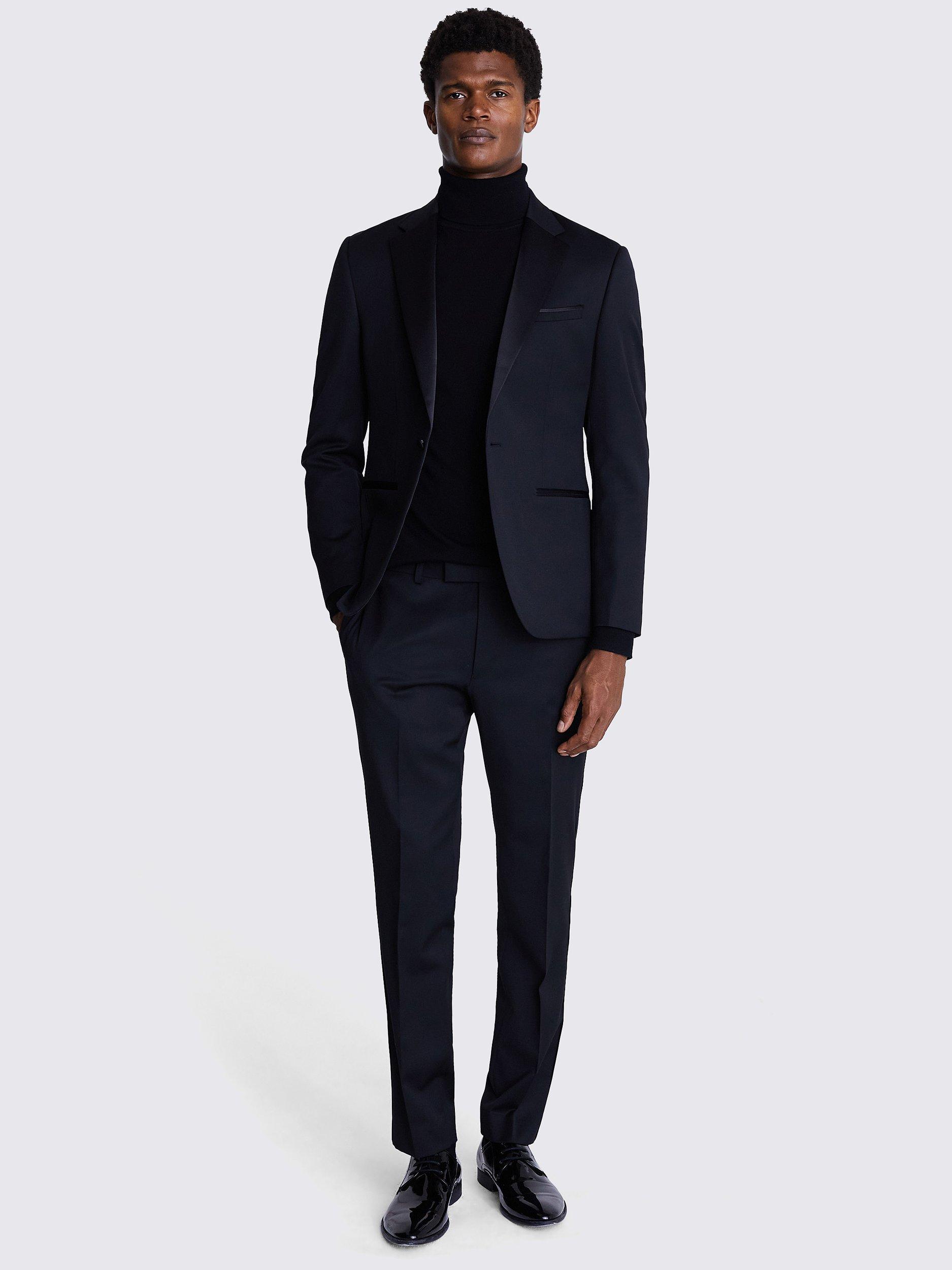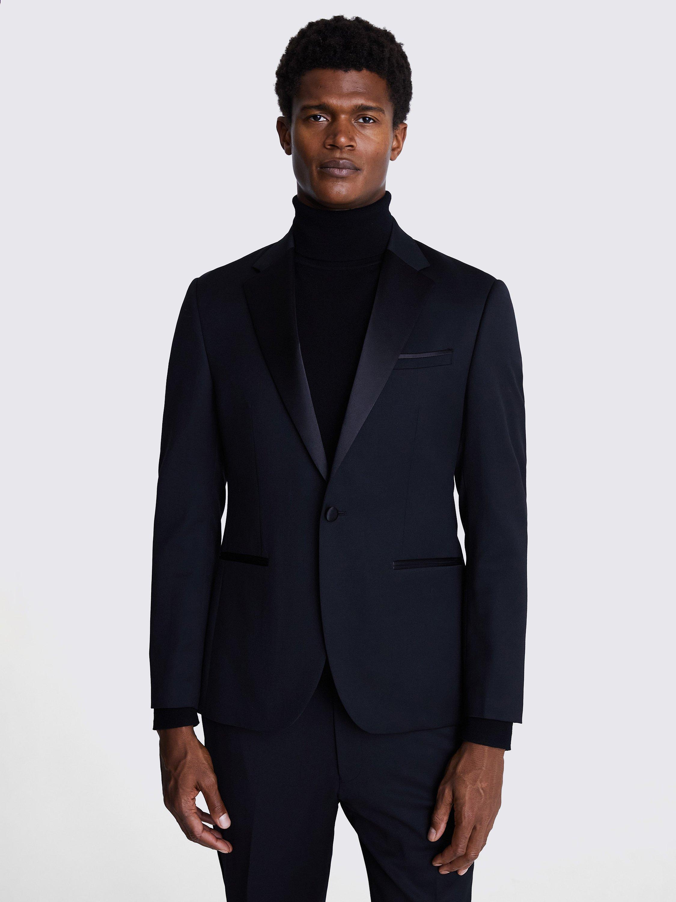 Featuring jetted pockets and silken lapels, DKNY's suit is a solid choice for black-tie commitments. It's crafted in a black stretch blend that's rich in wool and has a slim fit that sits close to your frame for sharp lines.