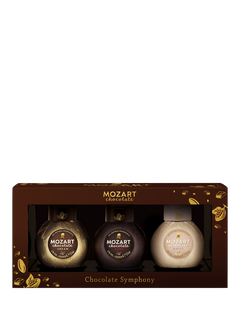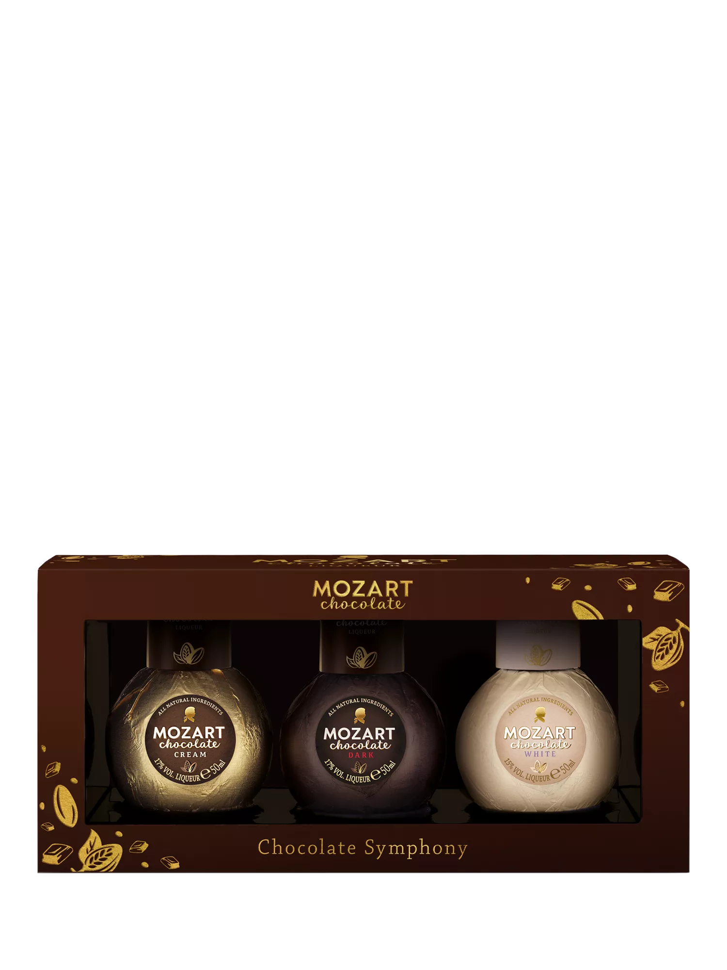This set includes three miniature bottles of tasty chocolate liqueurs, including: Mozart Chocolate Cream Liqueur, 5cl. Mozart White Chocolate Cream Liqueur, 5cl and Mozart Dark Chocolate Liqueur, 5cl.