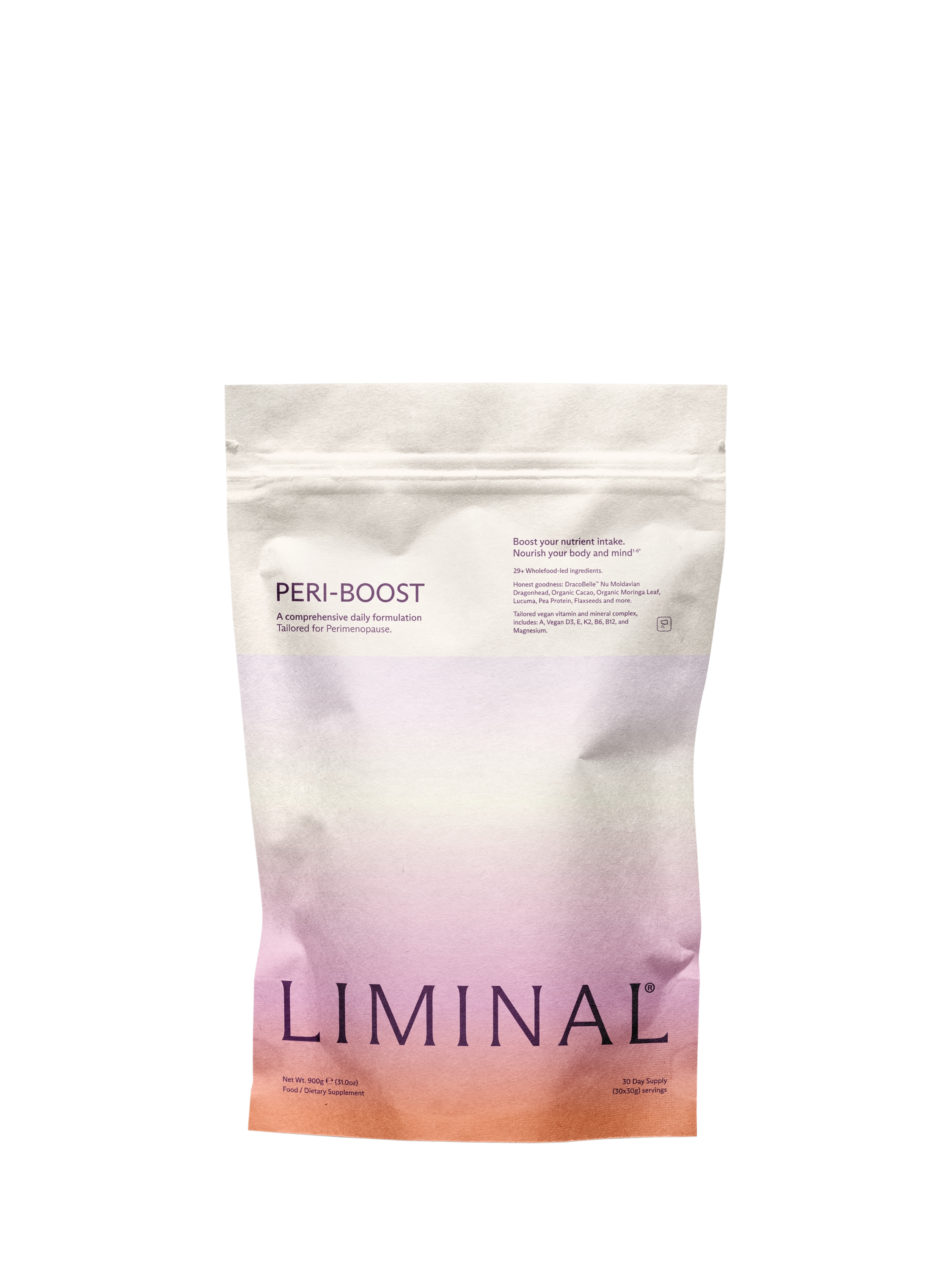 PERI-BOOST Bio-Stage No.1 is a daily powder supplement uniquely designed to support your body as you start to experience symptoms of perimenopause. The period of time leading up to menopause is when our hormones fluctuate the most. You're probably 43+ and have had a cycle in the last 2-11 months. Blended to help you peri-well, PERI-BOOST Bio-Stage No.1 supports the most common symptoms experienced in perimenopause, including Hormone imbalance, Fatigue, Bone density, Skin elasticity, Bloating, Sleep.