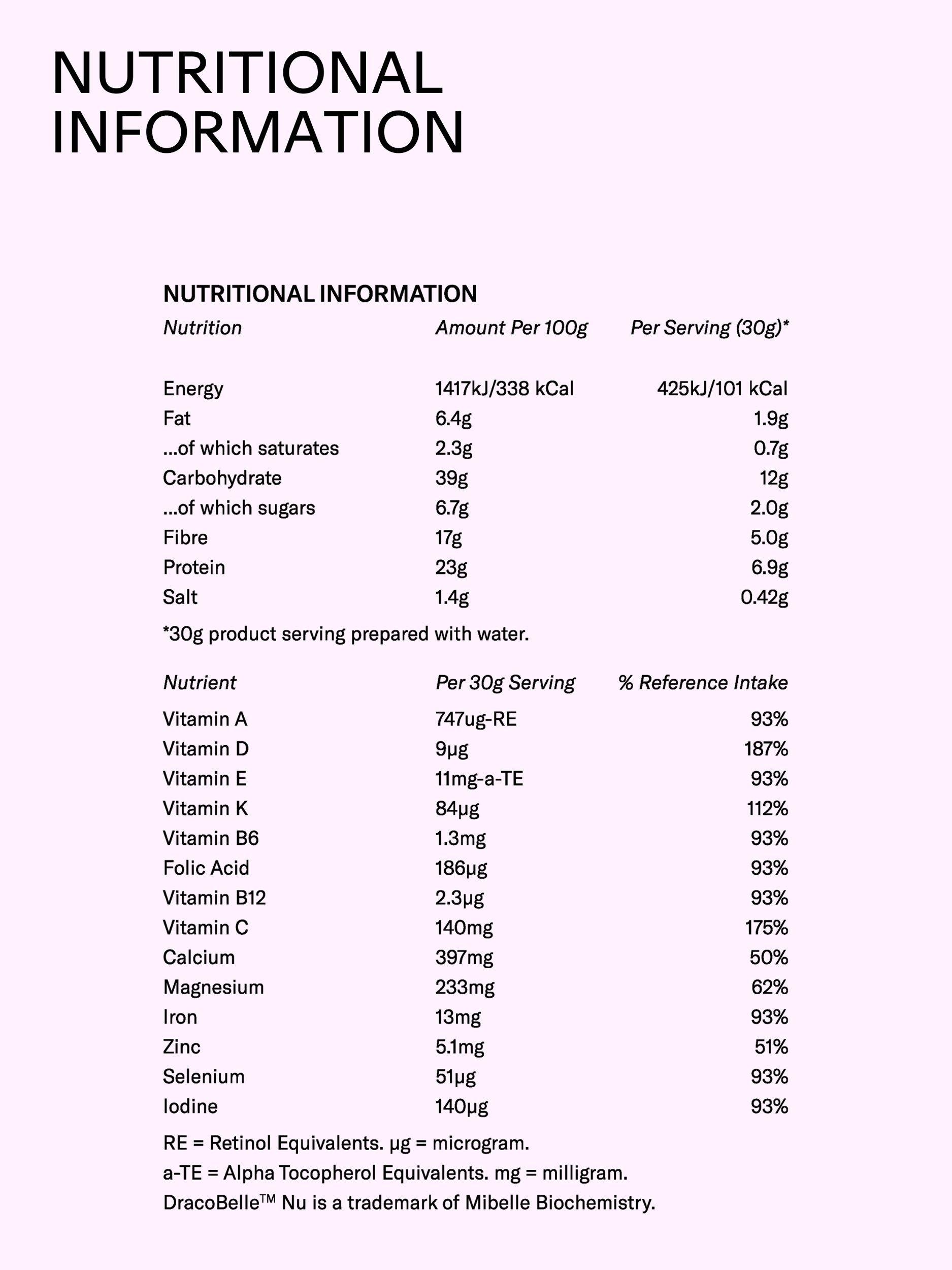 Skin is often the first visible sign of change as our bodies transition through perimenopause, and Dracobelle Nu, the star ingredient in PERI-BOOST Bio-Stage No.1 is a unique skin beauty booster clinically shown to improve skin moisture, elasticity and density. A wholly natural botanical extract from the mint family, Dracobelle Nu boosts collagen repair from within, cellular defence, cell detoxification and reduced oxidative stress, together with leaves from the moringa plant, for zeatin which feeds our skin, and vitamin C for extra collagen production.