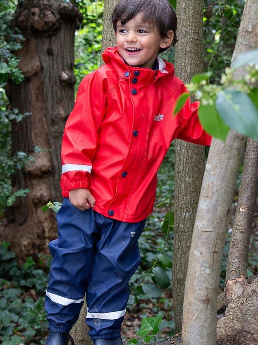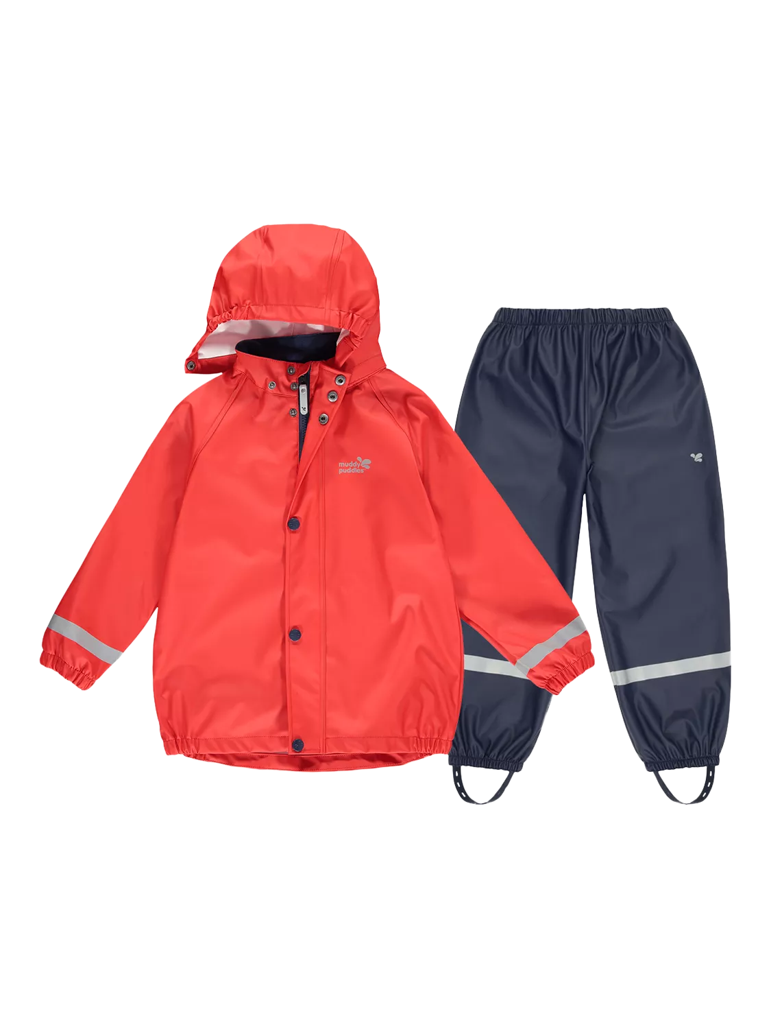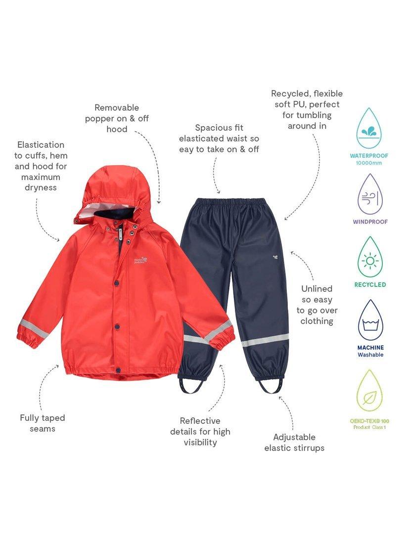 Muddy PuddlesKids' Waterproof Rainy Day Jacket & Trousers Set, Red/Navy