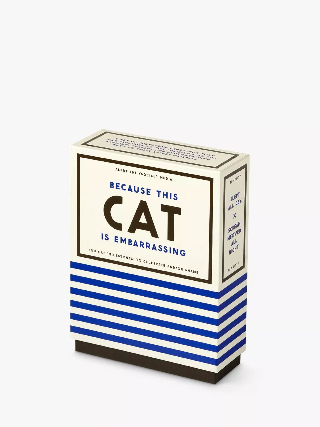 People love to celebrate their cats, and for good reason. . .most of the time. I mean, sure, they do literally poop in a box and make you clean it up. And then there's that whole constantly vomiting thing. Oh, and all of those animals that they kill and leave for you to step on in the middle of the night. What was I saying? Oh, right. This oversized deck of cat ‘milestone cards' by Brass Monkey includes 50 praise cards and 50 shame cards, perfect for photographing next to the world's largest hairball that your cat just gagged up.