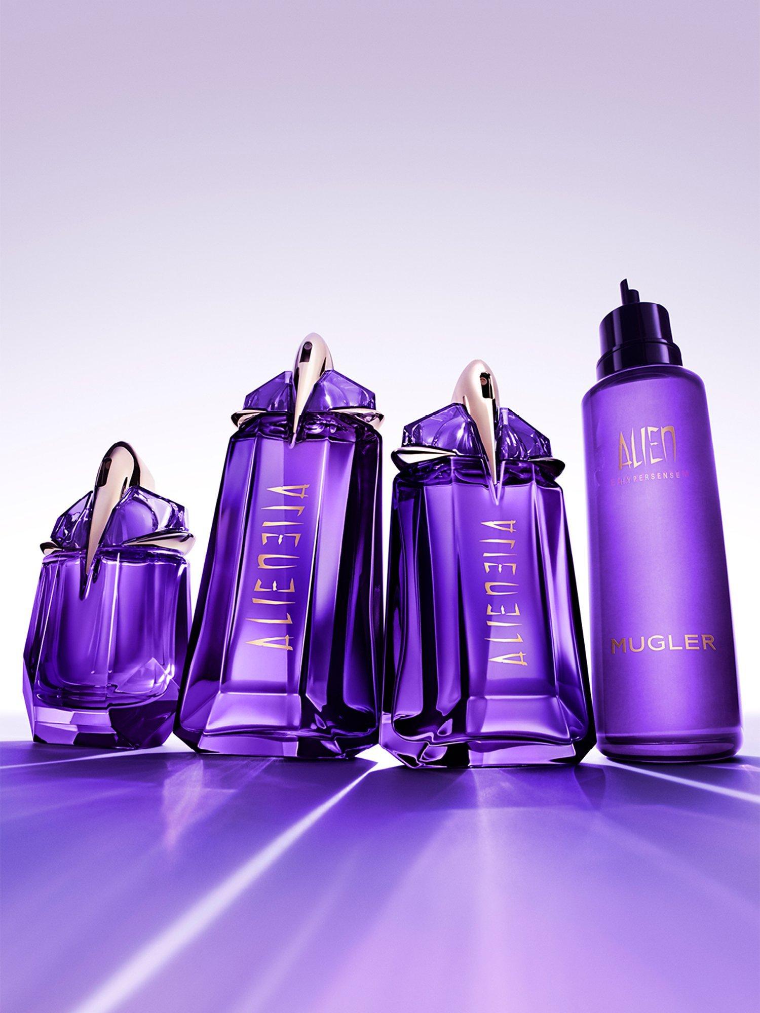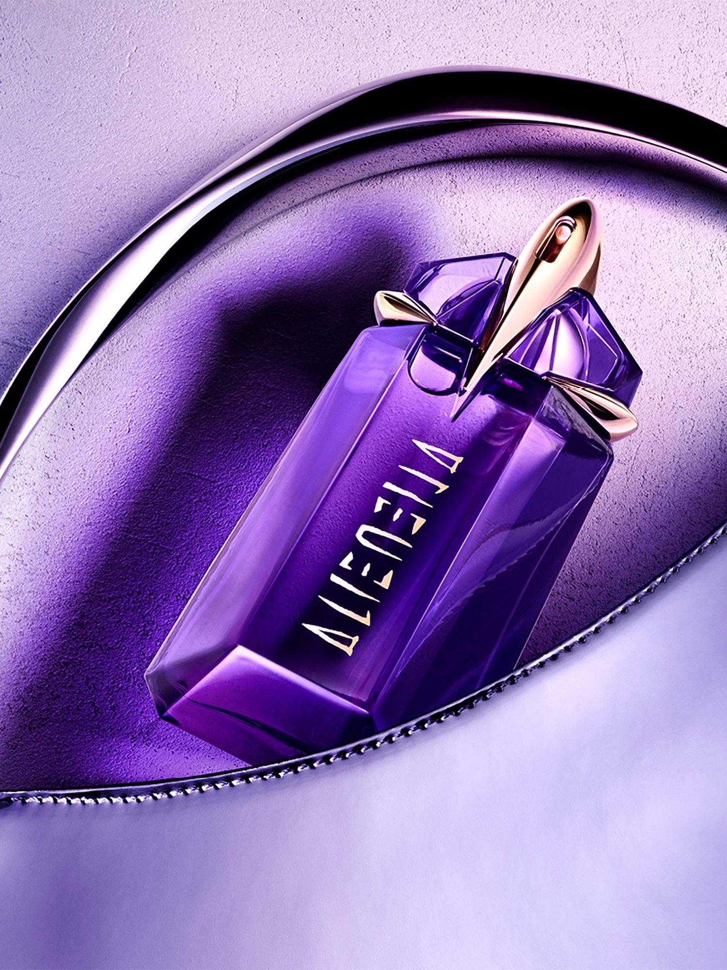- Enveloping revelation: Alien is enveloping, enriched with White Amber. Mugler has built a modern and timeless white amber. Exuding sensuality and mystery, the Alien Eau de Parfum bottle is inspired by an amethyst, a symbol of meditation and inner peace, to reveal the radiance and the creative force of every woman.