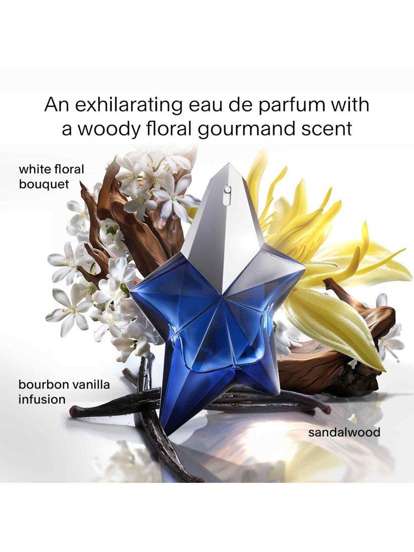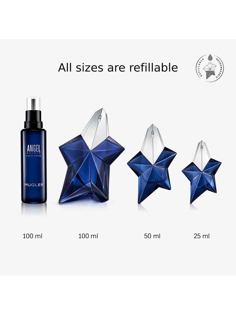 A totally original, woody floral gourmand scent that reinvents what makes Angel Eau de Parfum so unique. Here, Angel’s signature indulgence turns into a floral Milky Way, captured in Mugler’s iconic star-shaped bottle, morphed into a captivating deep blue. A shimmering spark of metallic spices. An out-of-this-world, floral bouquet invented by Mugler. A nebula of luscious vanilla infusion, empowered by woody Amber Xtreme. More than a fragrance, Angel Elixir is the catalyst to reinvent your reality. Because the real world is not enough...