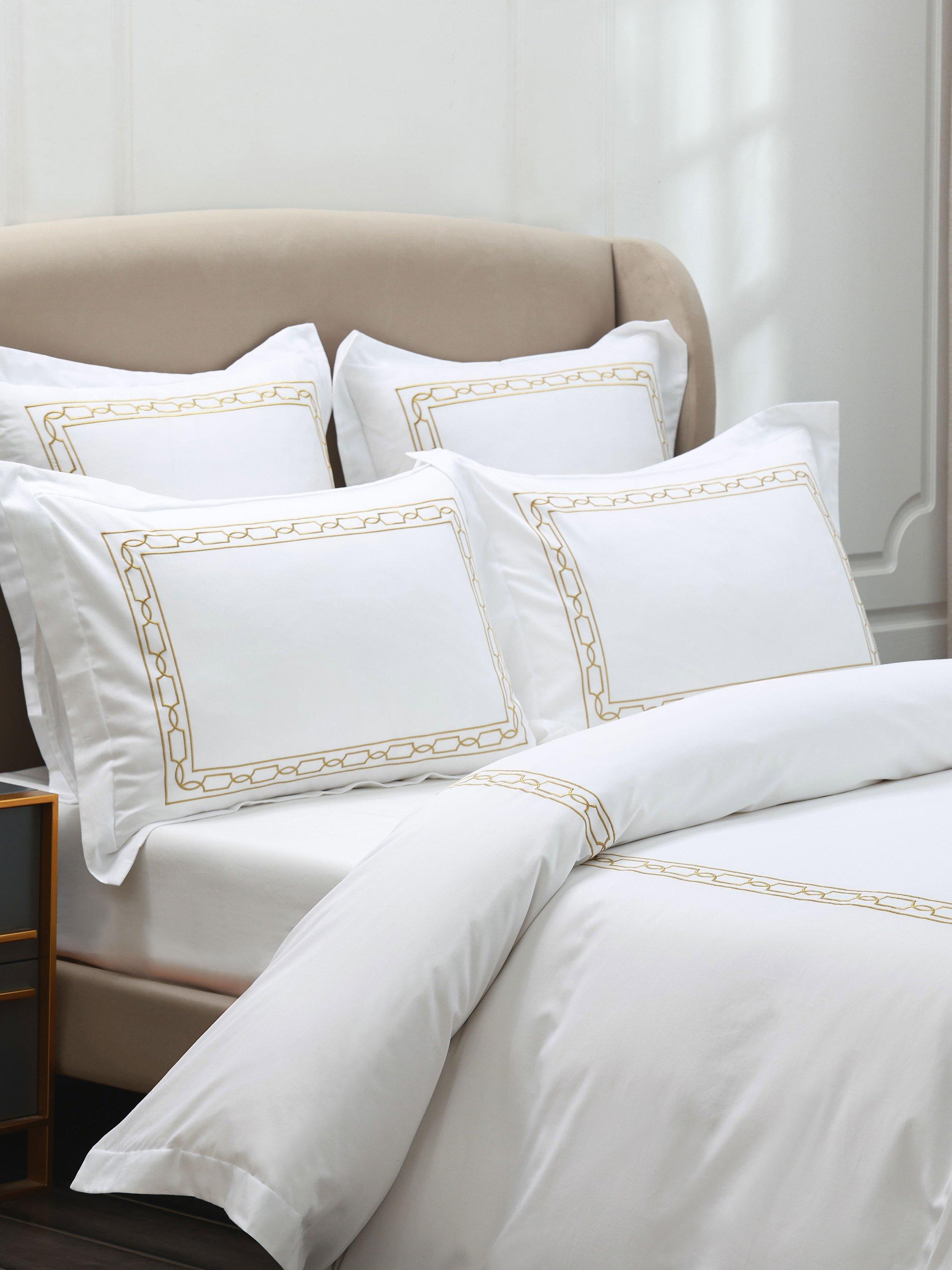 To create a hotel style bed, Hamilton has an embroidered border on 300 thread count cotton sateen. A stylish and timeless look for your bedroom.
