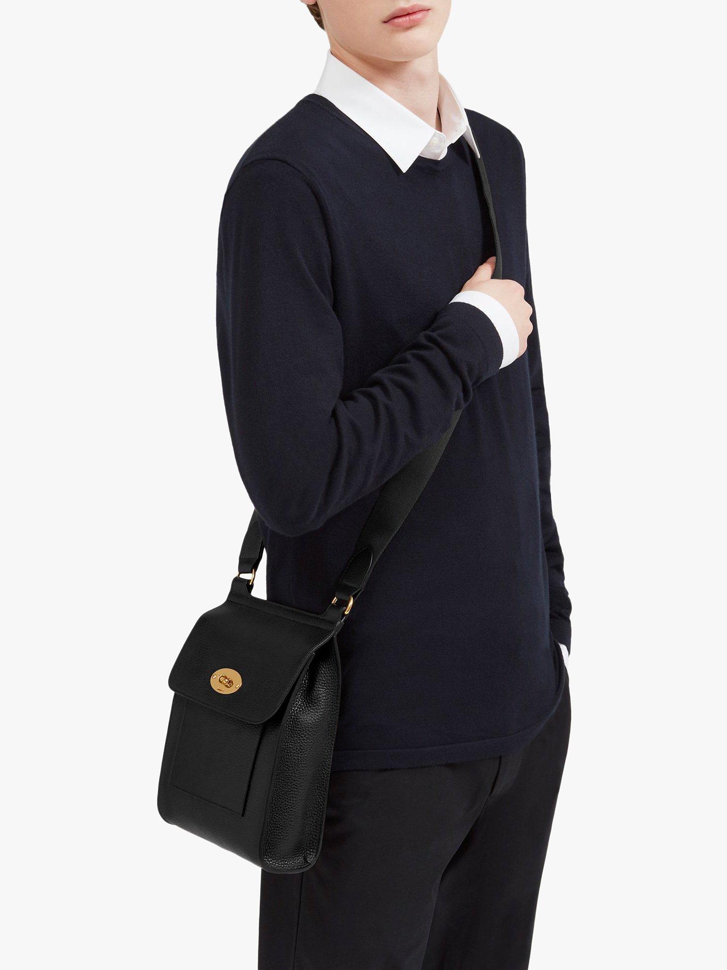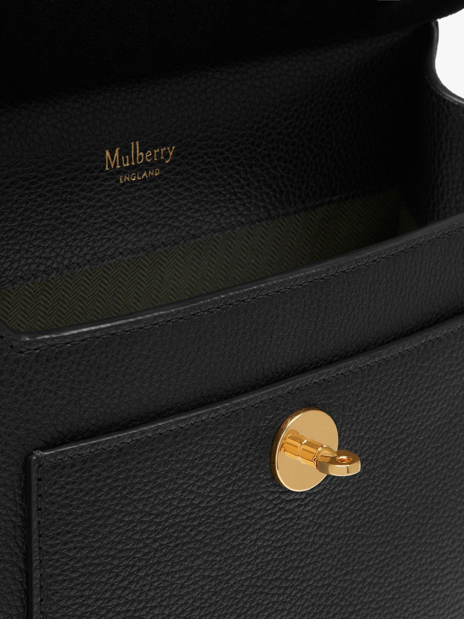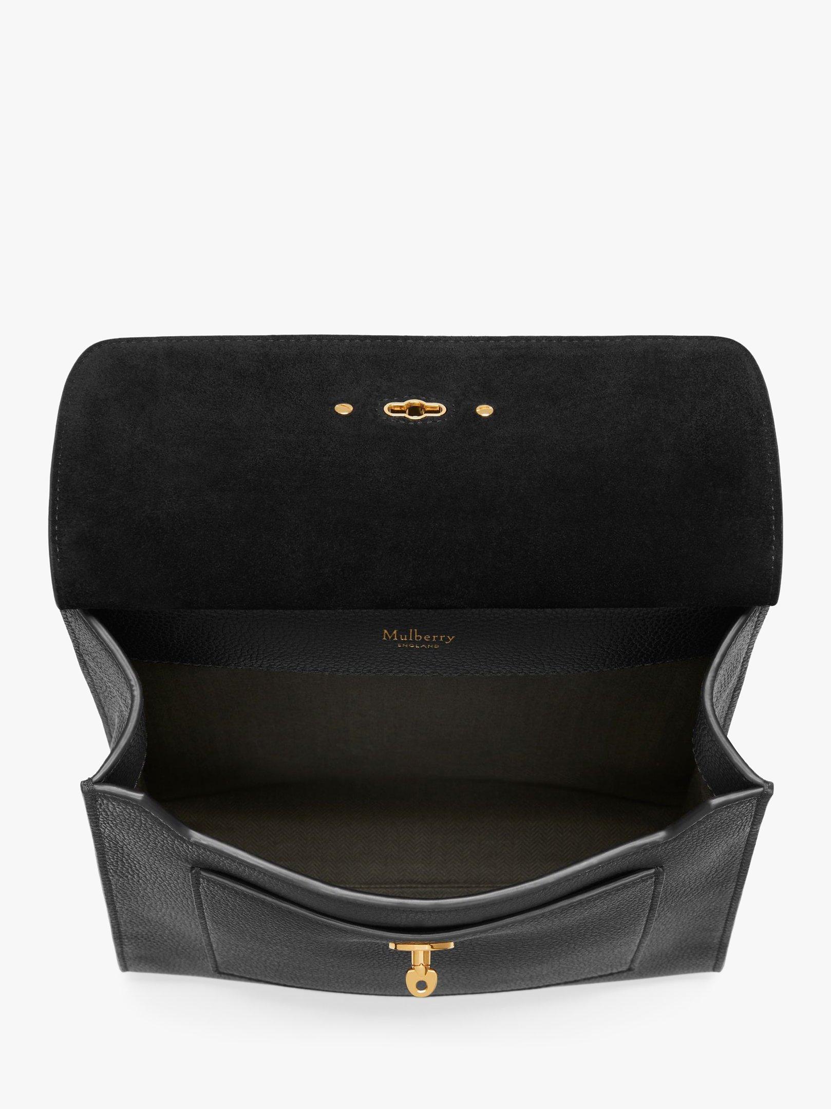 The interior is unlined and spacious and a slip pocket under the flap offers additional storage. An instant classic, the Antony is completed with brass hardware and Mulberry branding.