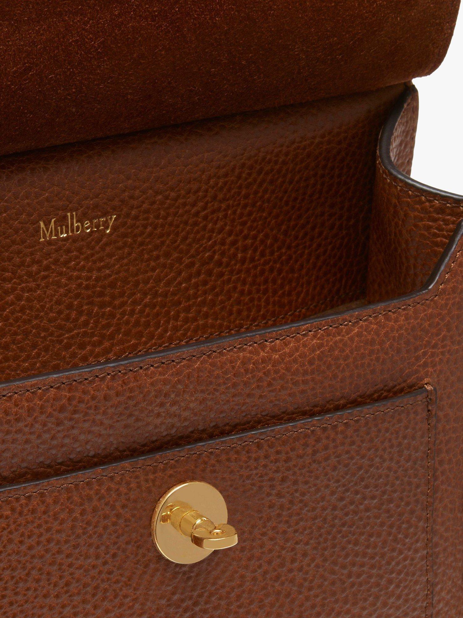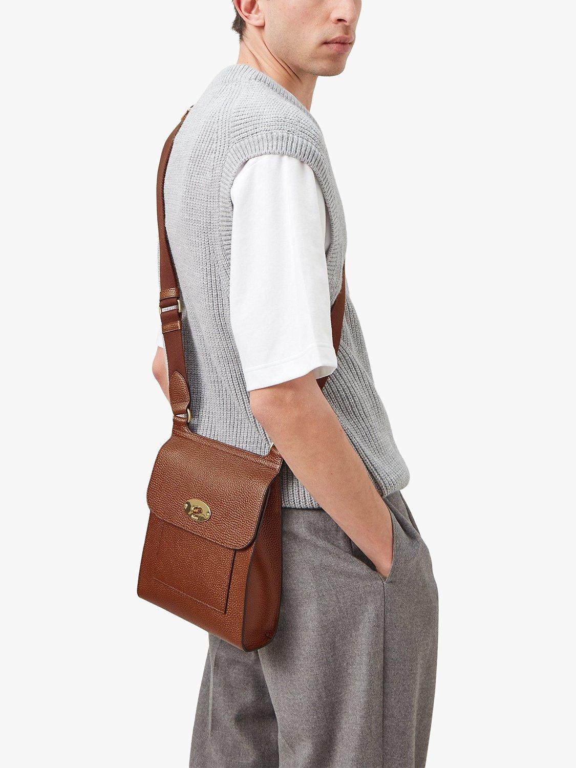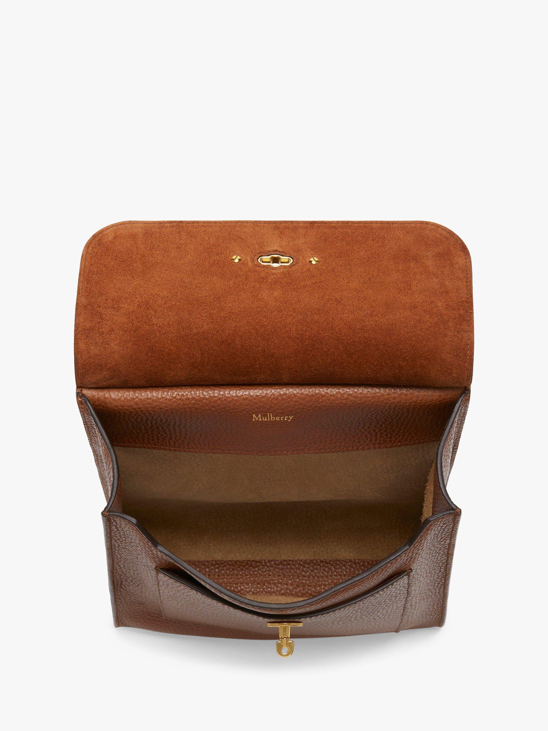 The interior is unlined and spacious and a slip pocket under the flap offers additional storage. An instant classic, the Antony is completed with brass hardware and Mulberry branding.
