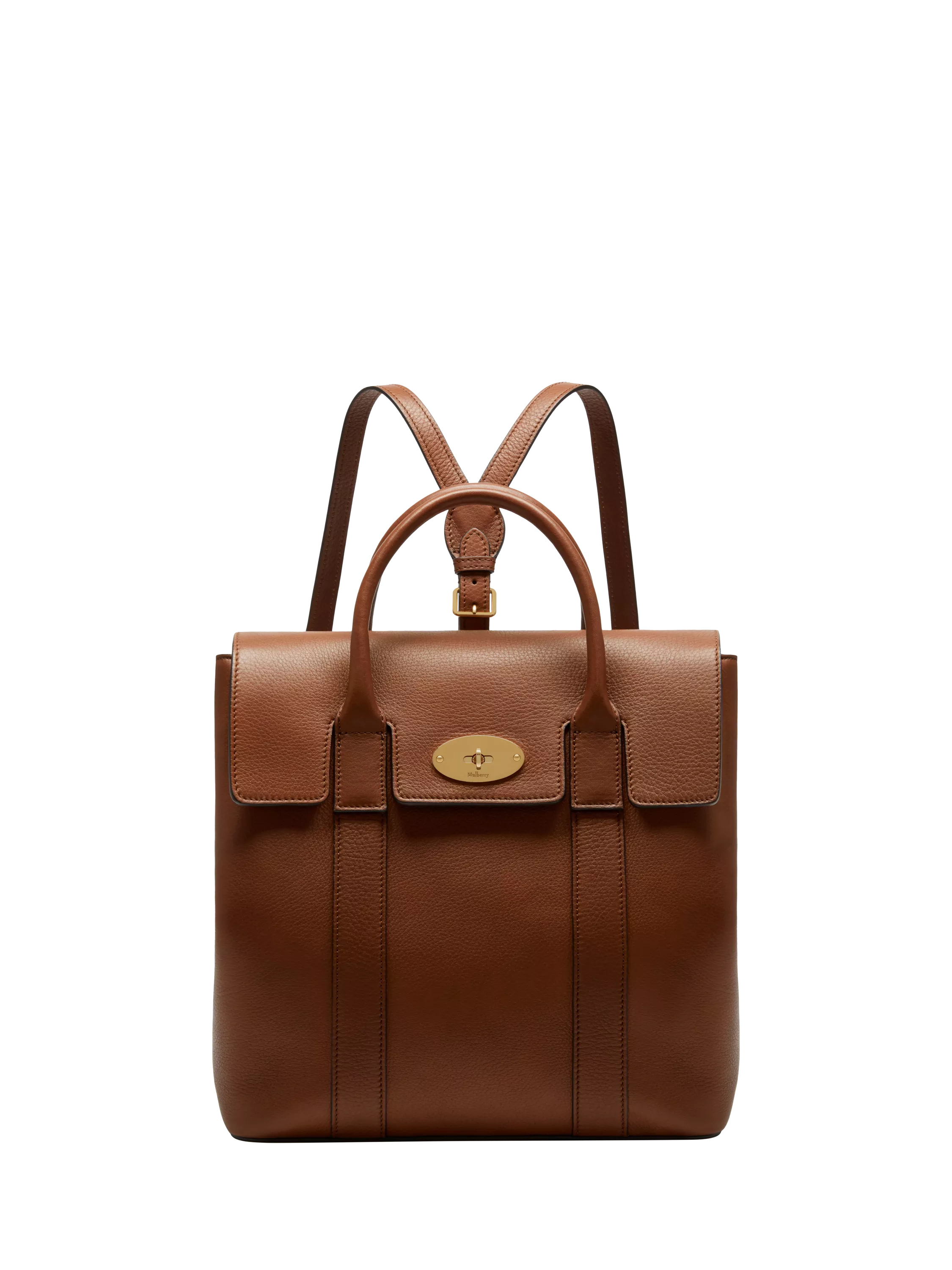 The Bayswater is a Mulberry icon. Launched in 2003, its simple structure, timeless design and signature Postman's lock made it an instant bestseller. Converted into a feminine backpack style, the Bayswater Backpack features adjustable side gussets with press studs to extend capacity or streamline the shape. This versatile style can be worn on the back, over the shoulder or carried hand-held to suit alternative looks and moods. Crafted from Mulberry's signature grain leather in a range of heritage hues, it remains sturdy and timeless in its design.