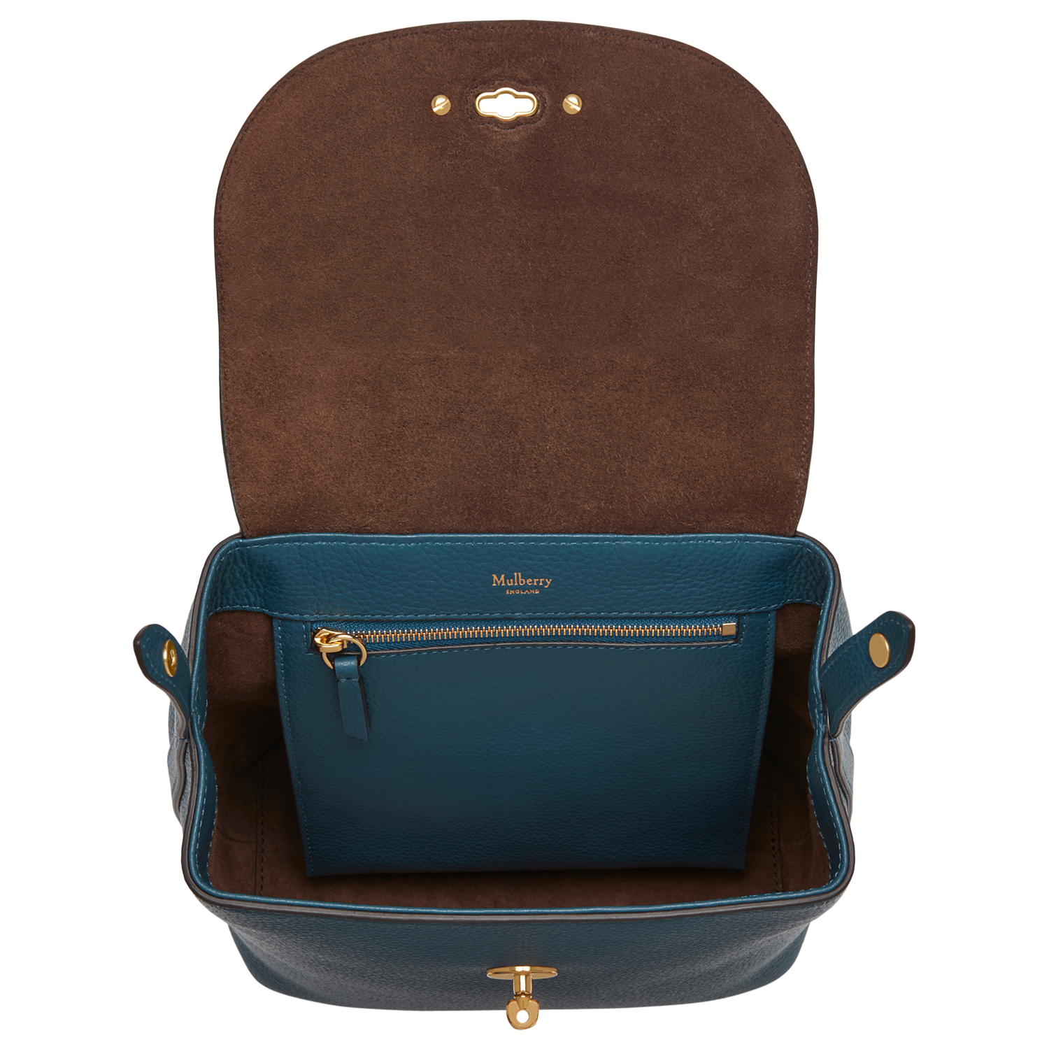 Fastening with a signature metal Postman's Lock, the front flap opens to reveal a beautiful interior with a zipped pocket. The size of the main compartment can be adjusted using the popper tabs on the sides.